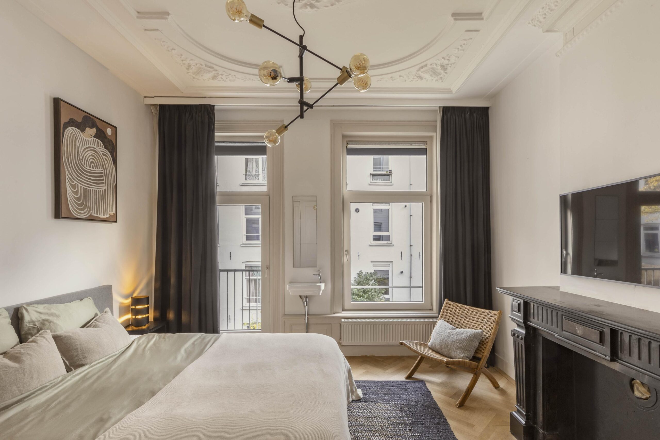 Elegant apartment of approximately 90 m², featuring two bedrooms, high ceilings, original decorative details and a west-facing French balcony. Spread across a single floor with a private entrance, the home benefits from an abundance of natural light. Situated in a lively and vibrant part of De Pijp, with a wide variety of shops, restaurants and cultural venues all within walking distance.