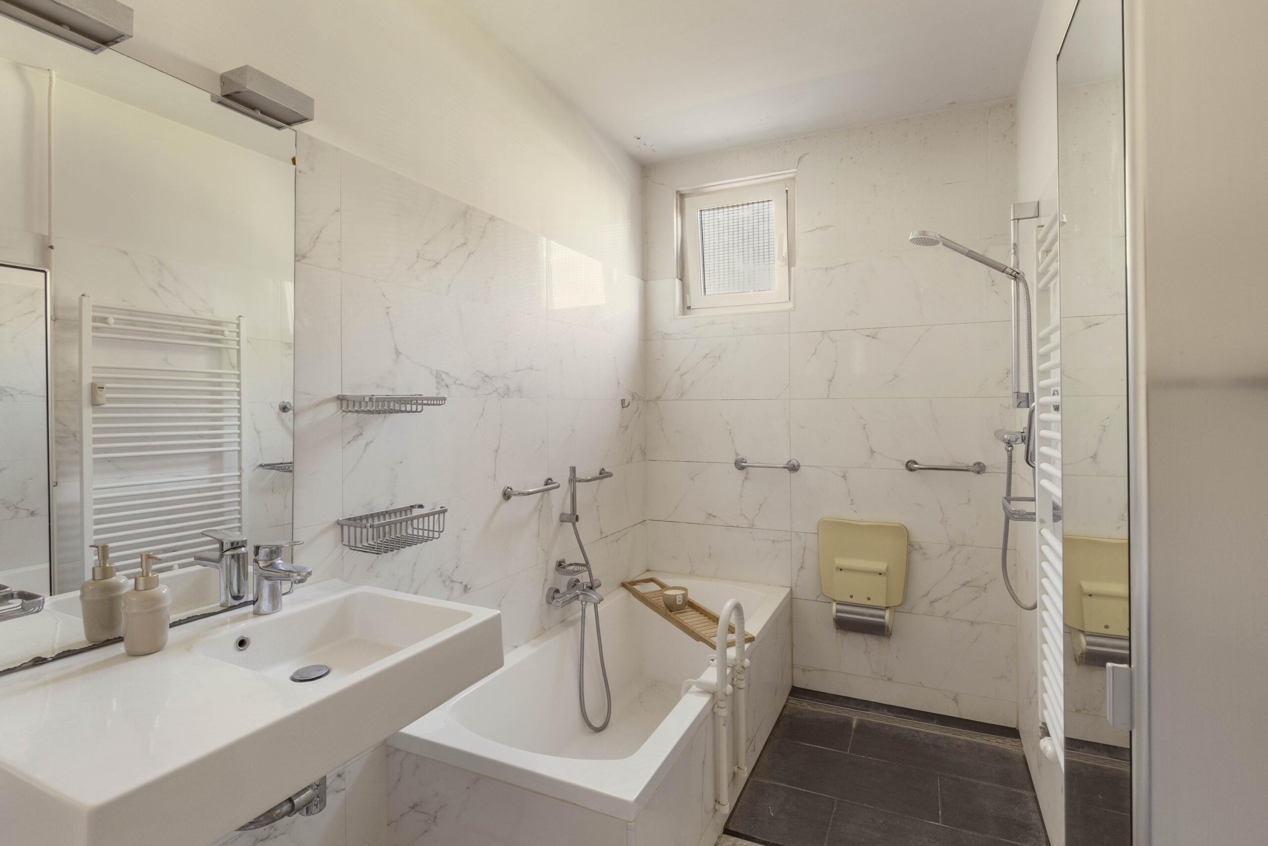 The property is accessible via the communal staircase or by elevator, which makes the apartment suitable for various target groups. From the central hall there is access to the different rooms.