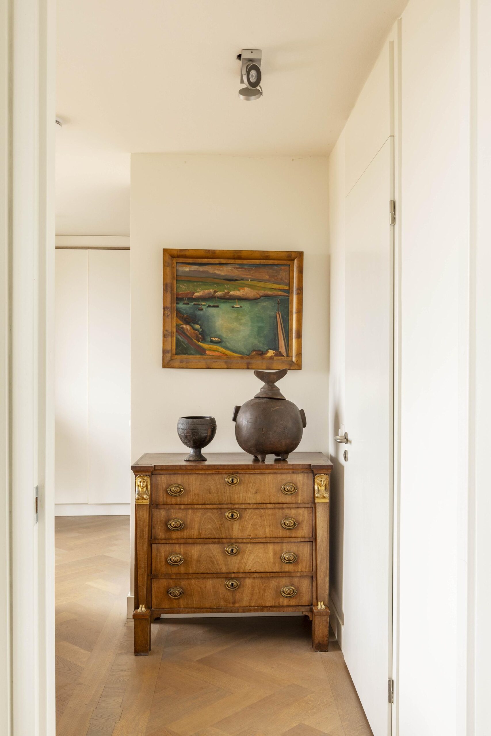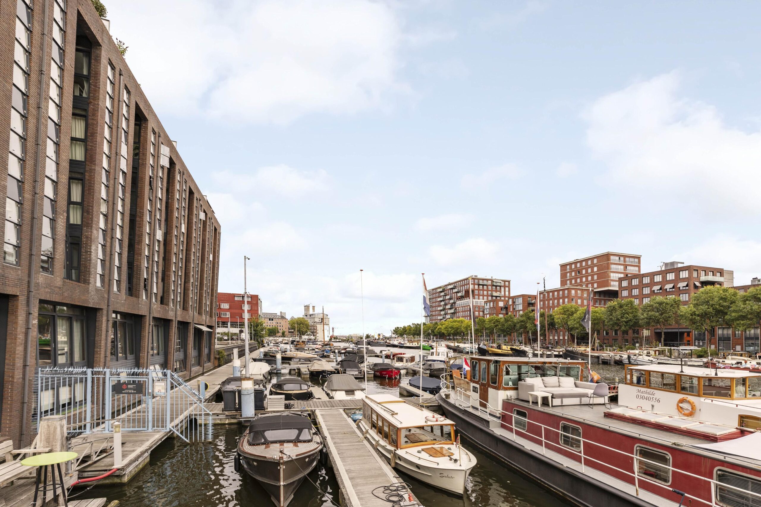 The property is completely single-level, accessible by elevator, and equipped with a storage room. In addition, there is the possibility to purchase two parking spaces in the basement, one of which has a charging station. A comfortable apartment located on Bickerseiland, part of the historic Western Islands, surrounded by water and greenery.