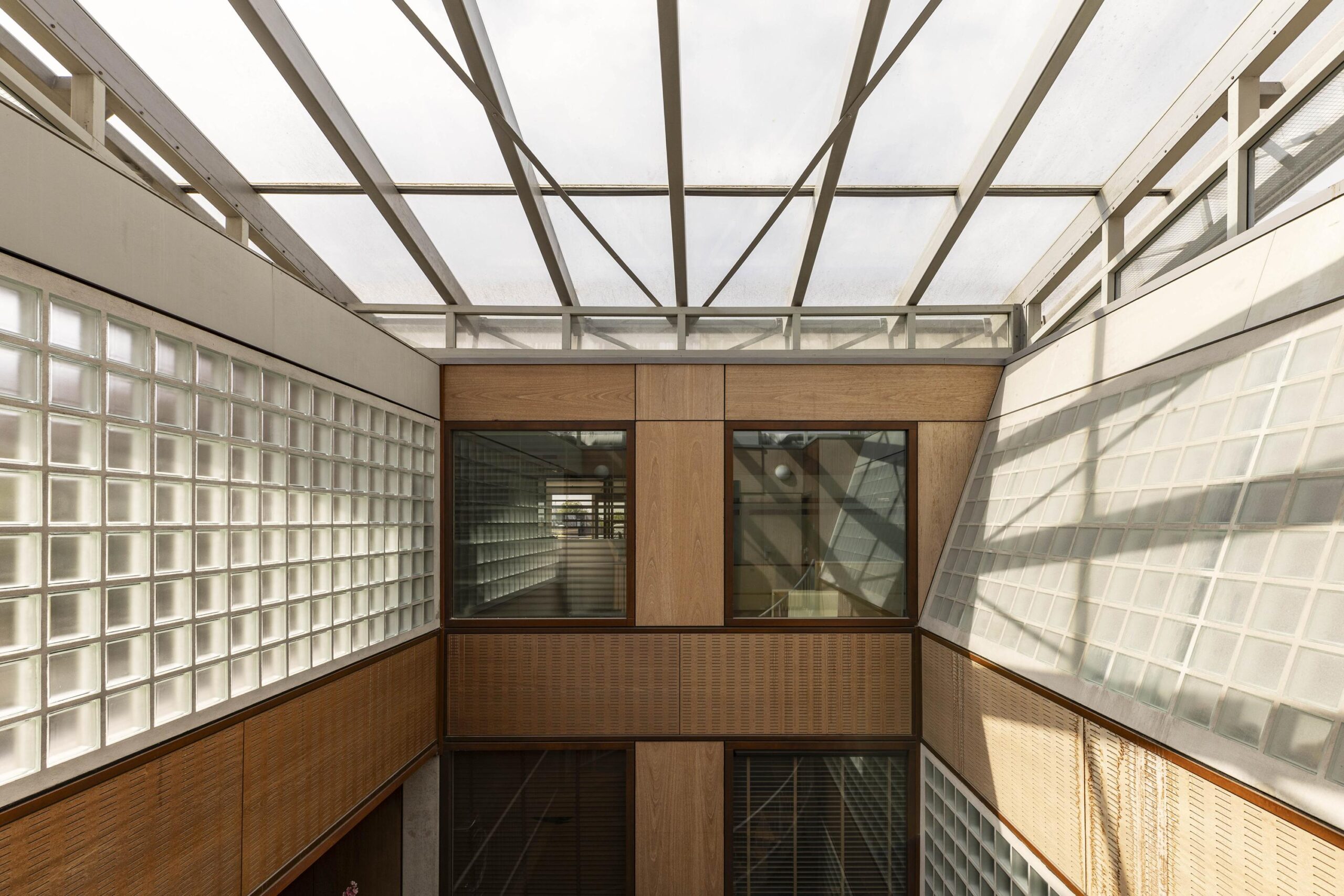 The entrance to the property is on the fifth and top floor, accessible via a green patio with morning sun. A spacious hall forms the central point and provides access to the various rooms.