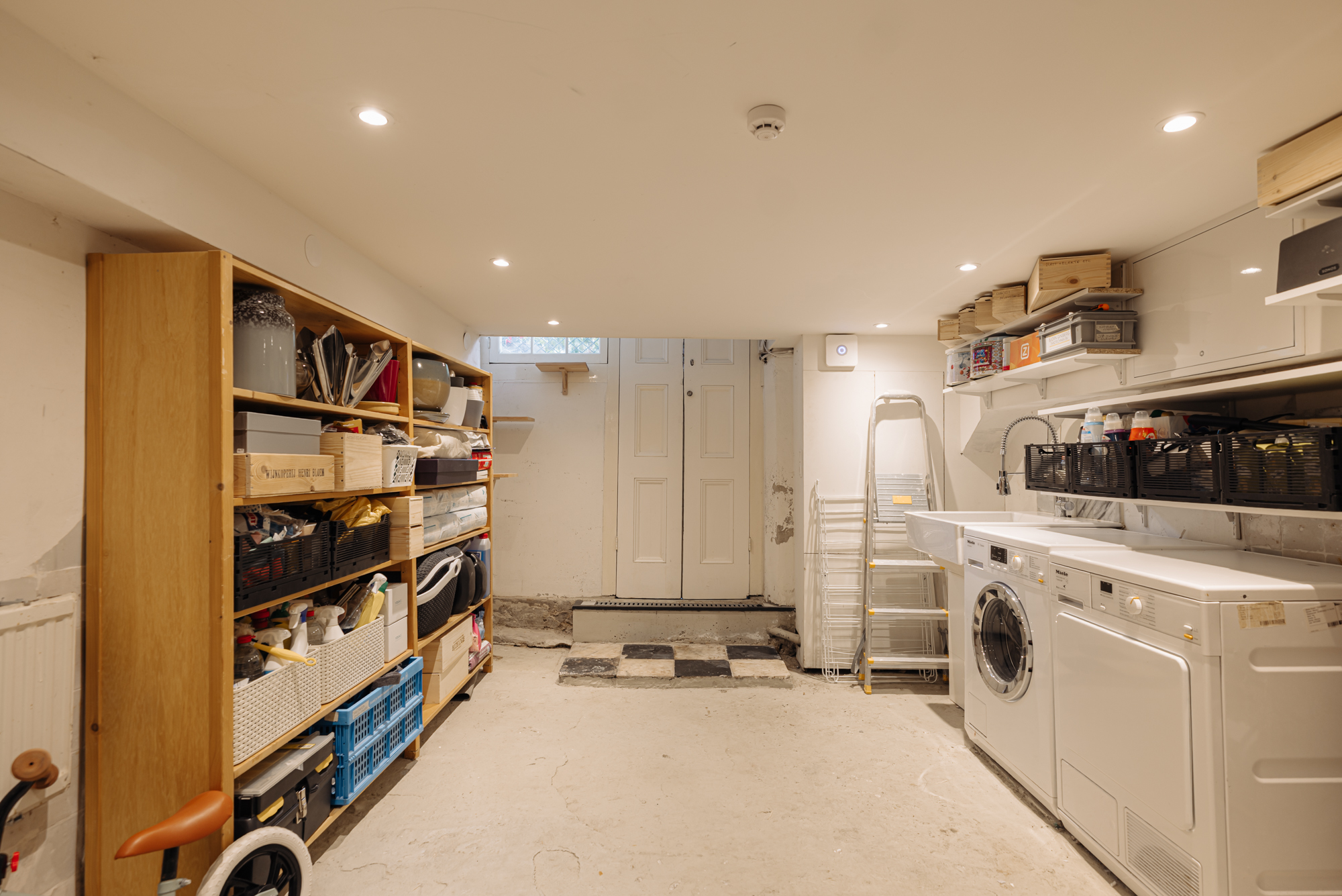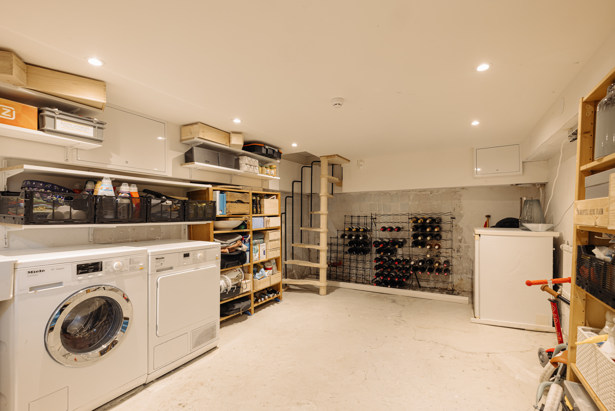 In the basement there is a space with connections for a washing machine and dryer. This practical area falls outside the official living area but adds considerable additional functionality and is accessible both internally and directly from the street.