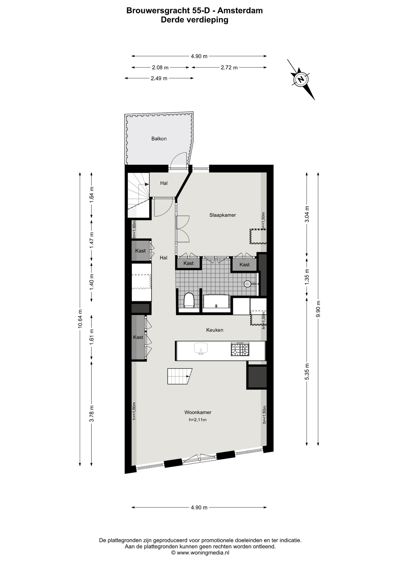 The apartment is located on the third floor of a characteristic building on the Brouwersgracht. The entrance opens into a stairwell that provides access both to the adjoining private roof terrace and to the apartment itself. Upon entering, the hallway offers plenty of practical storage space and includes a built-in laundry area.