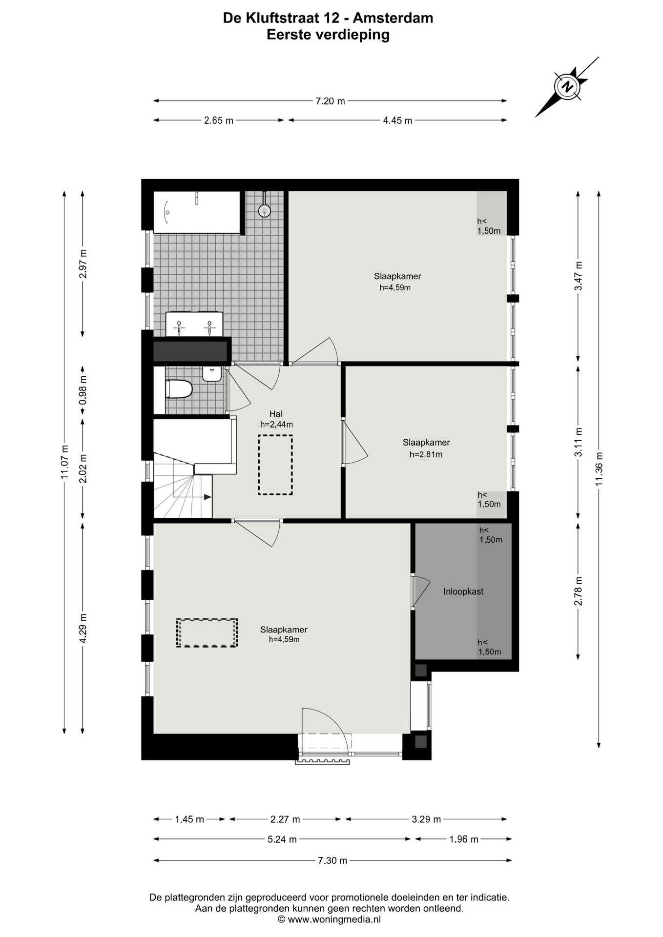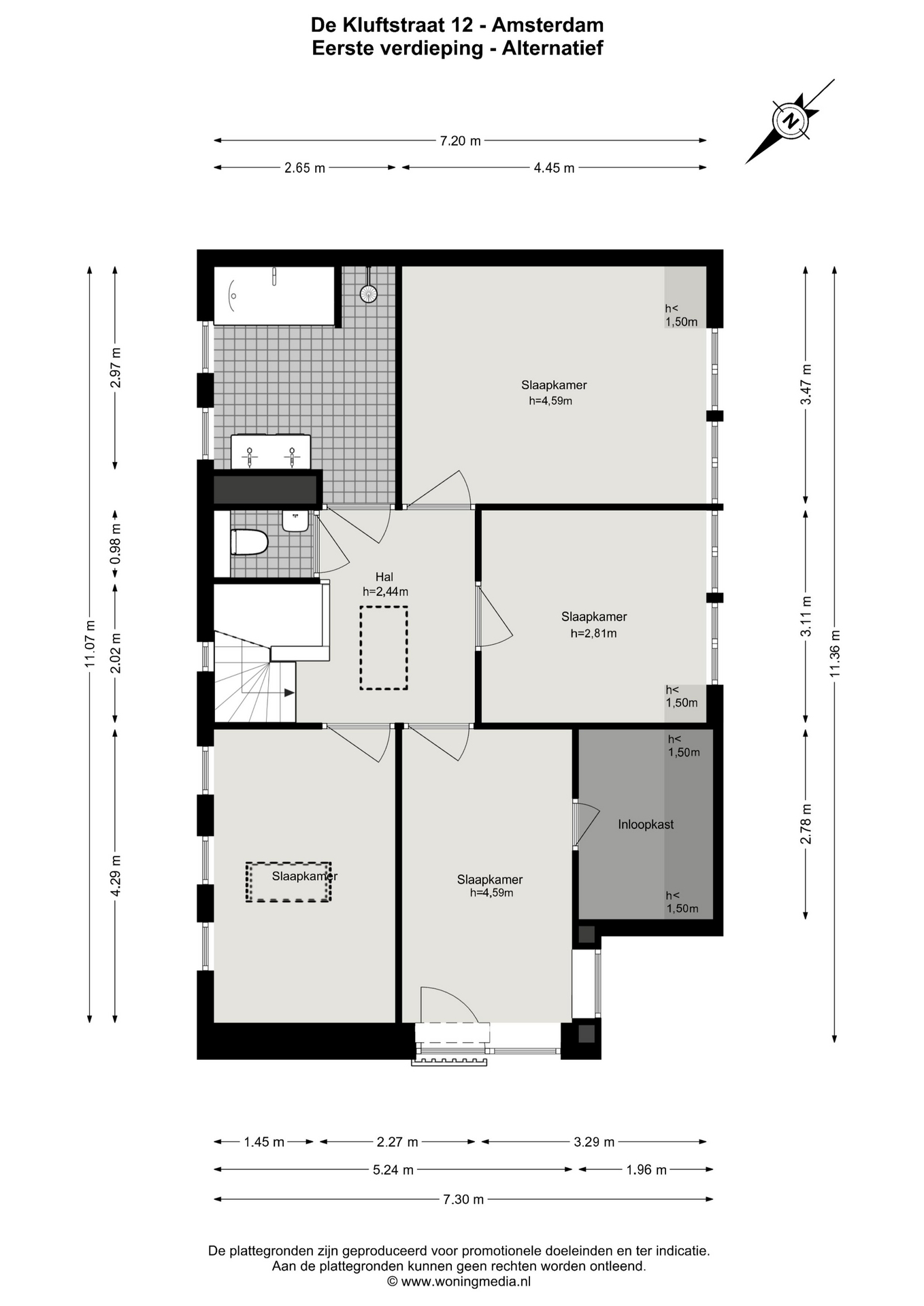 • 3 bedrooms (with the possibility to create a fourth, see adjusted floor plan); 1 bathroom; 2 separate toilets;