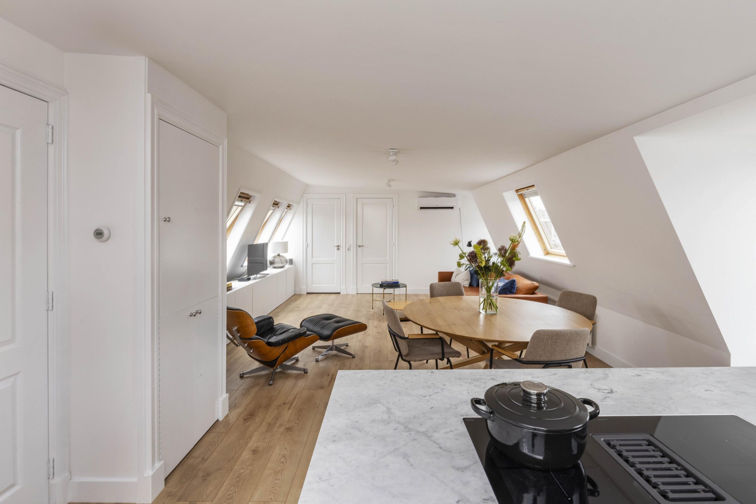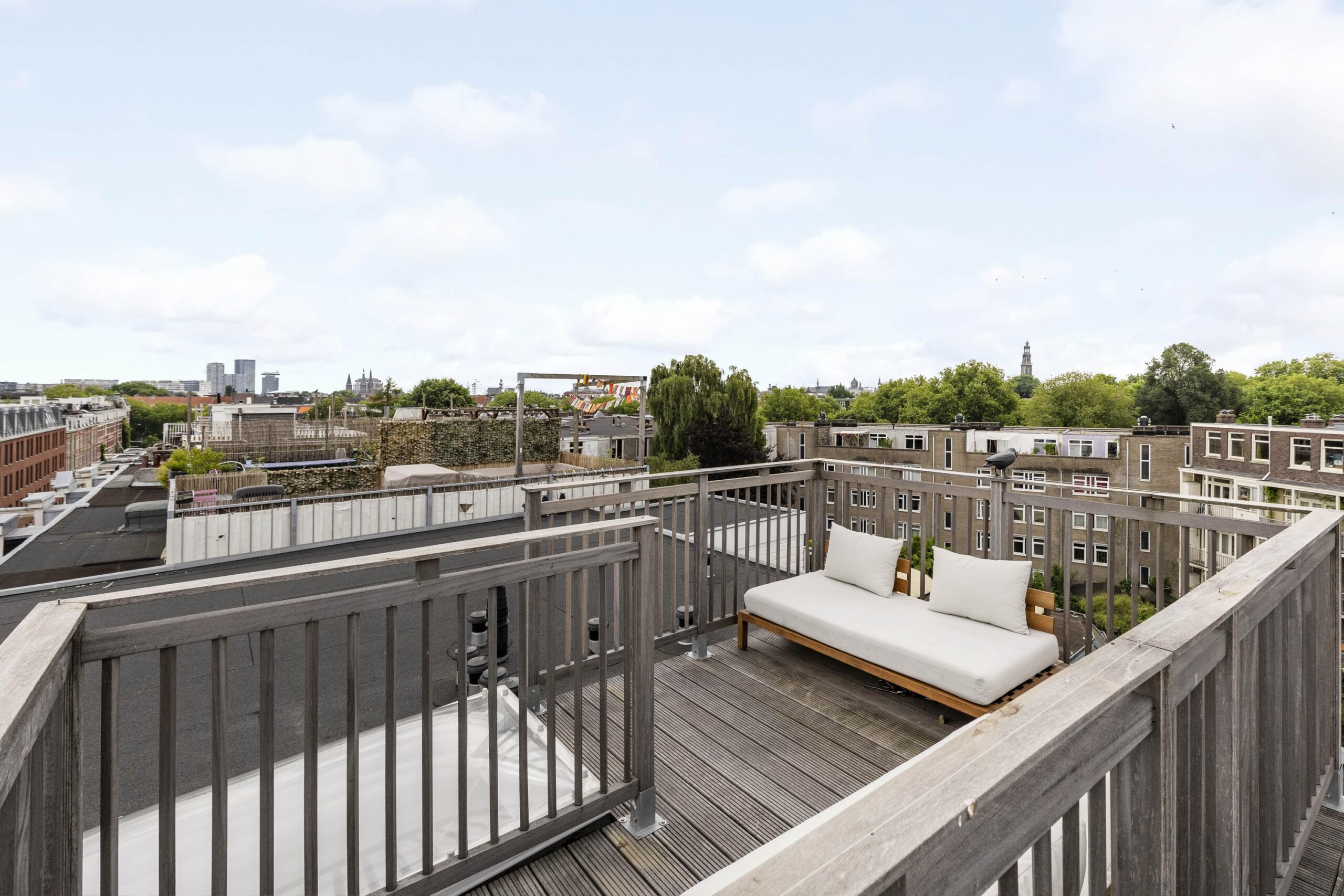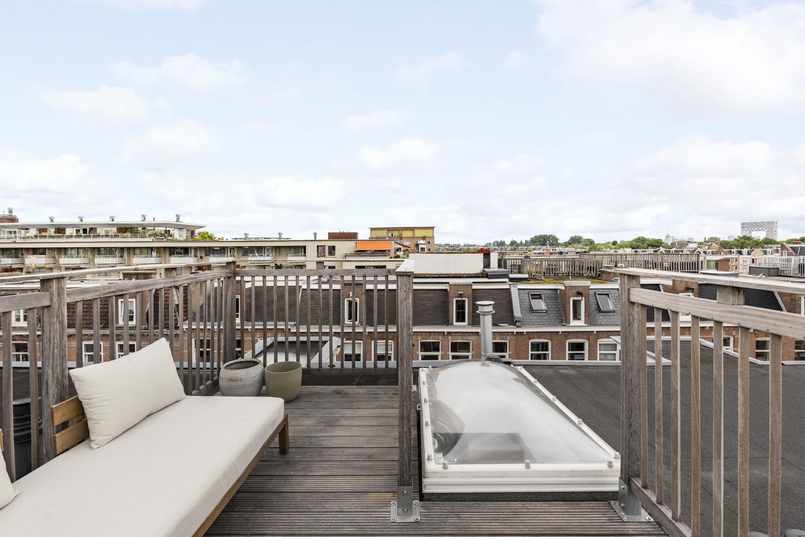 This bright and well-designed apartment of approximately 65 m² (gross area 82 m²) is located on the top floor of a characteristic building in the popular Frederik Hendrikbuurt neighborhood. It has two bedrooms, a spacious living room with open kitchen and air conditioning, a modern bathroom, and a sunny roof terrace of approximately 13 m².