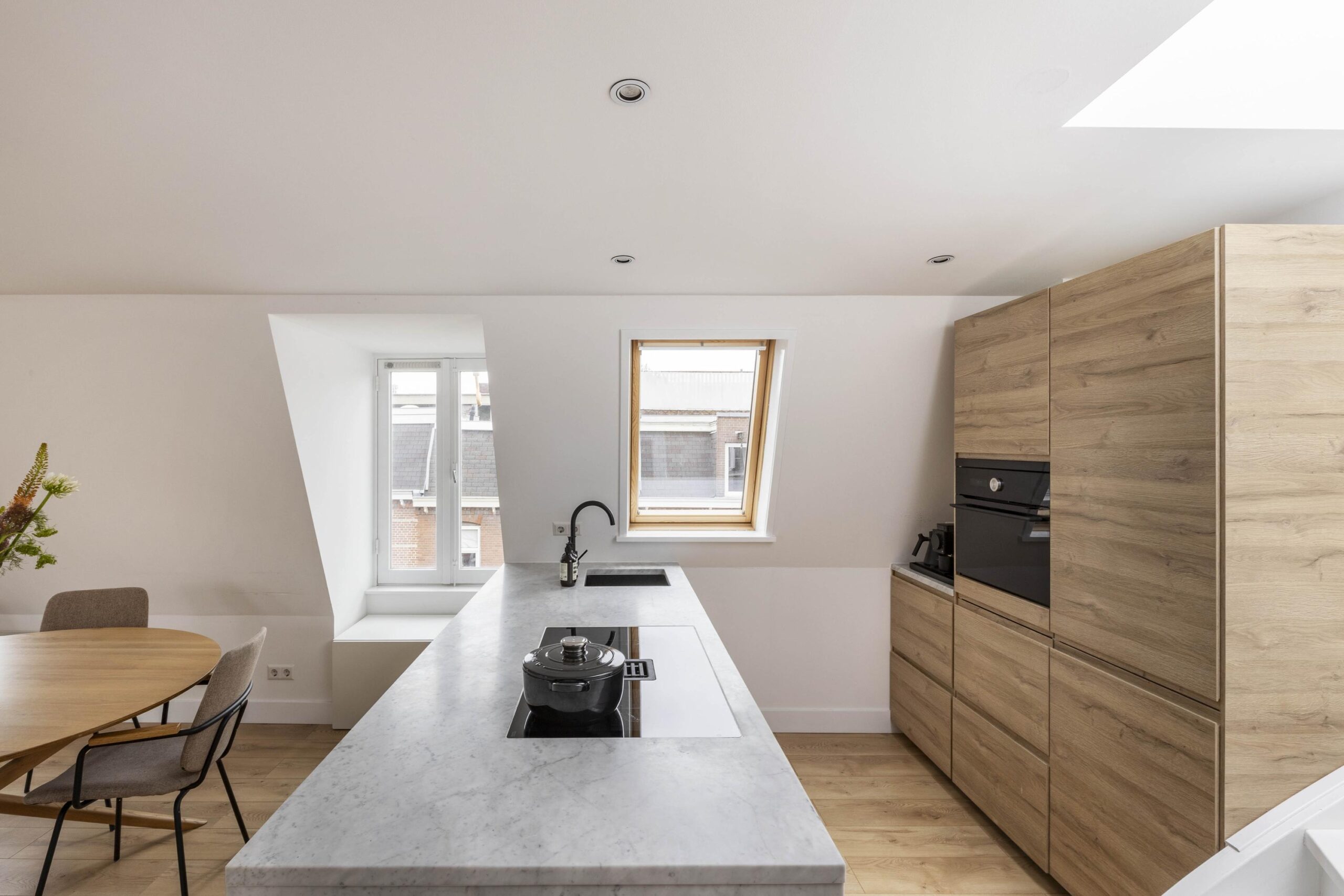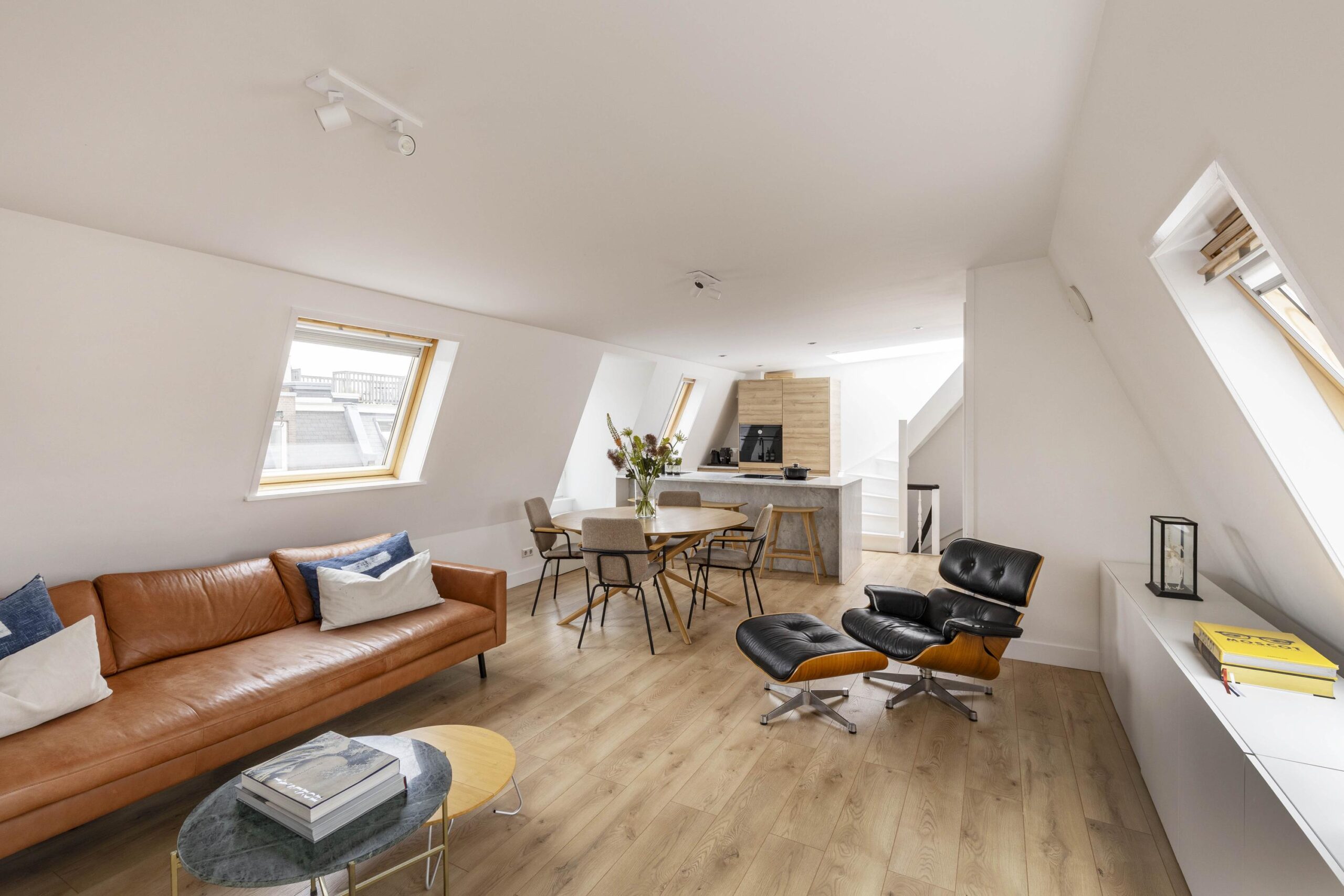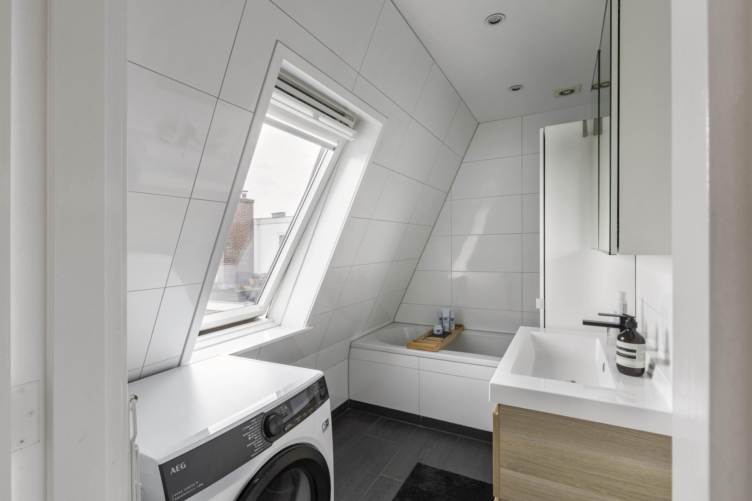 This bright and well-designed apartment of approximately 65 m² (gross area 82 m²) is located on the top floor of a characteristic building in the popular Frederik Hendrikbuurt neighborhood. It has two bedrooms, a spacious living room with open kitchen and air conditioning, a modern bathroom, and a sunny roof terrace of approximately 13 m².
