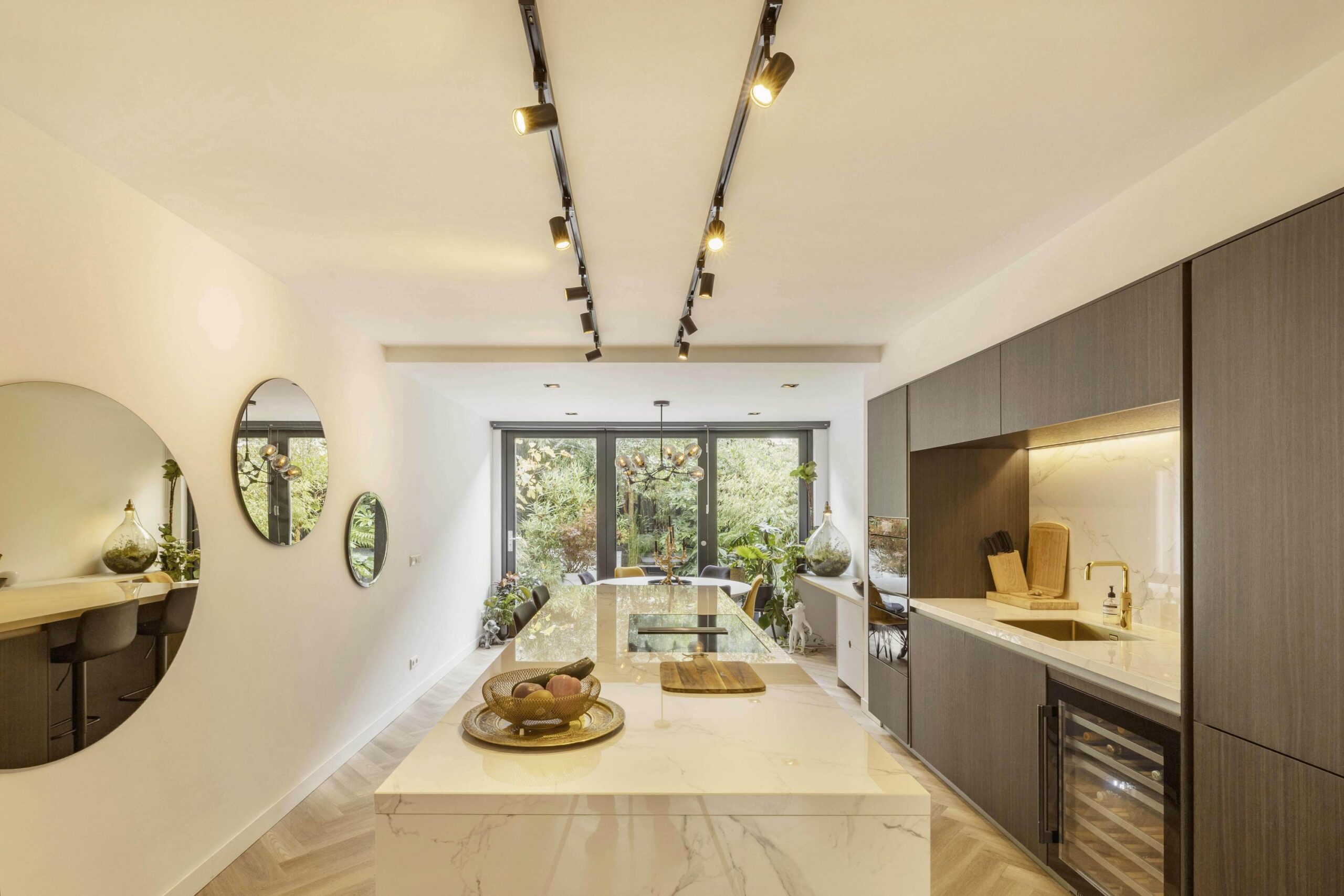 Situated on freehold land, a tastefully renovated ground-floor residence of approximately 103 m² with two, or if desired three, bedrooms, a generous garden and high-quality finishes. The property has been recently extended and is entirely laid out on one level, featuring modern installations and a careful balance between comfort and design.