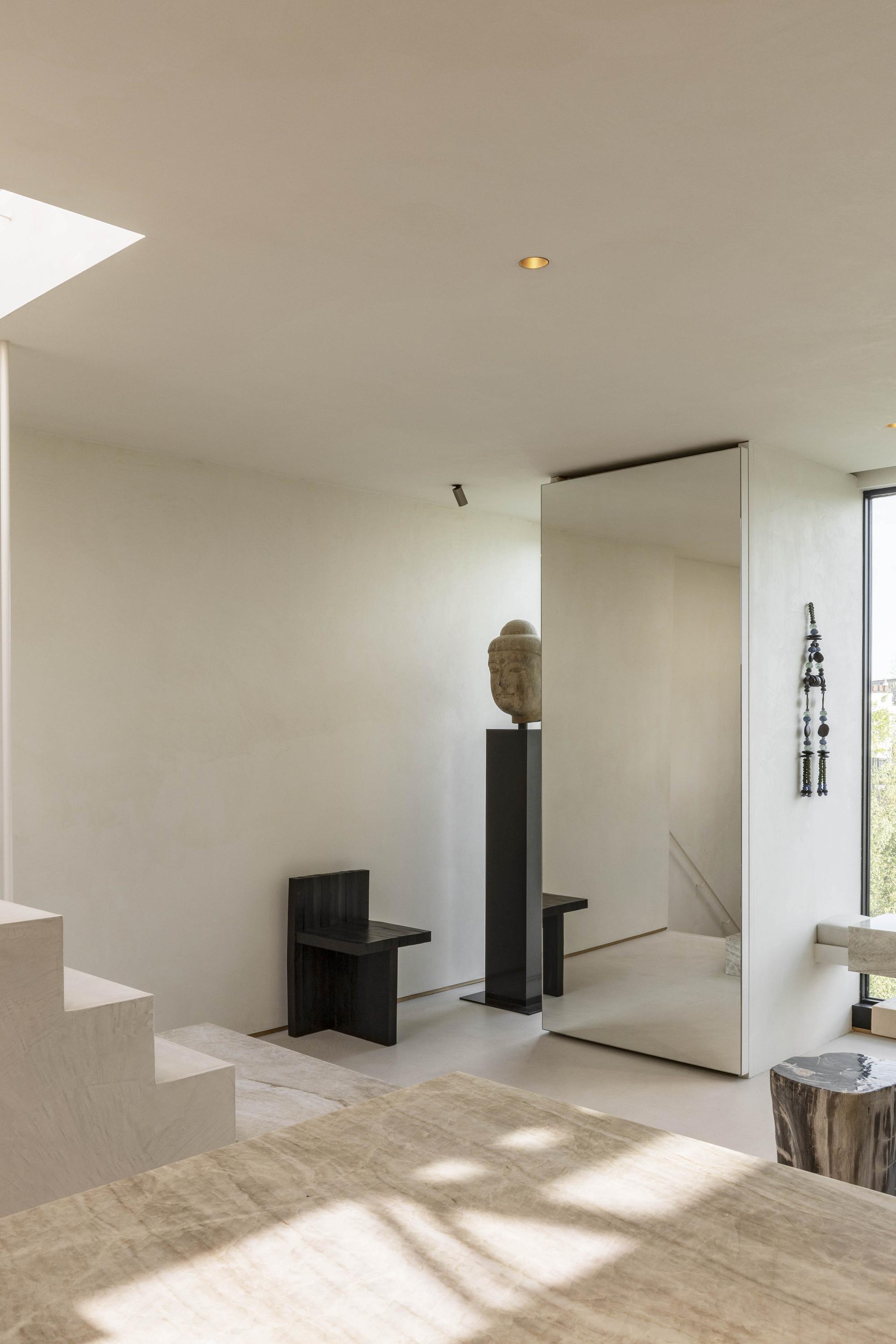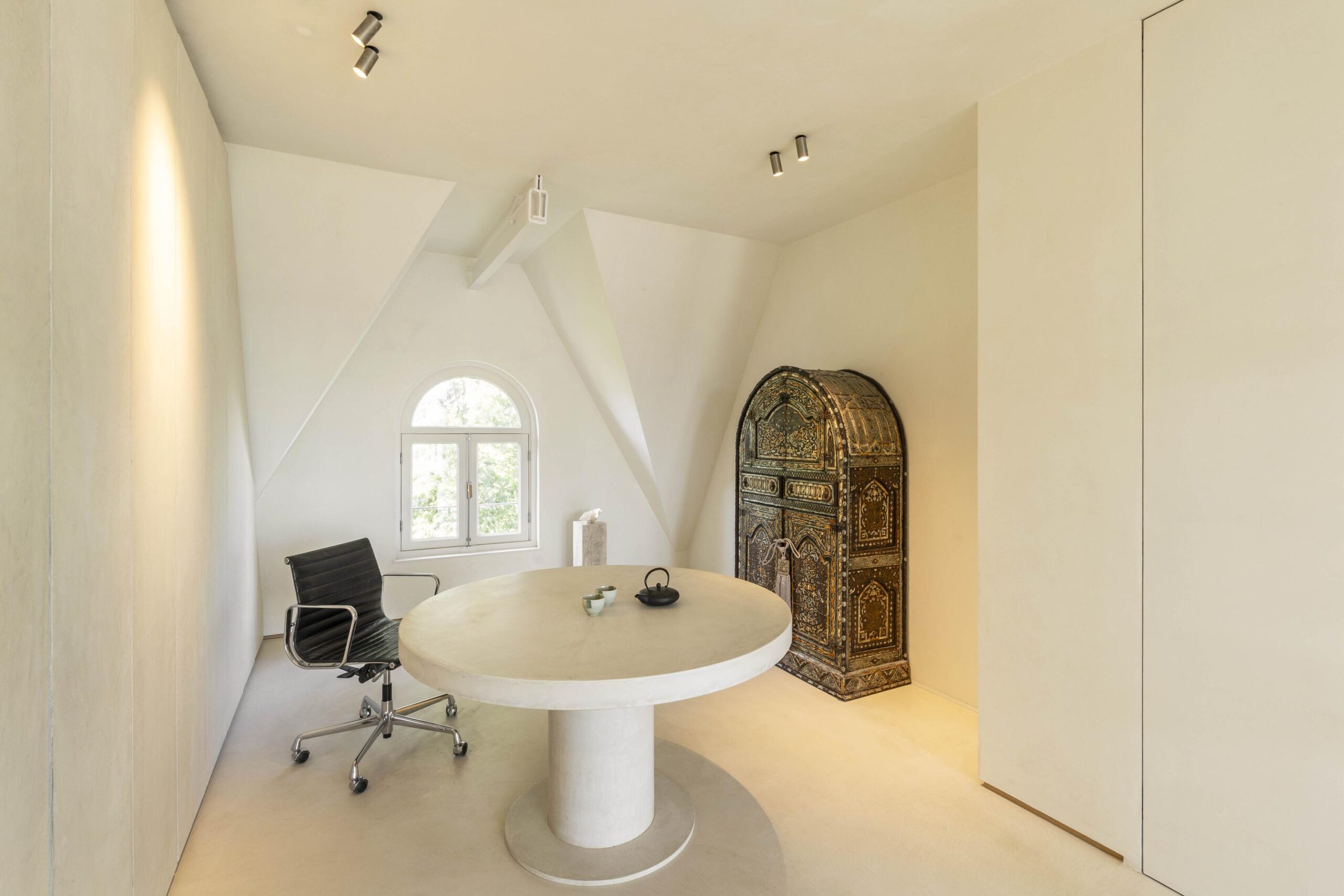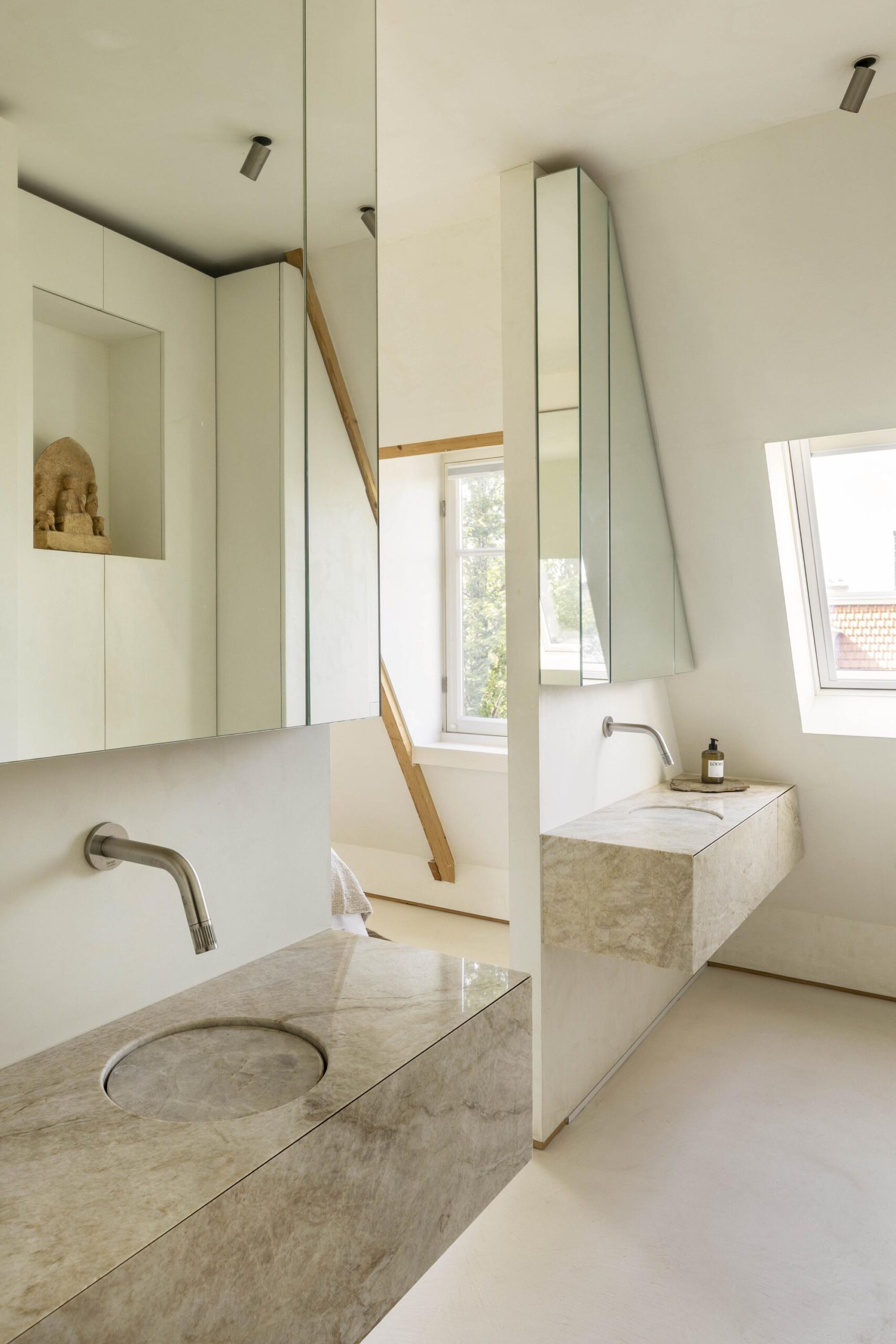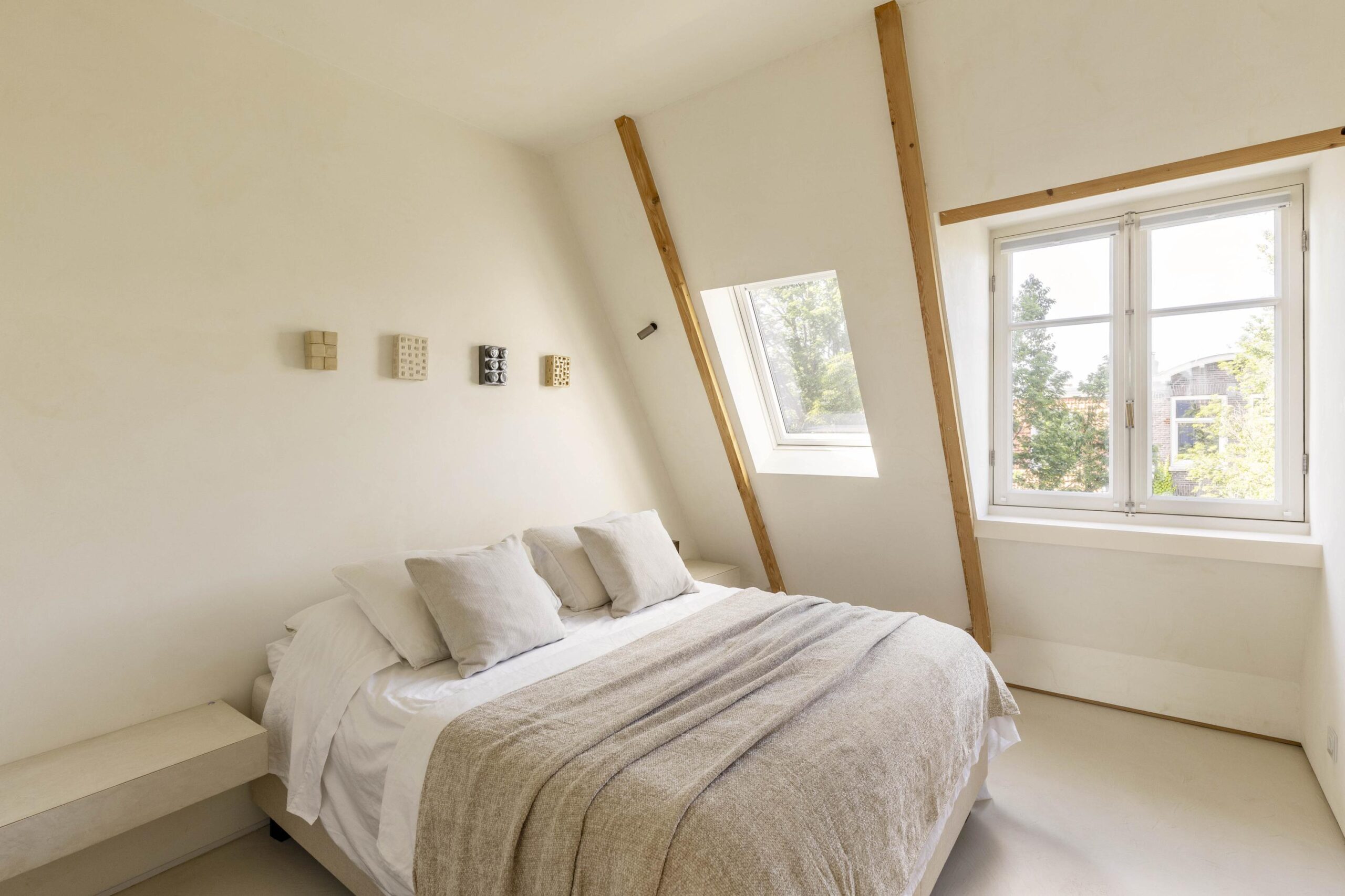 A fixed staircase leads to the exclusive roof terrace: a generous and sheltered outdoor area with space for lounge and dining, and a unique view over the rooftops of Amsterdam.