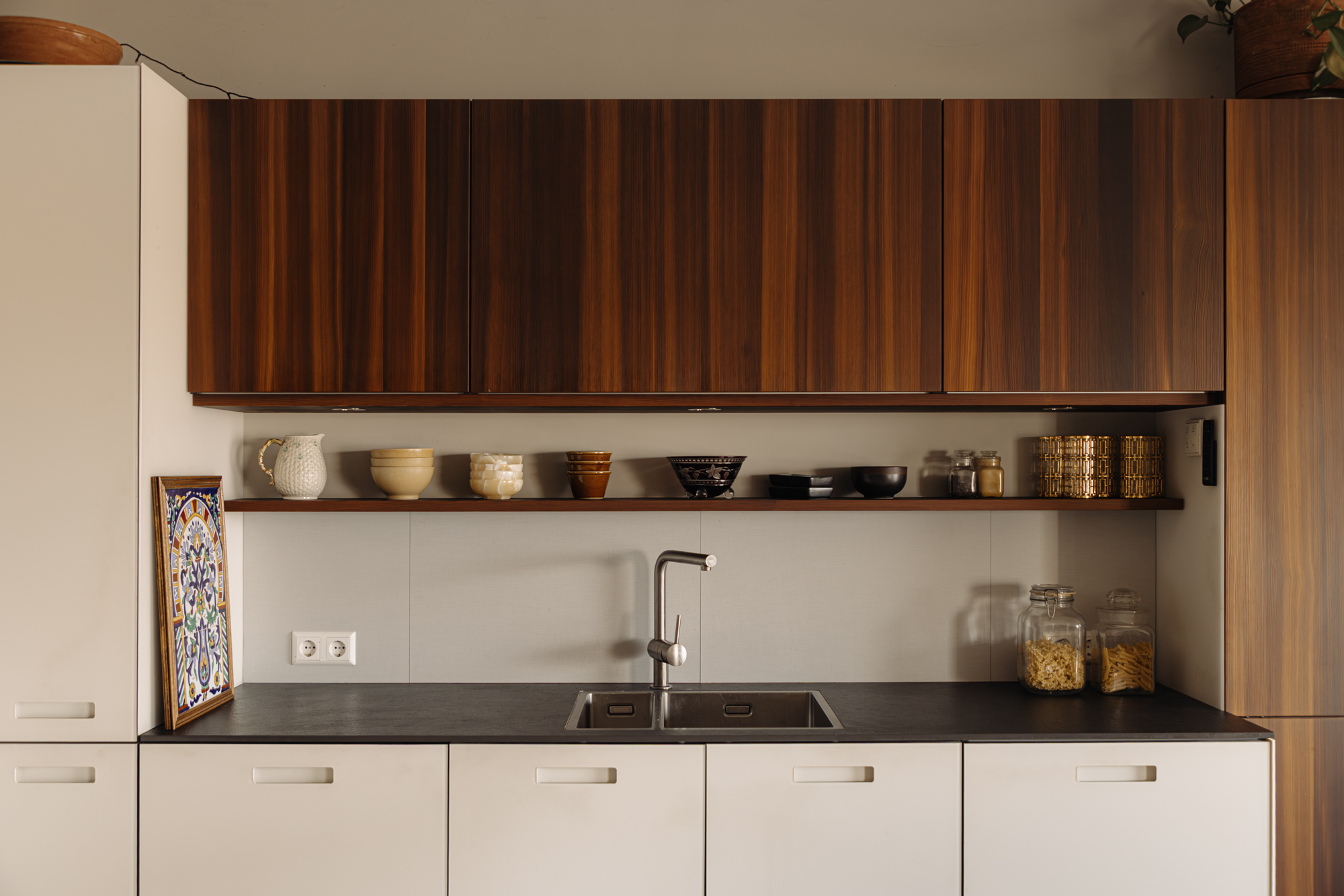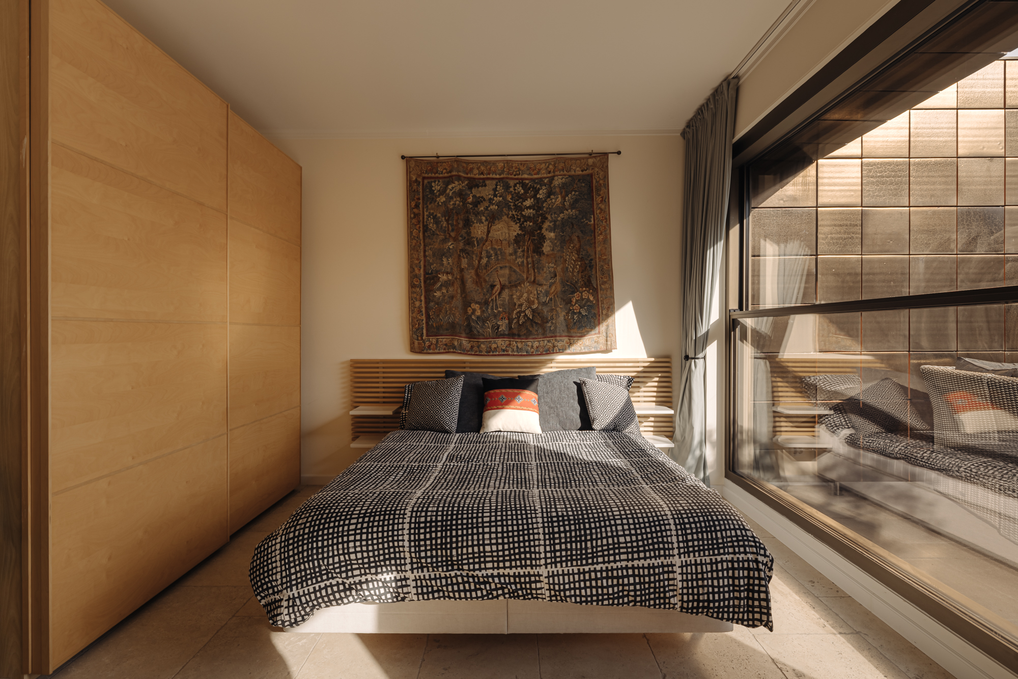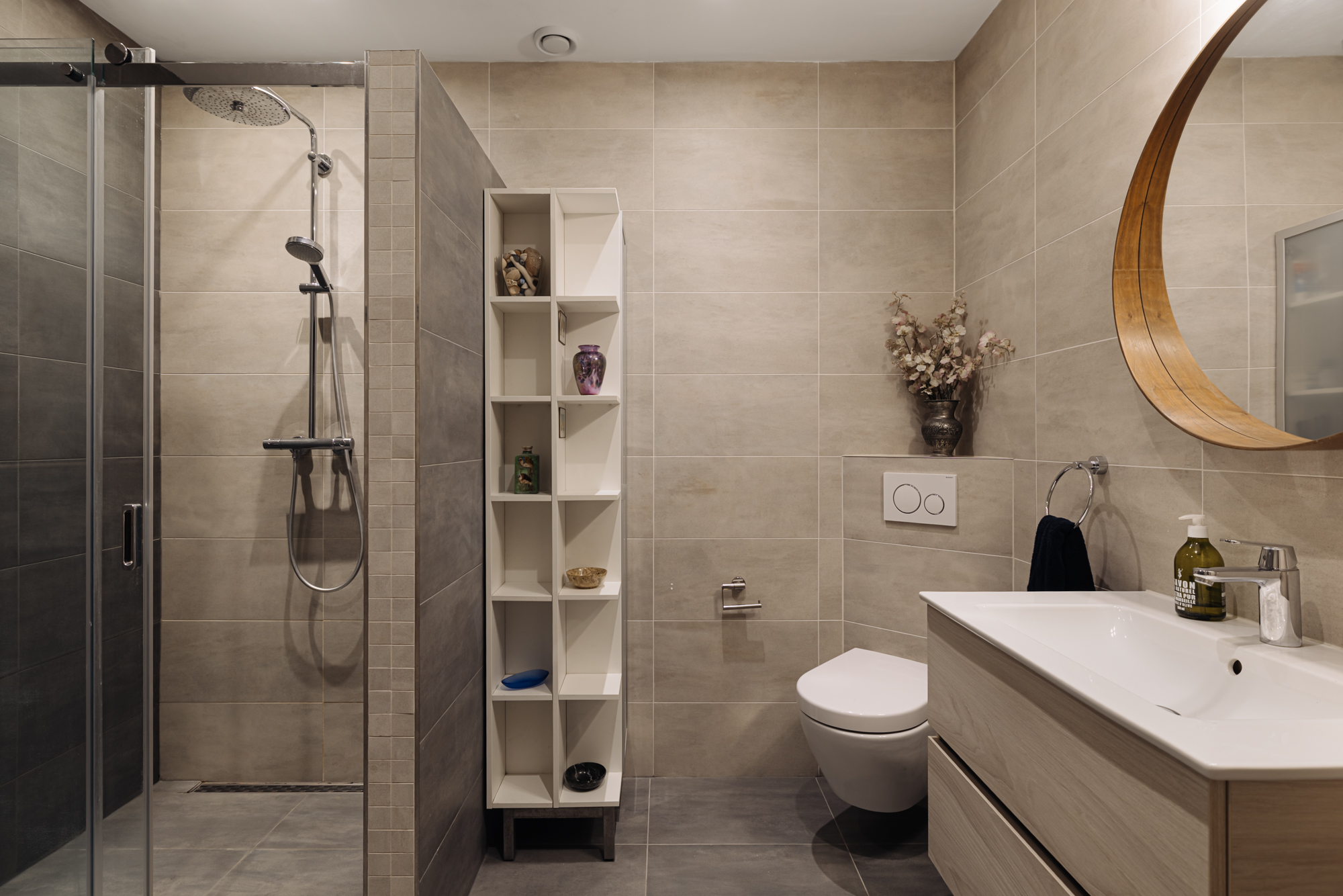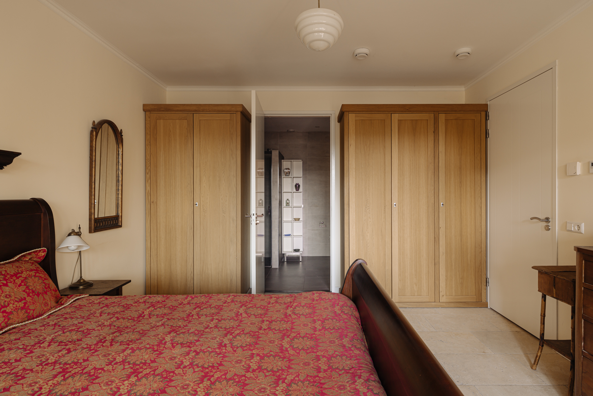 The property has two entrances: a private entrance at street level on the ground floor and an entrance via the communal hallway with lift on the first floor. On the first floor, the various rooms are accessed from the hallway, with the living room stretching across the full width at the front. Large windows create a strong visual connection with the IJ and provide a constant flow of natural light throughout the space. Electric blinds on all windows provide privacy and filter direct sunlight at the touch of a button.