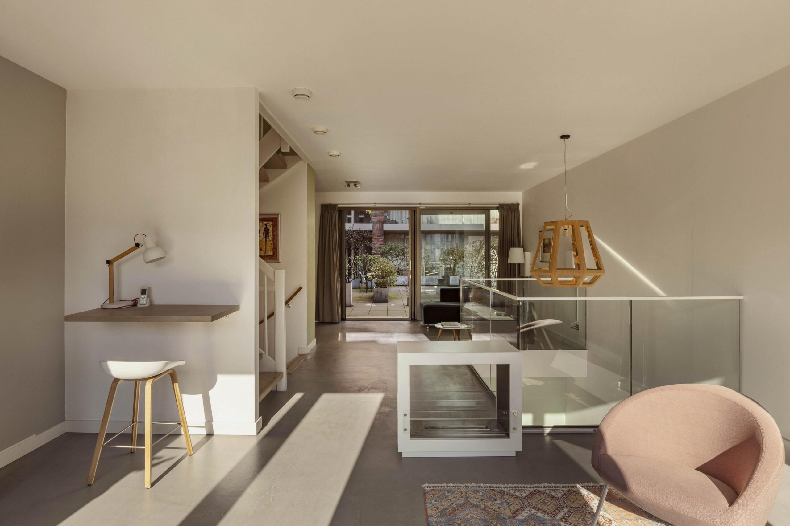 The ground floor is finished with a modern poured resin floor.