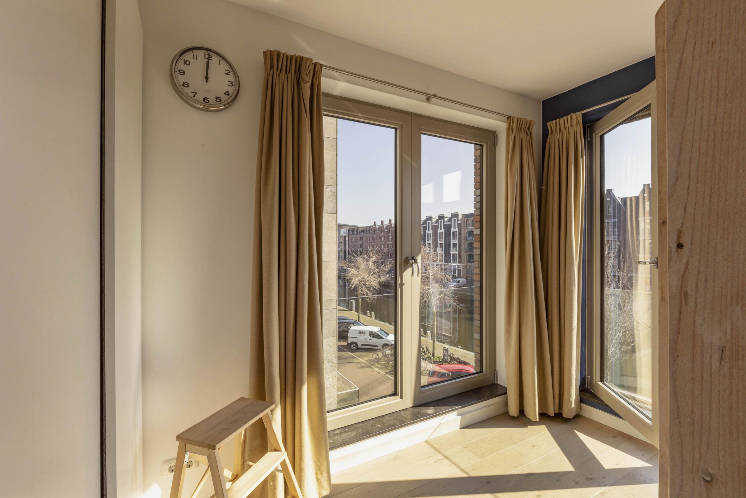 At the front, double French doors open onto the balcony overlooking the canal. At the rear, this floor features a generous terrace of approximately 37 m².