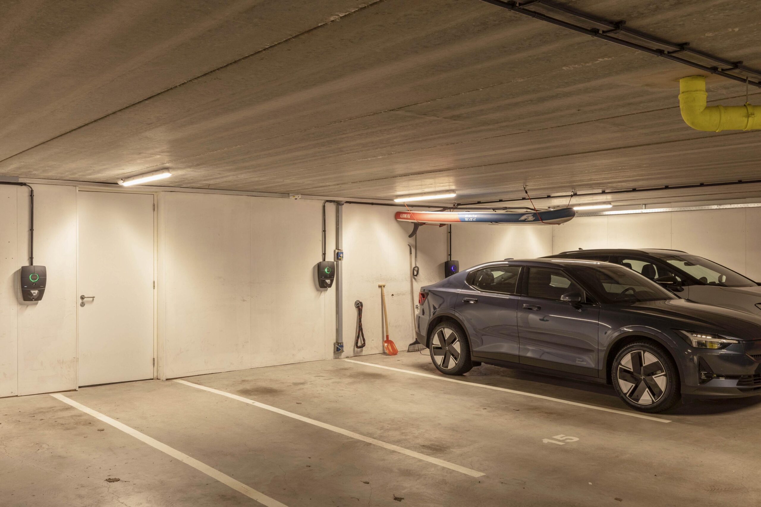 From the house there is direct access to the parking garage, where a private parking space with charging station is available.