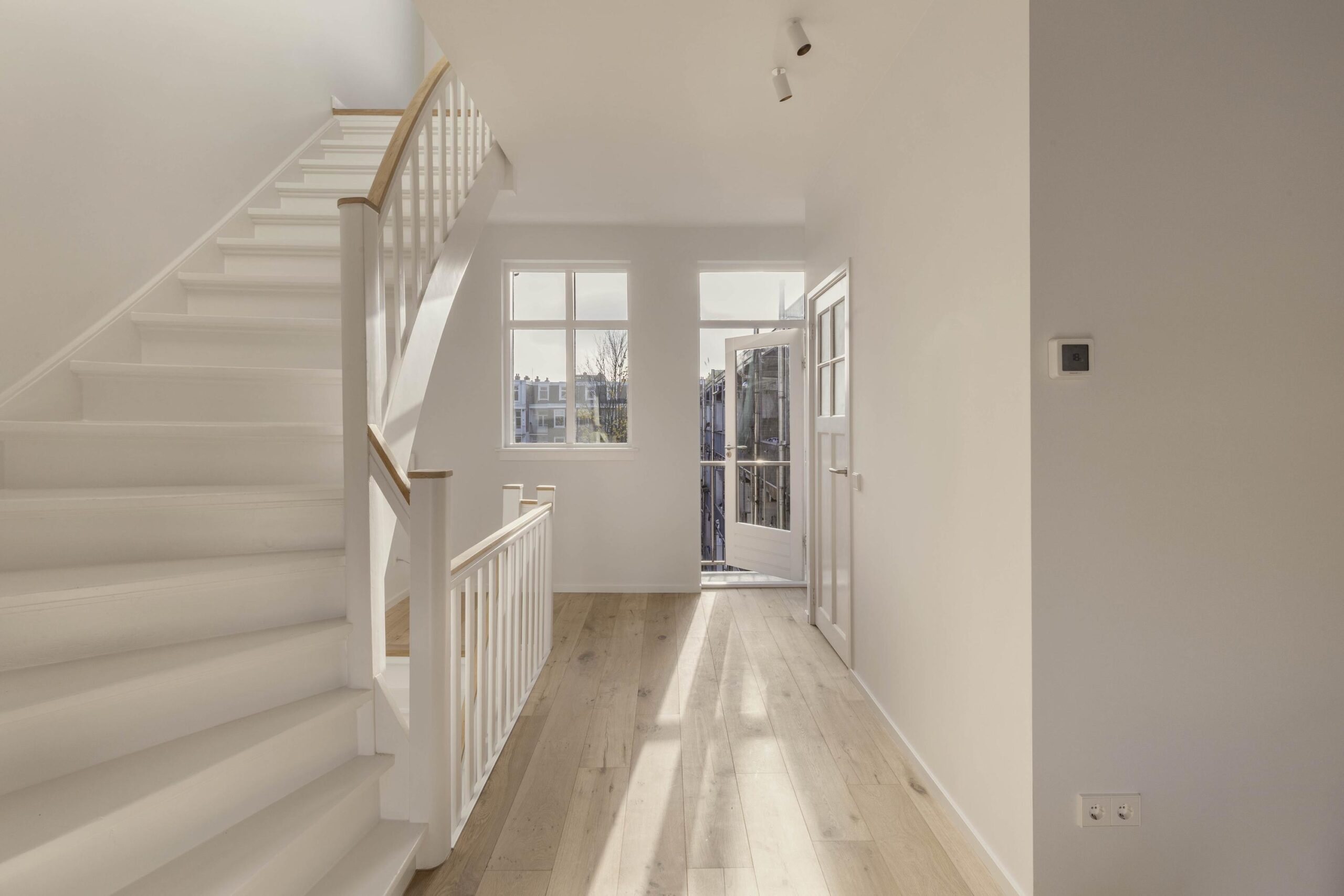 This recently completed turnkey apartment features a bright and modern interior, oak flooring, and a well-considered open layout. Large windows at the front allow for beautiful natural light, enhancing the sense of space.