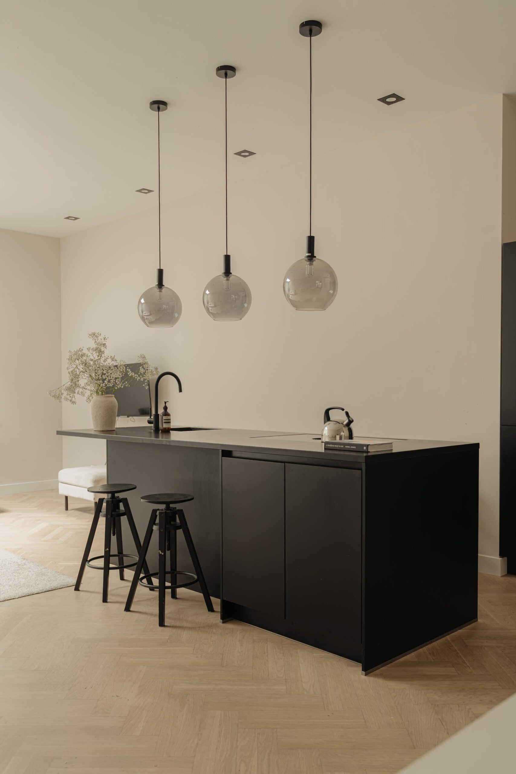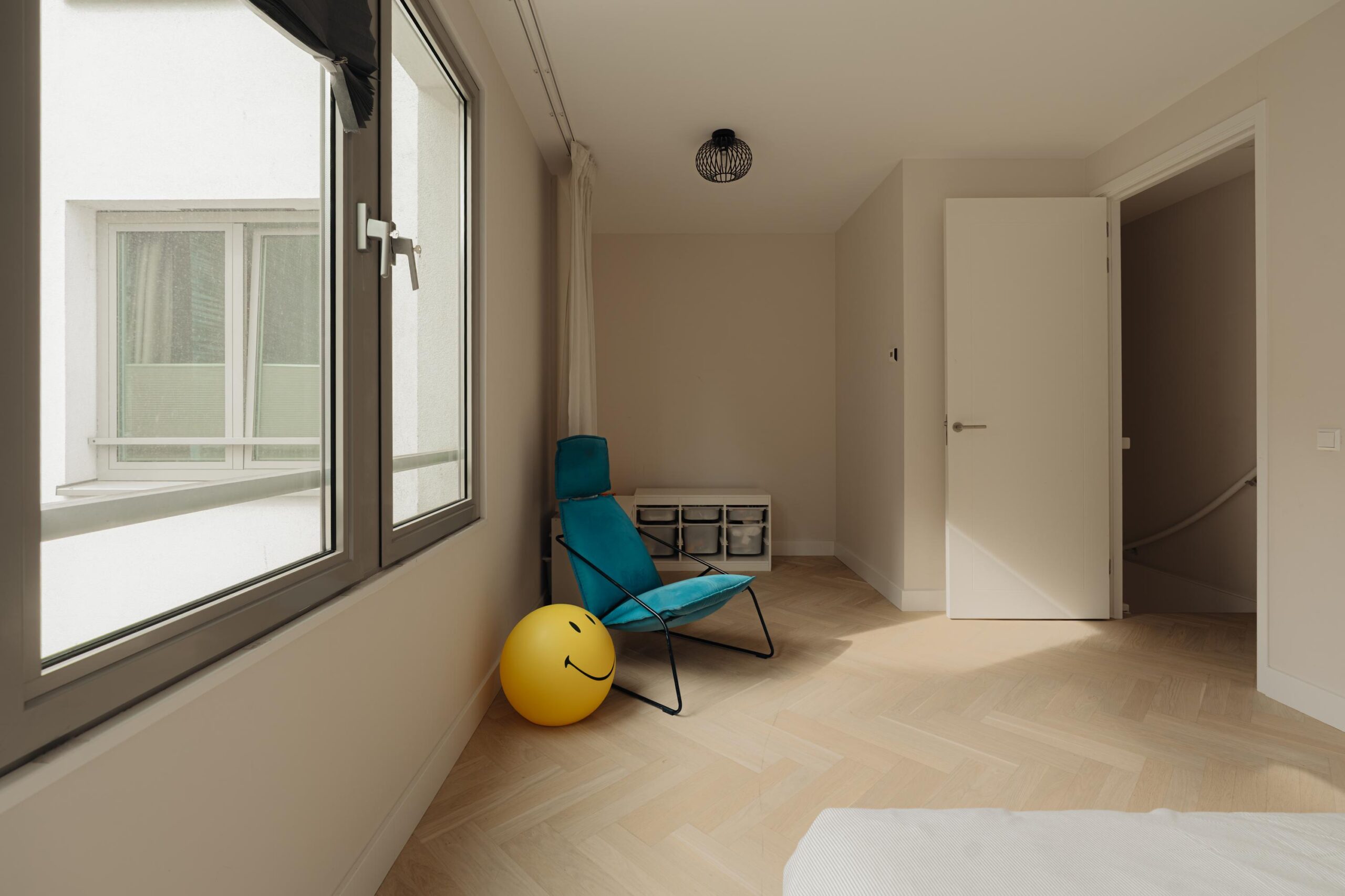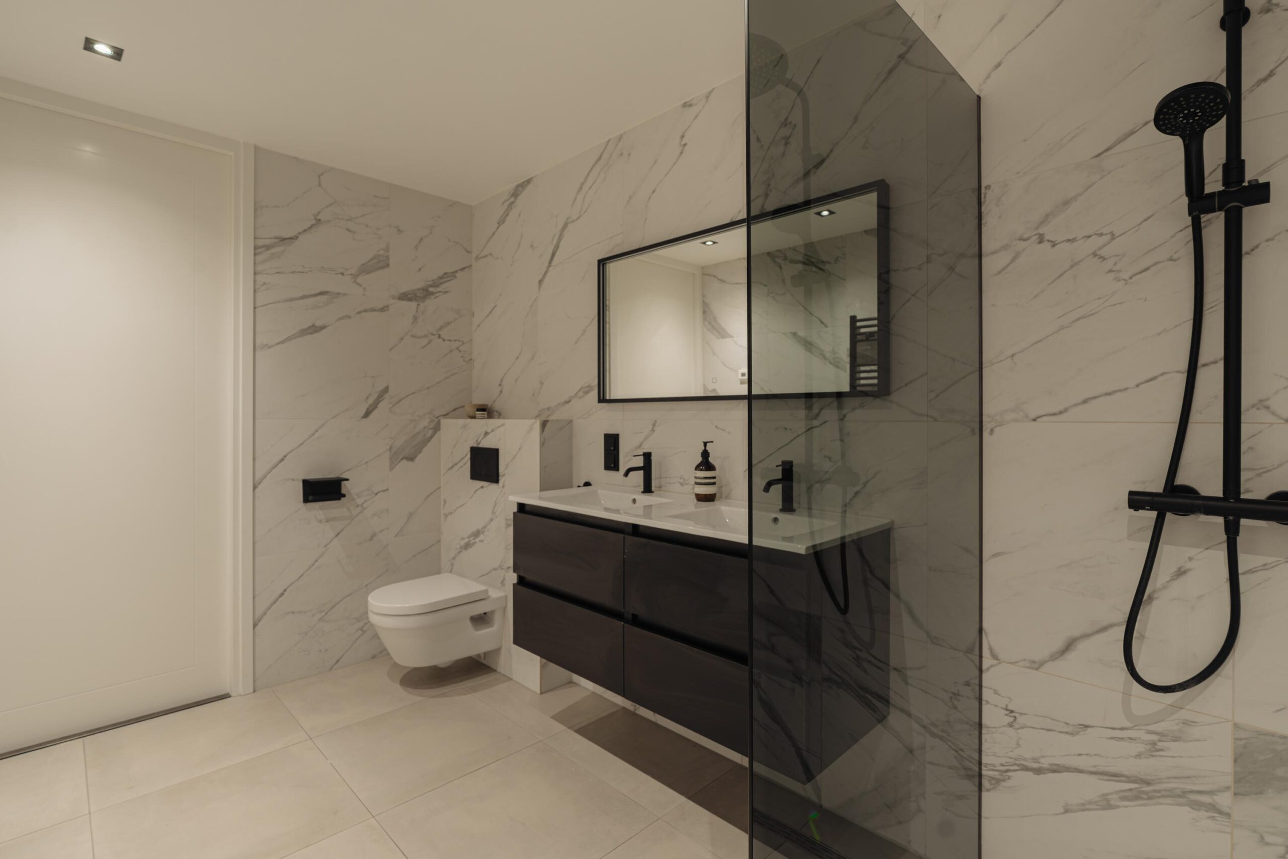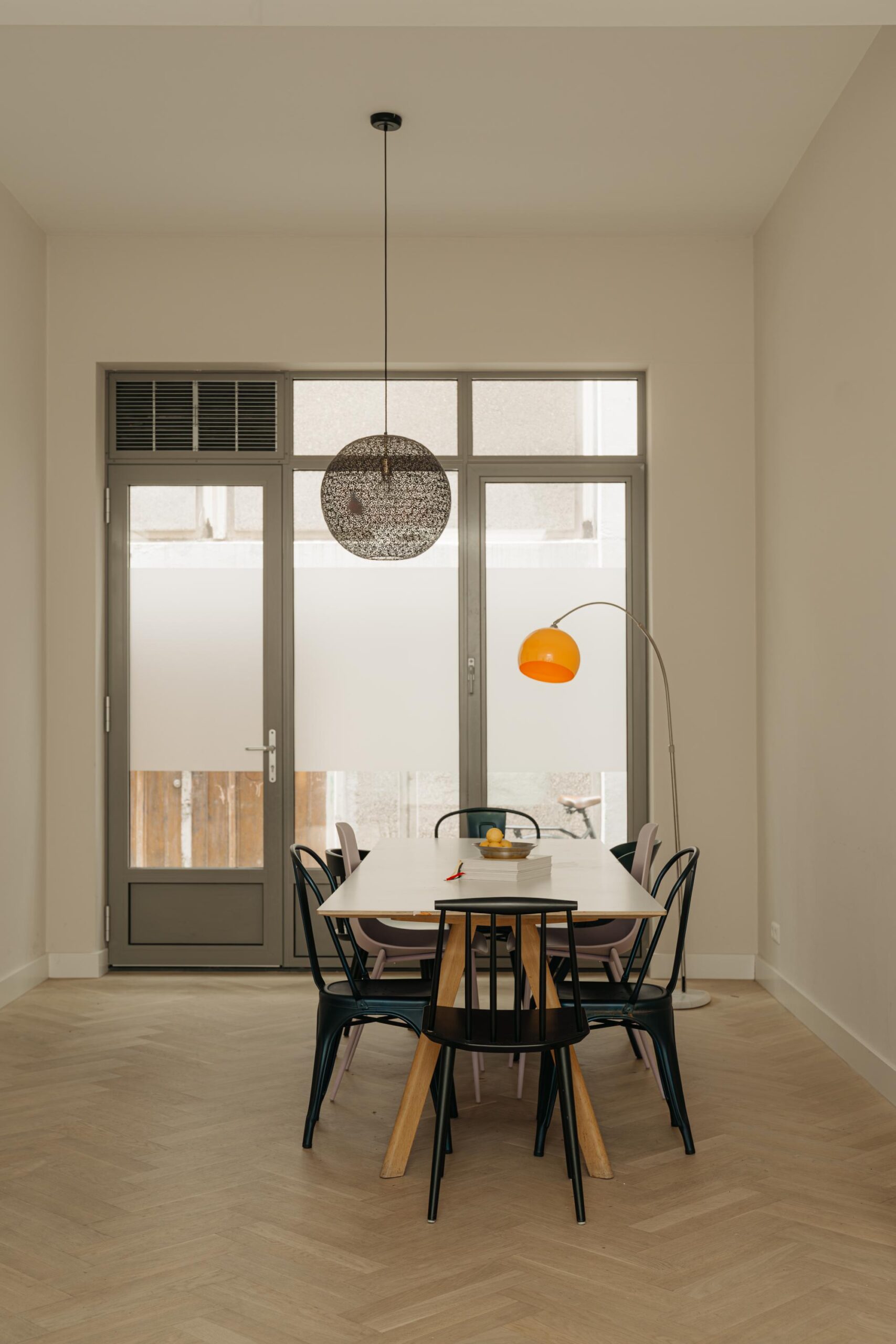 The apartment is part of the De Keizer project, completed in 2017–2018, consisting of five historic buildings that were fully renovated and partly newly built. Upon entering, the hallway leads into the dining room, featuring large windows and soaring ceilings, seamlessly flowing into the modern open kitchen with top-quality built-in appliances. Adjoining this space is the generous living room, where a skylight provides a bright and inviting atmosphere.