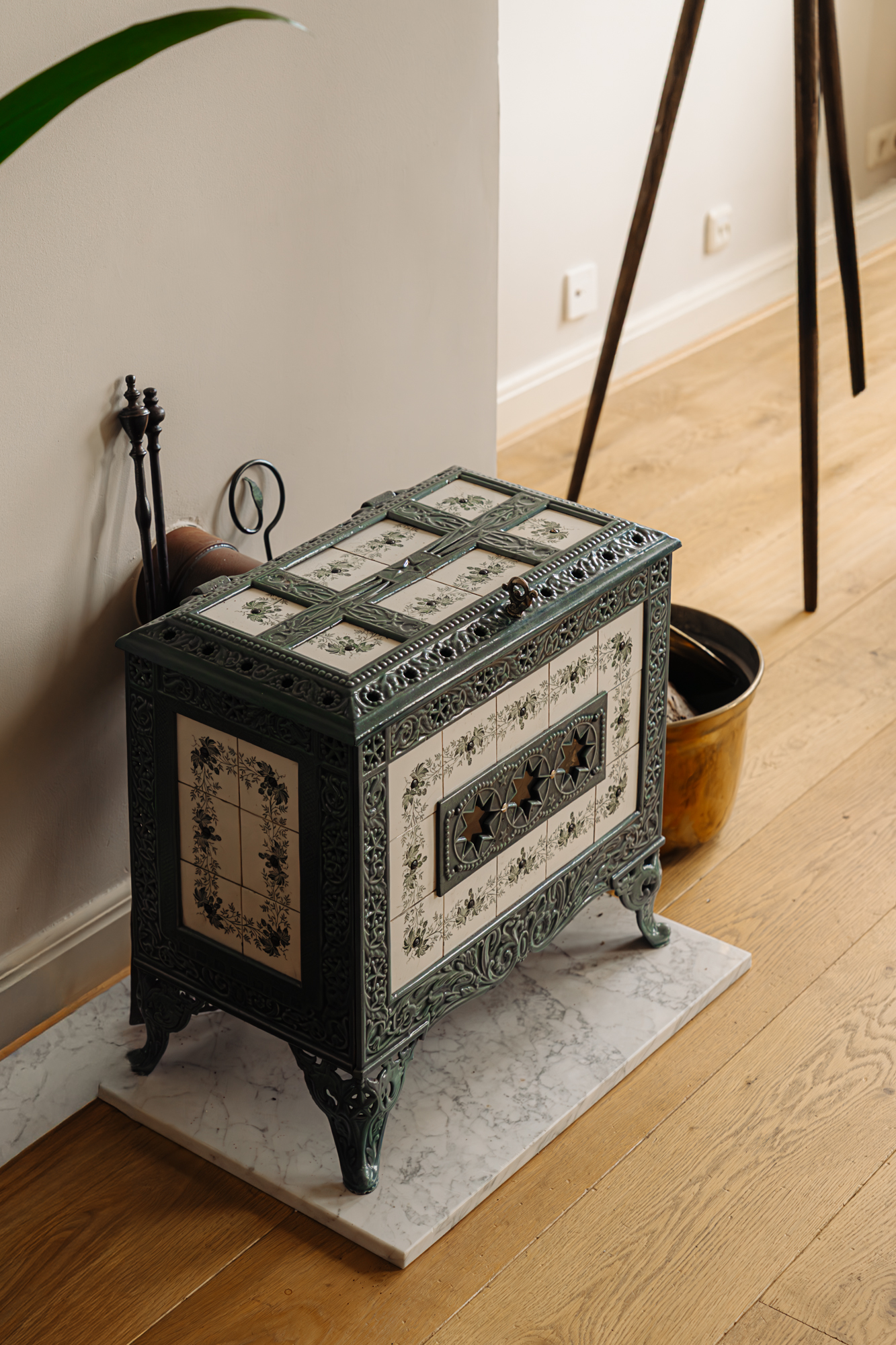 The apartment has been recently upgraded for sustainability, with insulating monument glass, a new boiler system and radiators compatible with the building’s historic character.