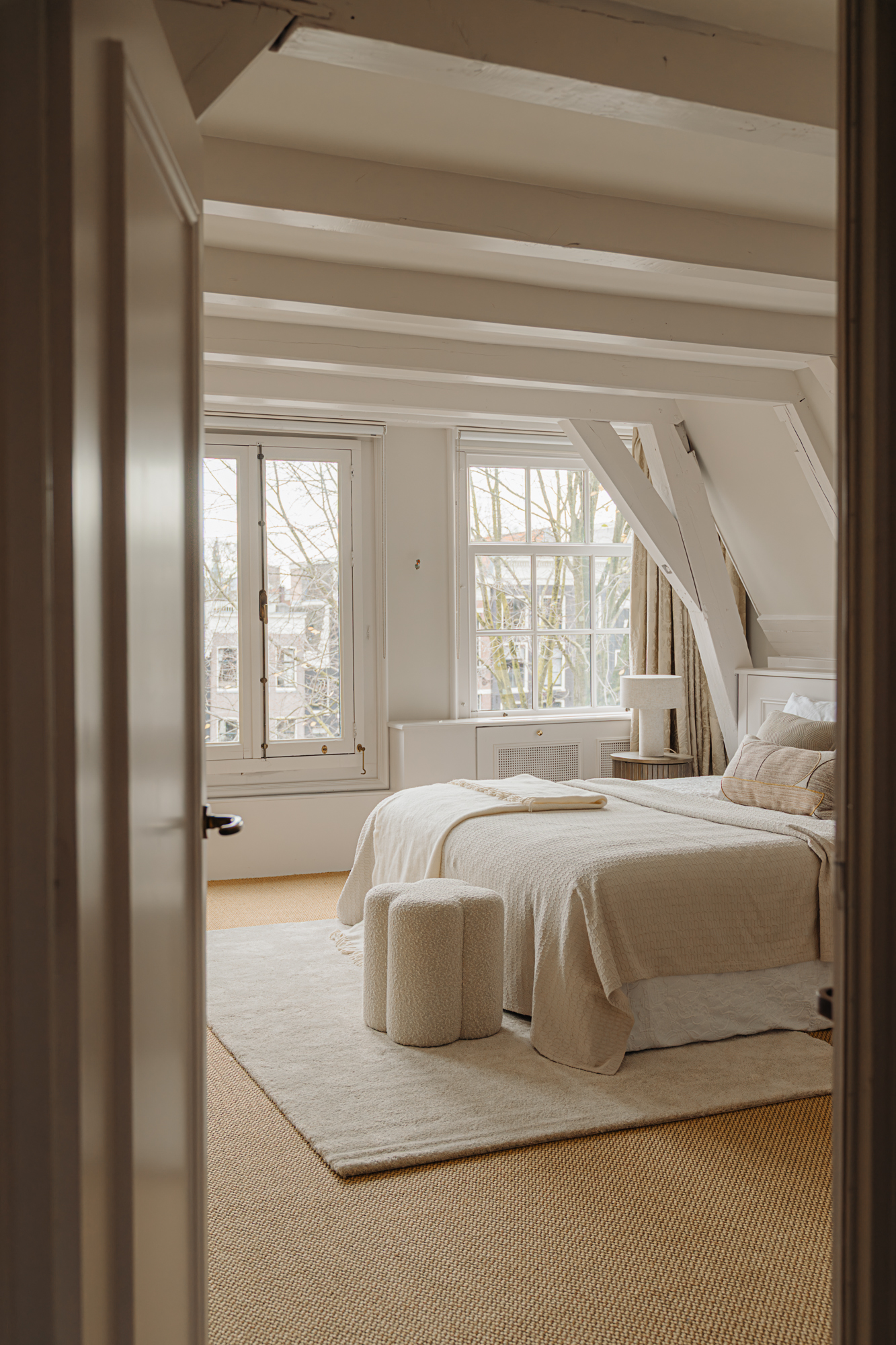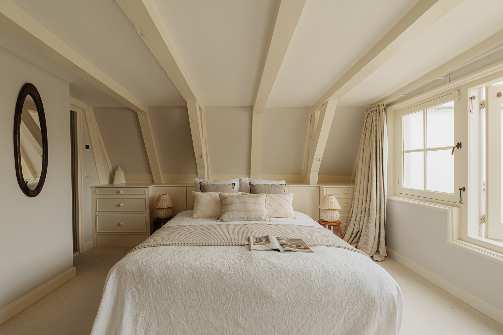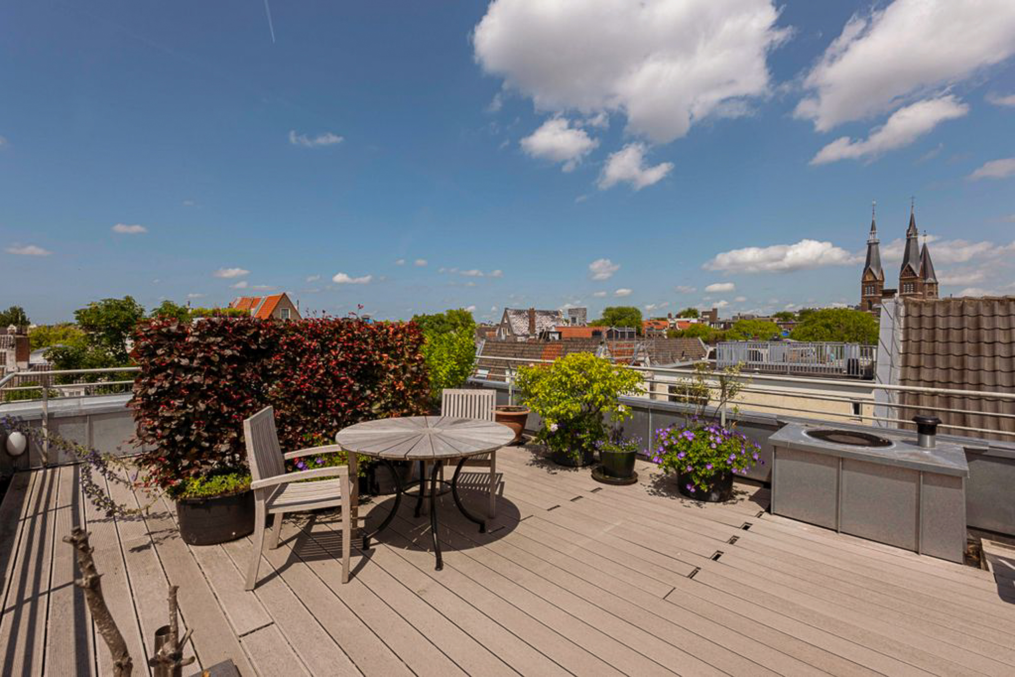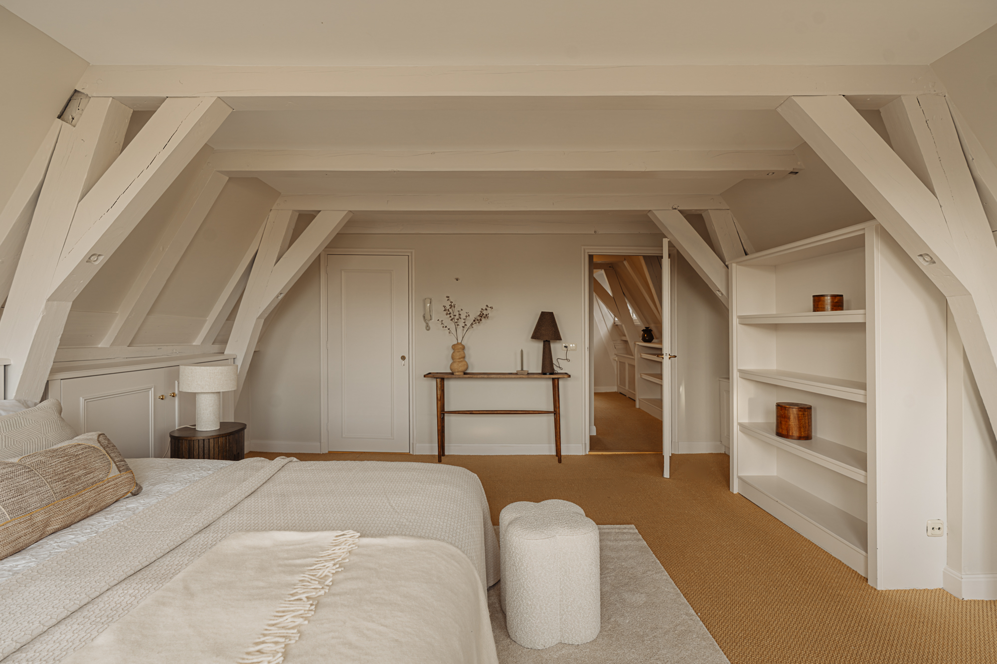 The top floor is suitable as a study, bedroom or guest room and also offers canal views. Here you’ll find the second bathroom, a private terrace and access to a spacious communal rooftop terrace overlooking, among others, the Posthoornkerk and the Noorderkerk.