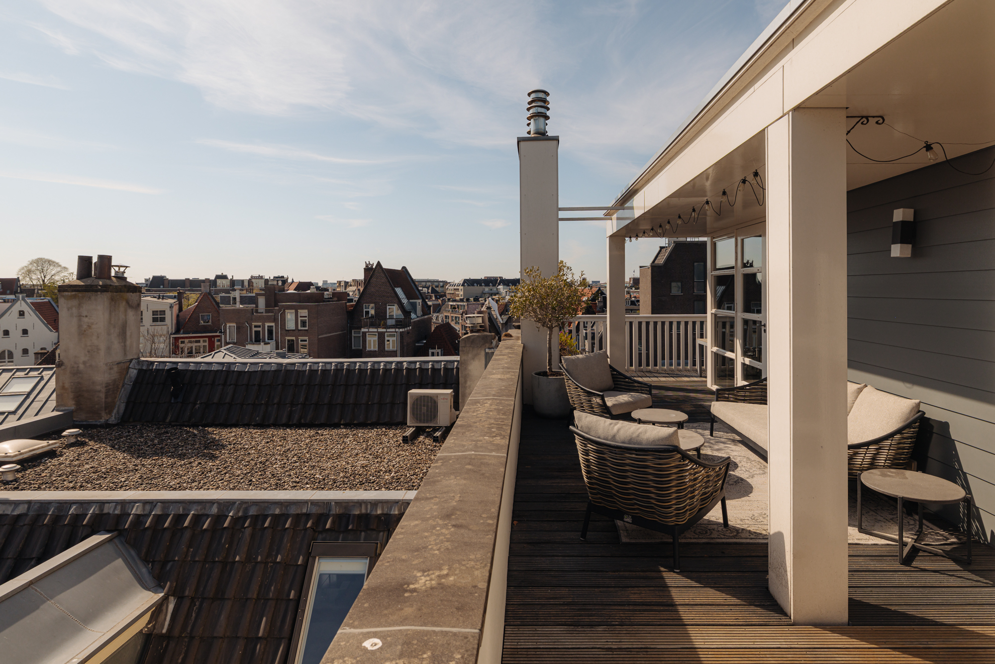 – Spacious L-shaped rooftop terrace of approx. 44 m², facing southwest with direct views of the Rijksmuseum;