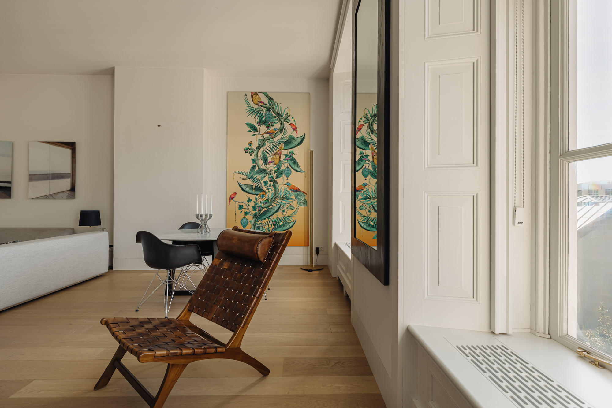 Situated within the historic building De Witte Keizer, on one of the most picturesque curves of the Keizersgracht, this exceptional apartment spans approx. 120 m² and includes a generous southwest-facing rooftop terrace of approx. 44 m². The apartment occupies two floors within a beautifully restored 18th-century national monument and effortlessly combines period charm with contemporary comfort.