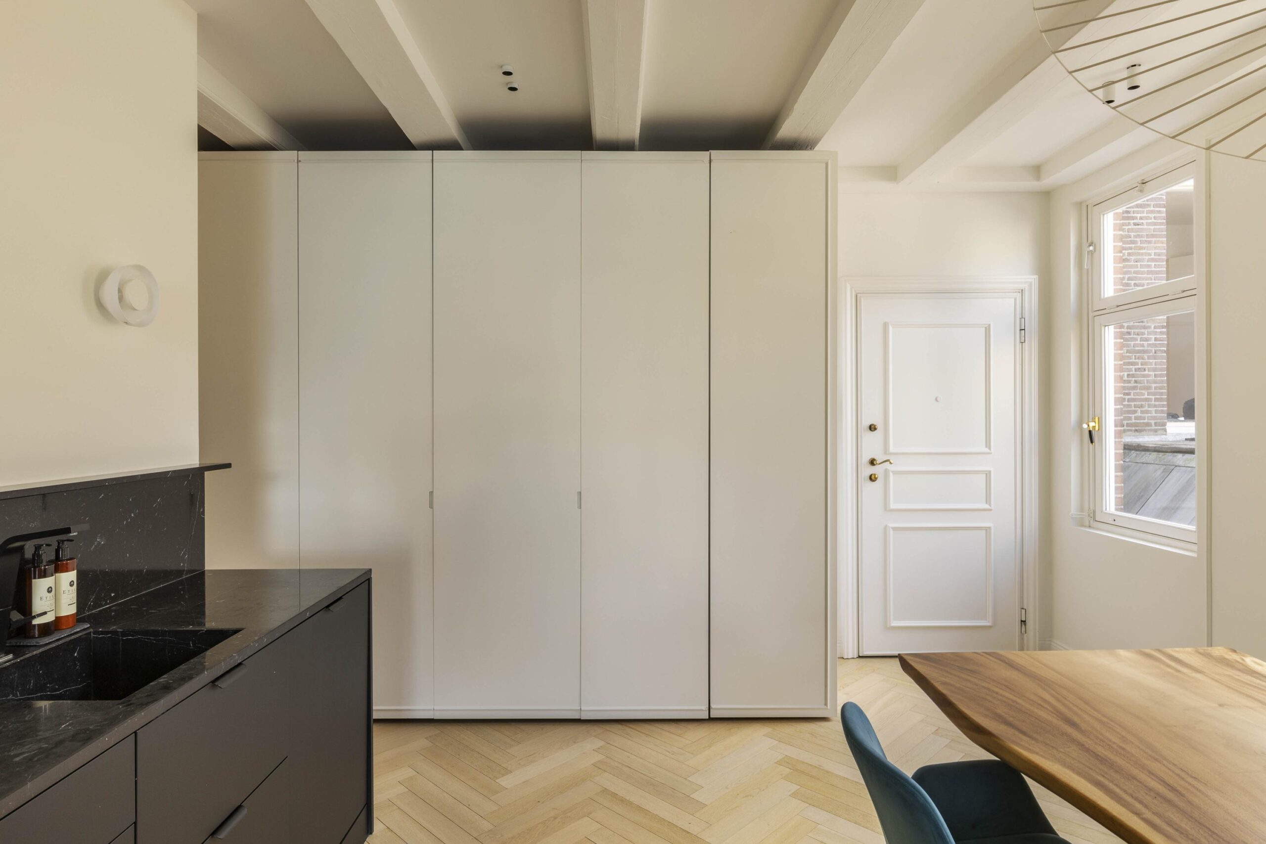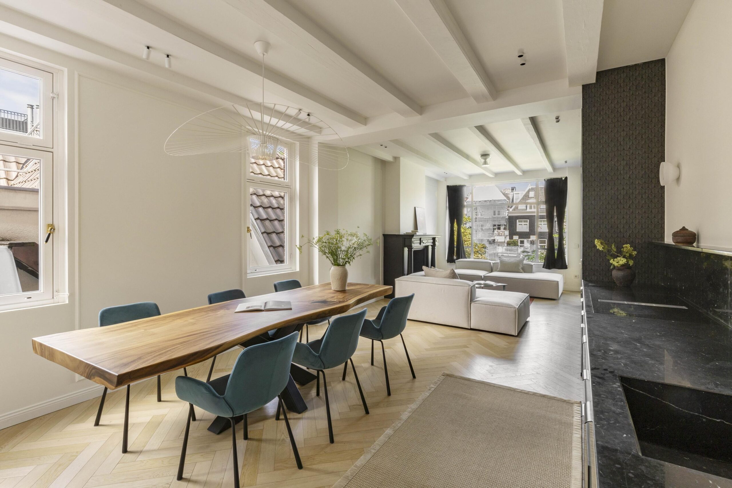 In the sought-after southern part of Amsterdam’s canal belt, this charming third-floor apartment offers approx. 74 m² of renovated under designer guidance living space within a monumental building dating back to 1658. Fully renovated in 2020, the property features a loft-style layout with one bedroom, open-plan living, high ceilings and expansive windows.