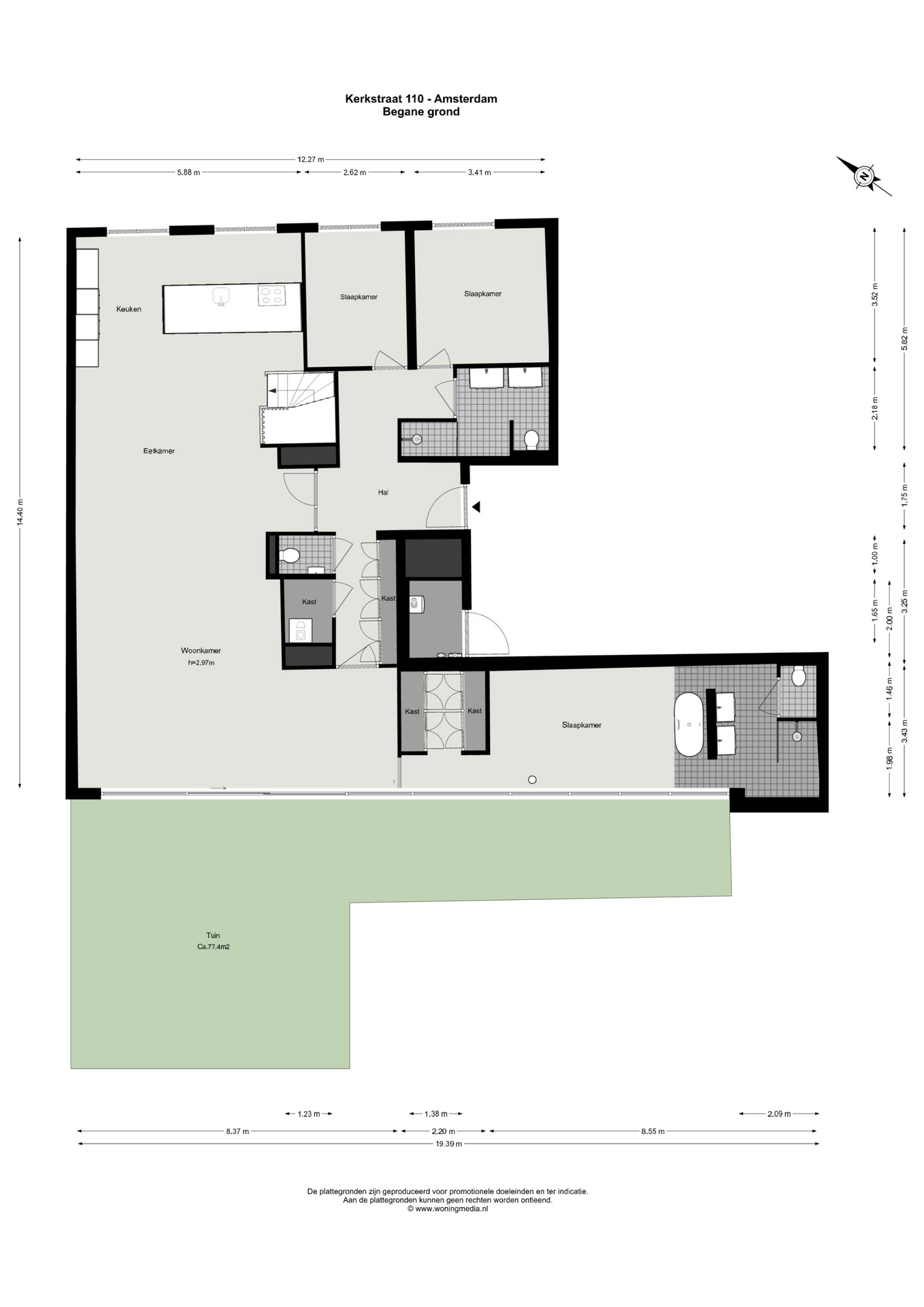 •Terrace of approximately 77.4 m², south-west facing;