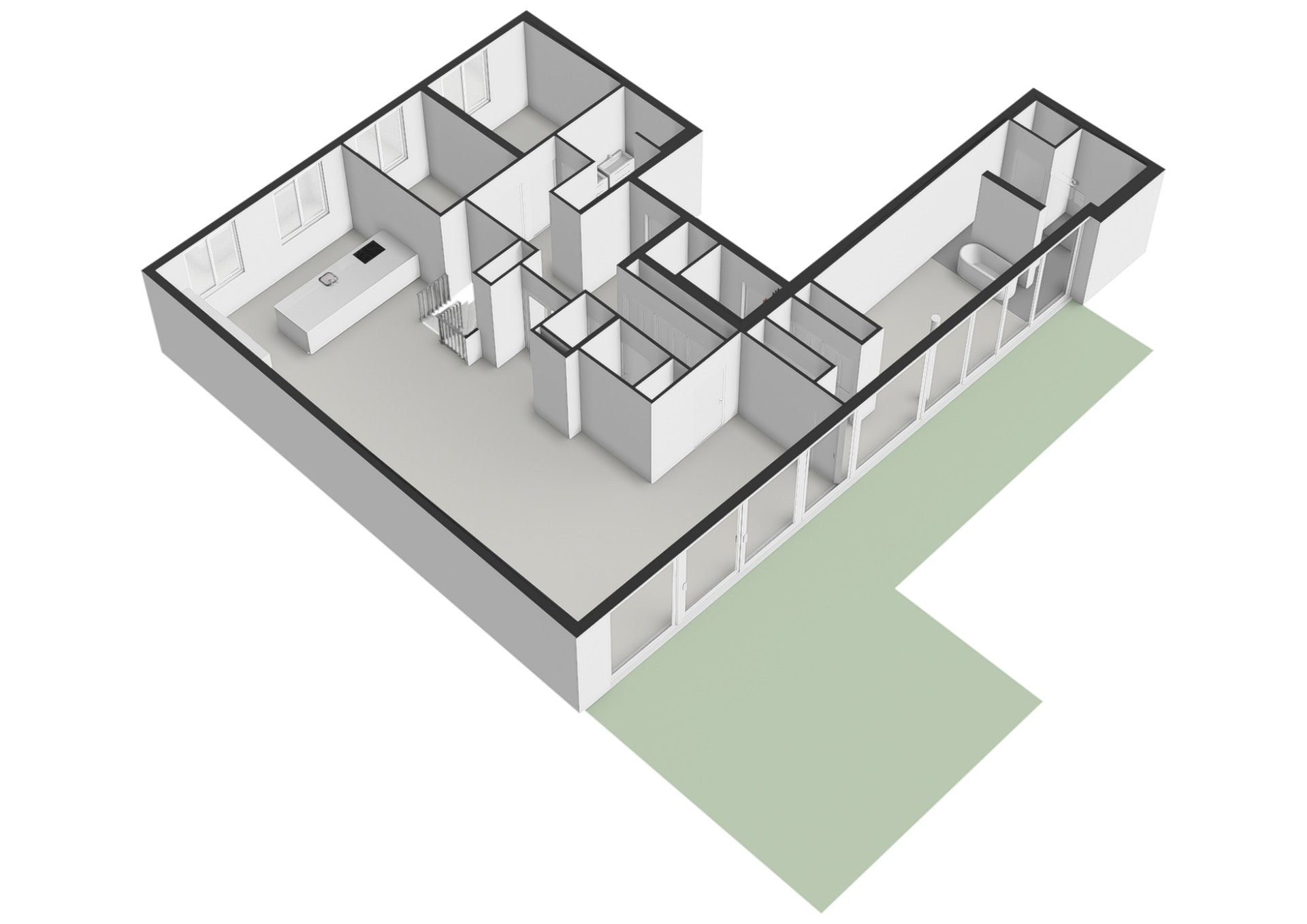 The impressive entrance leads into the apartment on garden level. A central hallway connects the various living areas and immediately sets the tone: spacious, light-filled and refined.