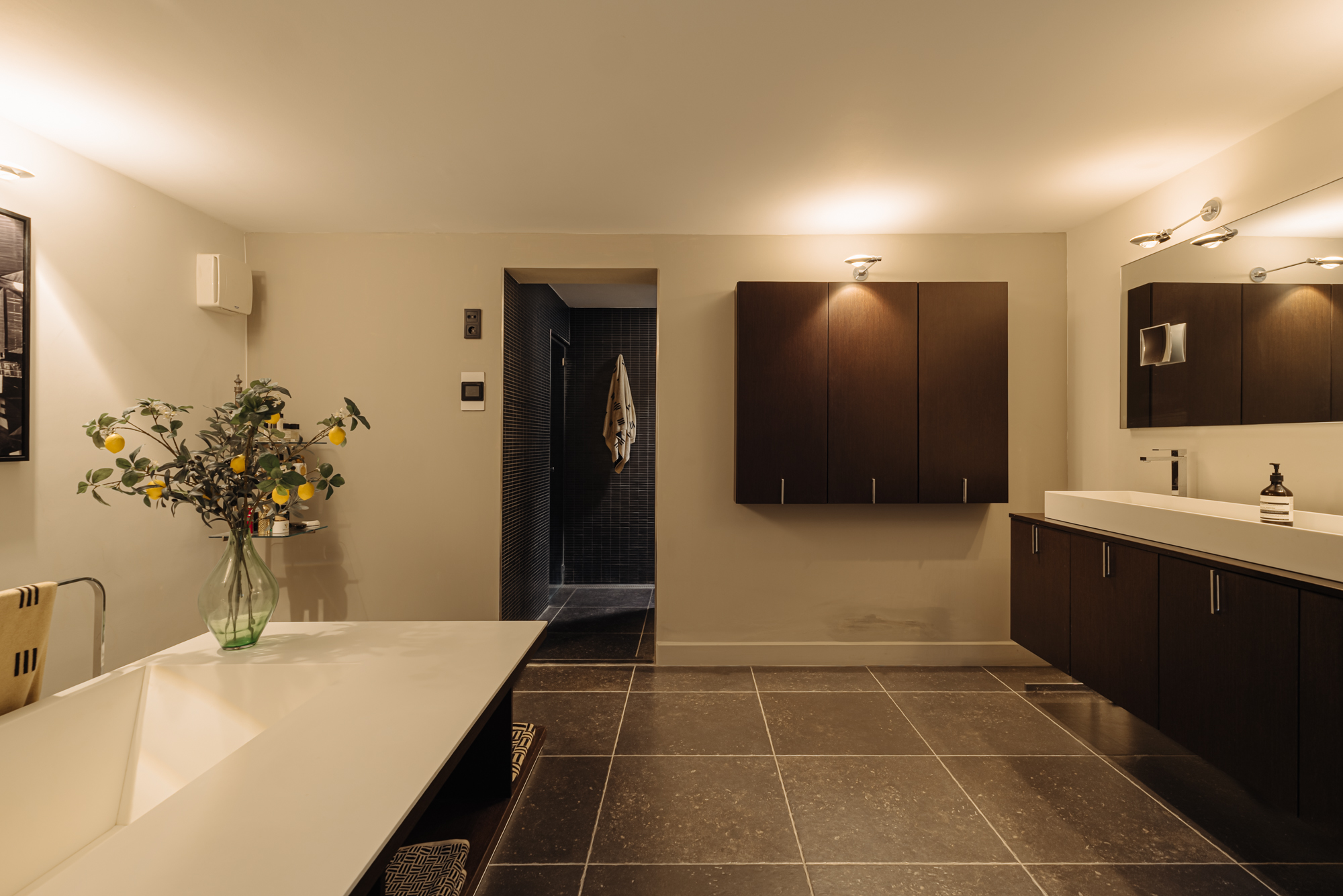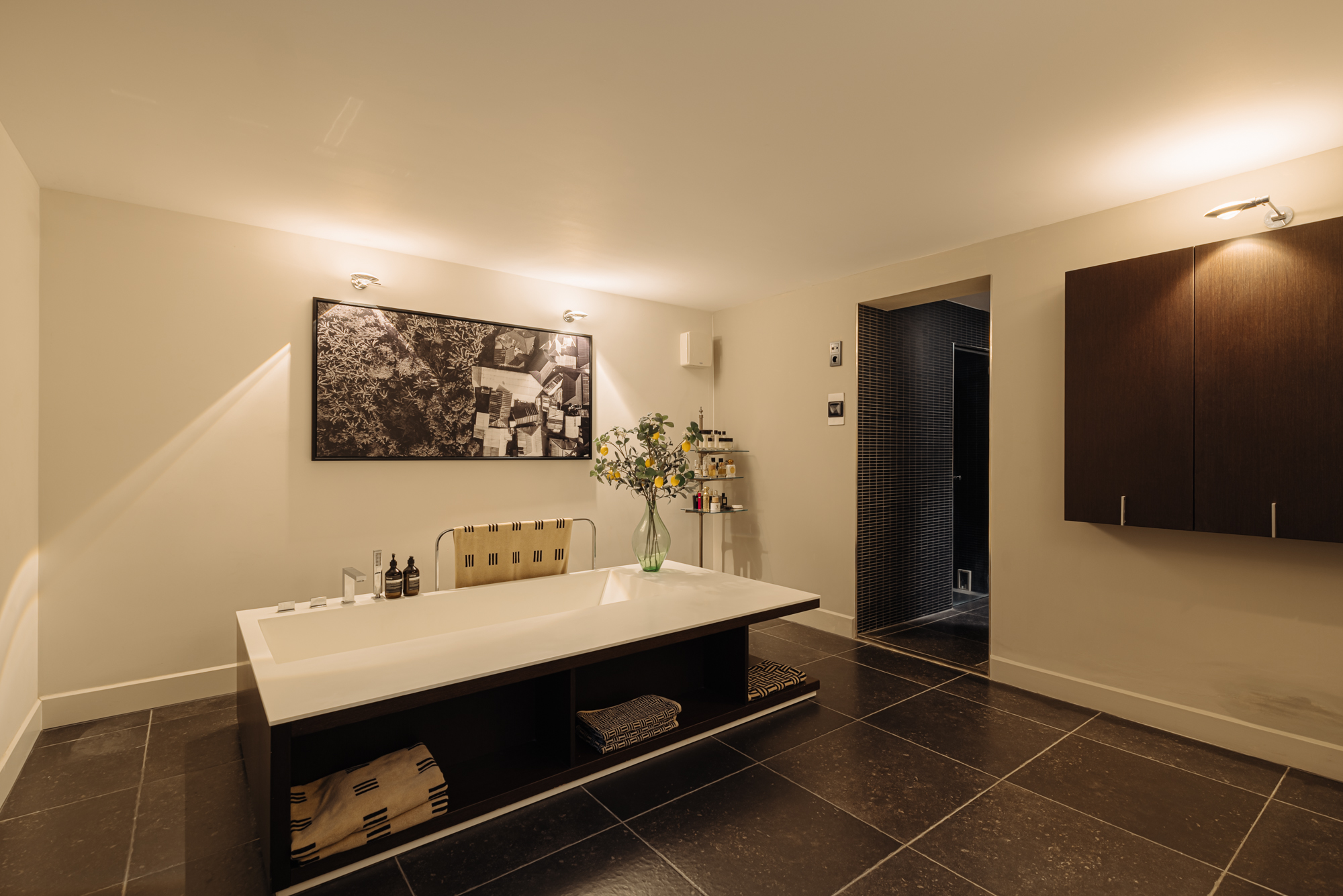 The basement level houses a generous primary bedroom with a luxurious en-suite bathroom, complete with a bathtub, walk-in shower and sauna. Additionally, there is a walk-in wardrobe, a separate toilet, internal storage and a utility room.