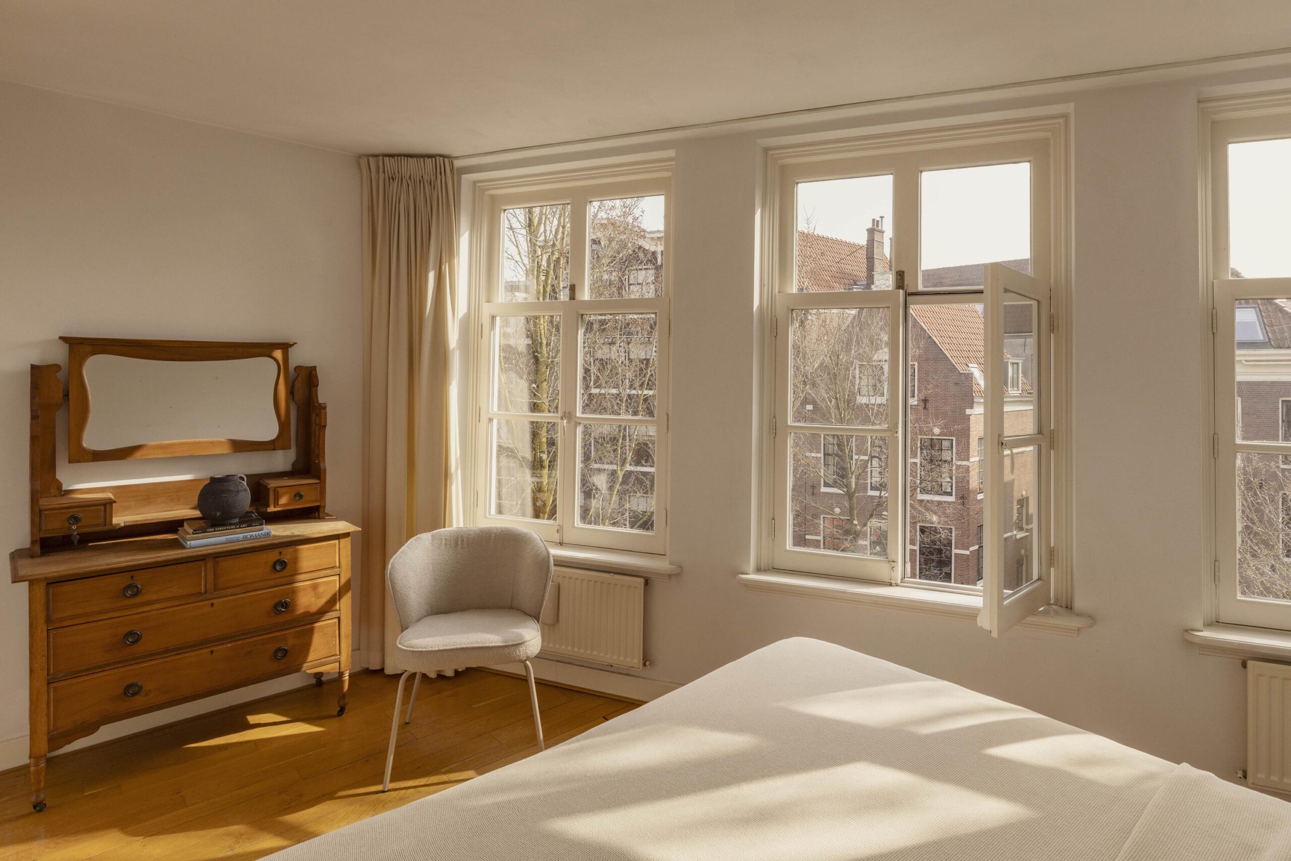 The house is situated along an idyllic and quiet canal, right in the heart of the city, yet in a surprisingly tranquil and residential part of Amsterdam. In the immediate vicinity, you will find a wide range of restaurants, cultural amenities, supermarkets, and public transport, all within walking distance.