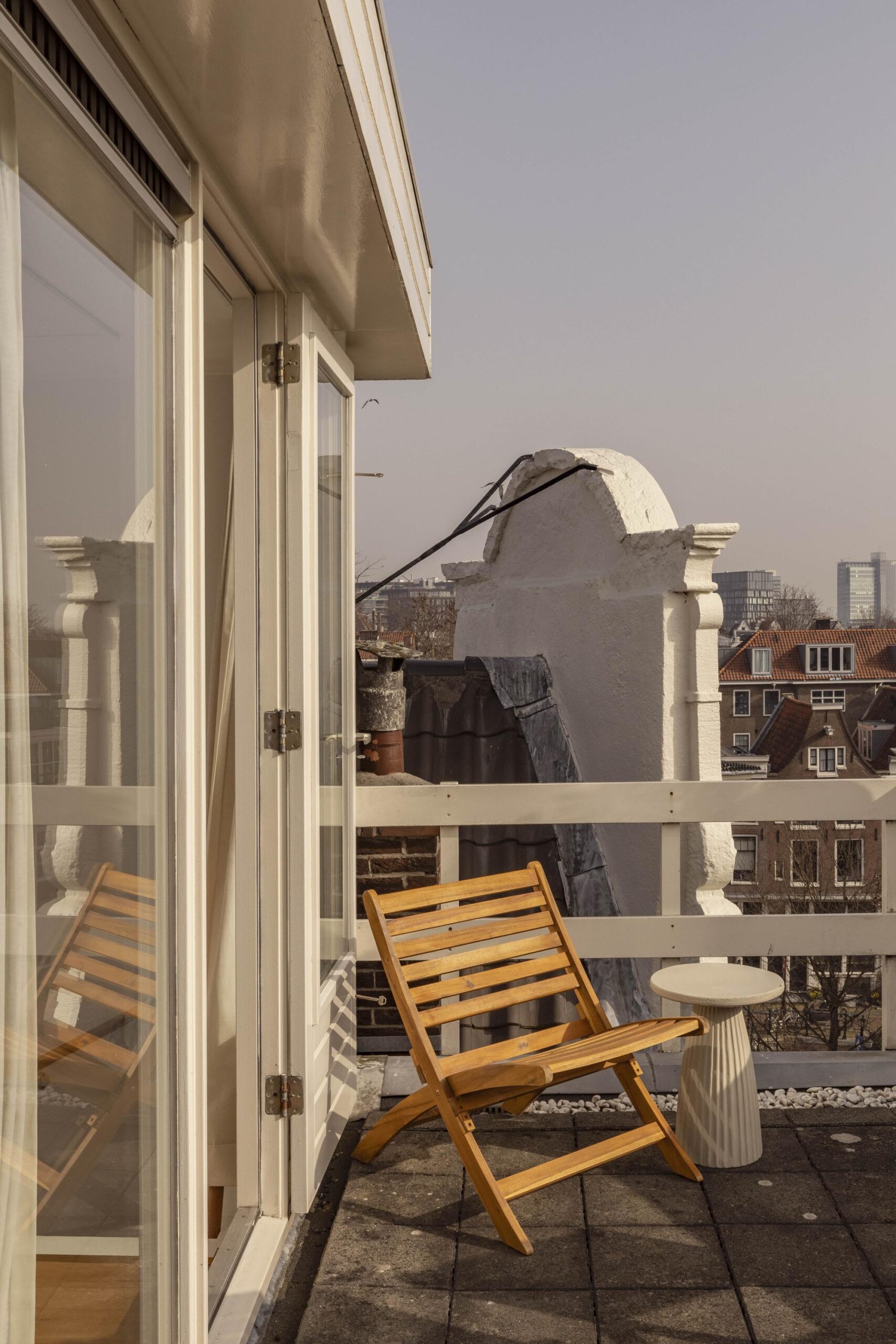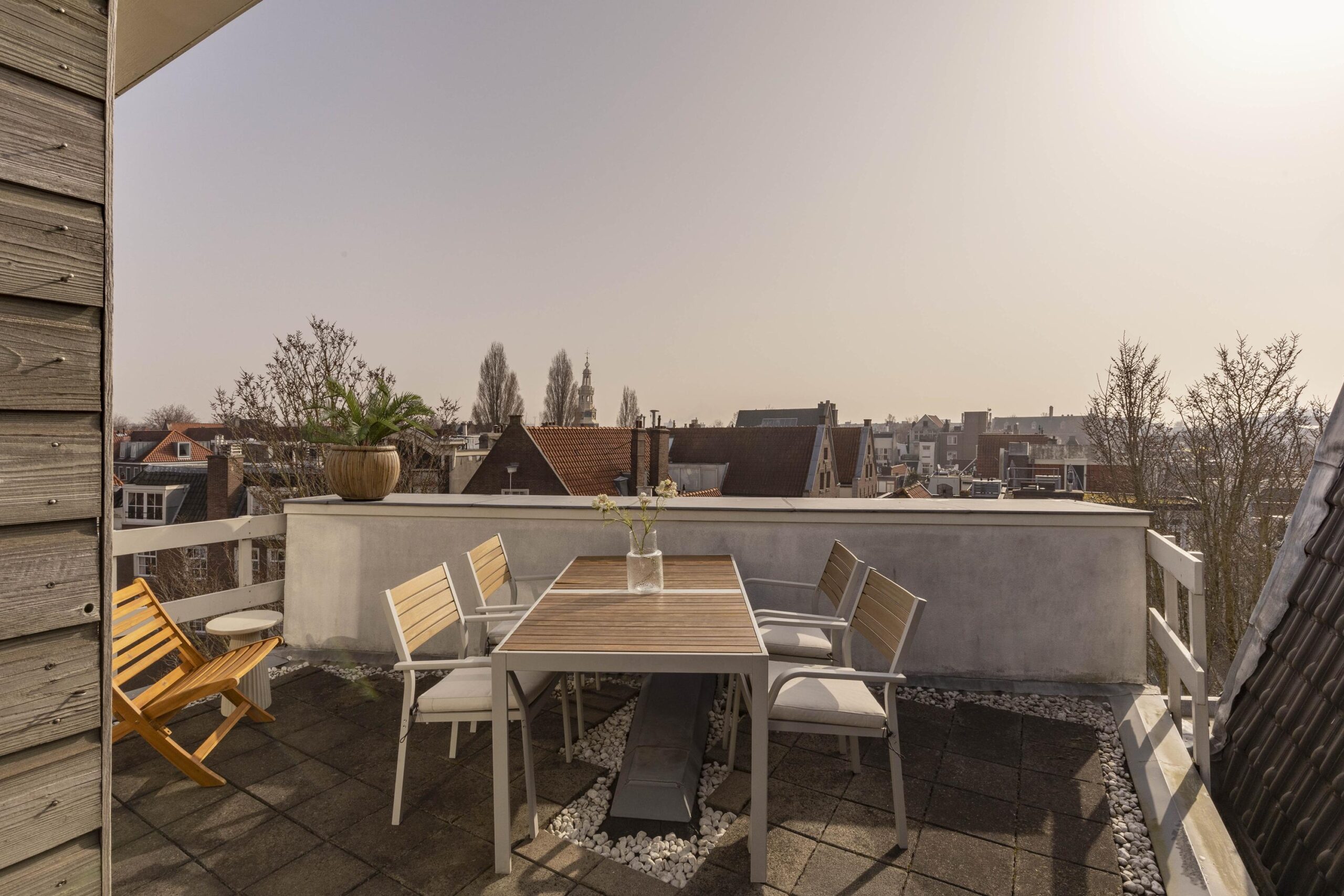 The top floor consists of a landing that provides access to the sunny roof terrace, an outdoor space with stunning views over the city and plenty of room for both a lounge area and a large dining table.