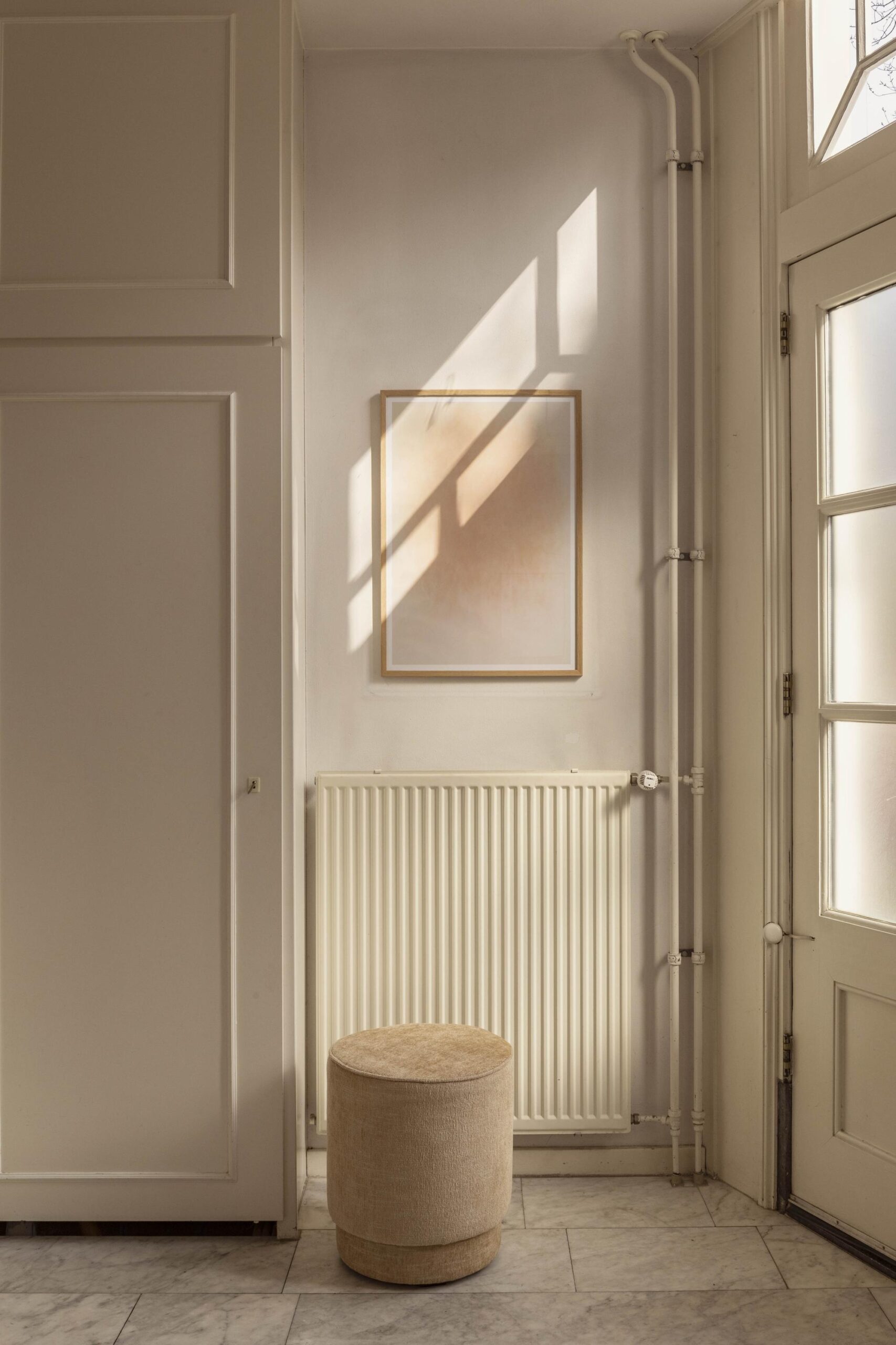 The second floor houses the spacious living room. From both the living room and the adjacent space, there are beautiful views over the canal. The large windows and the reflection of sunlight on the water create a rich influx of light, making the home feel exceptionally bright and spacious.