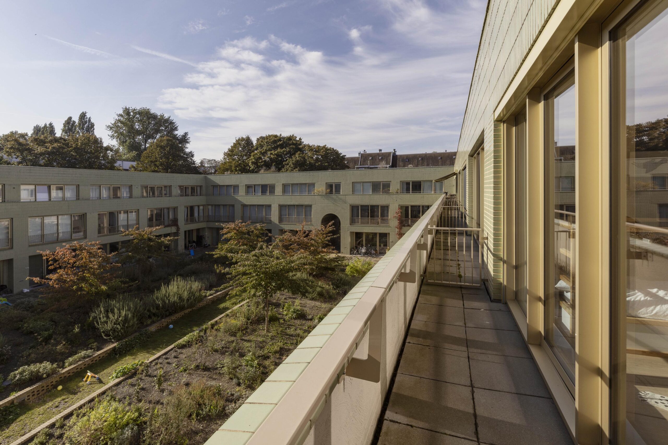 The property is situated in a prime location in the vibrant Spaarndammerbuurt, close to the Jordaan, Westerpark, and Houthavens. “De Verbinding” was built on the former site of the Spaarndammer School and combines architectural excellence in the Amsterdam School style with modern, sustainable living comfort. The beautifully landscaped communal garden, featuring an orchard and herb garden, forms a green oasis in the middle of the city.