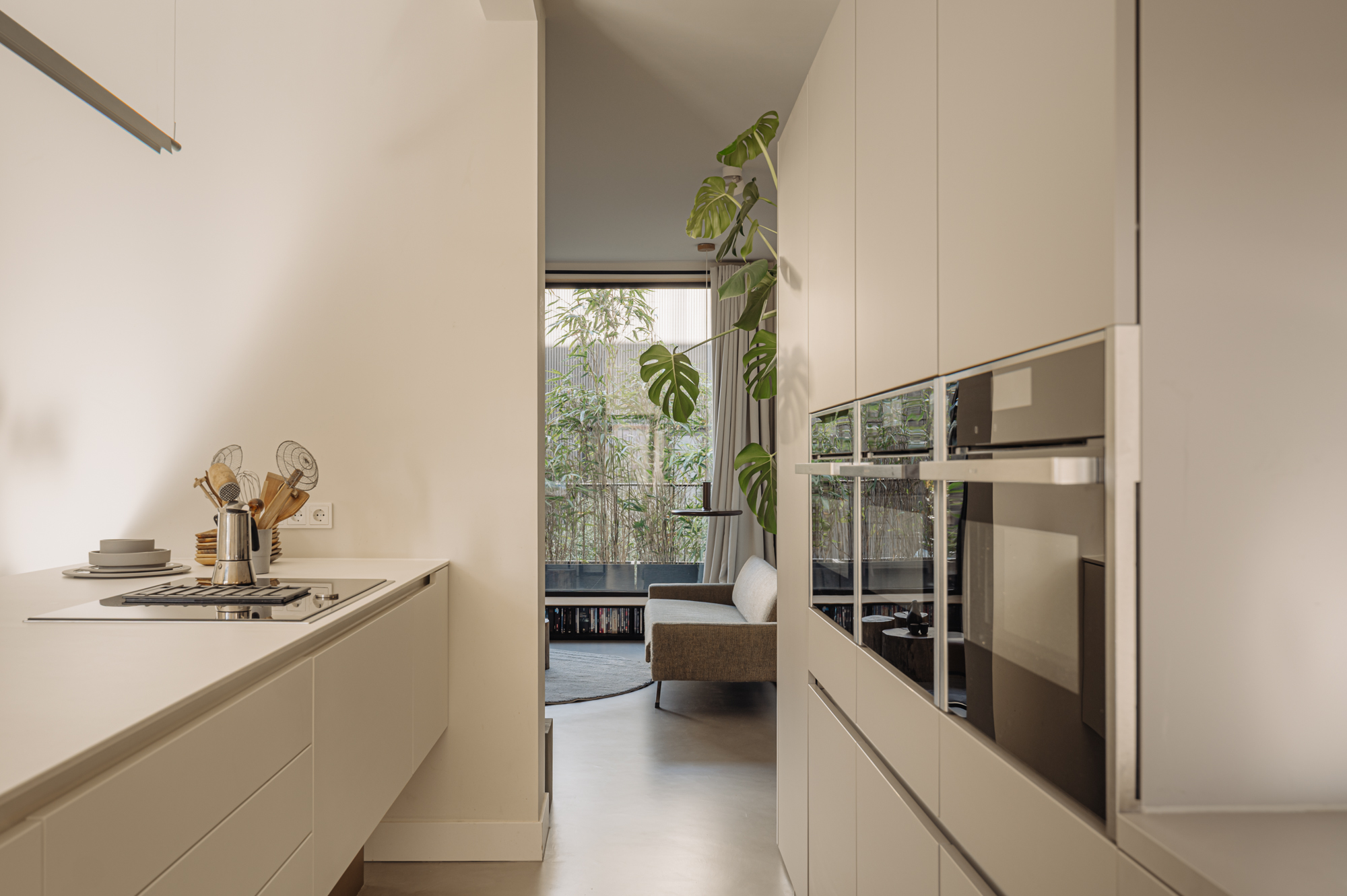 • At the front: a luxurious kitchen with cooking island, approx. 20 m² terrace, and canal views.
