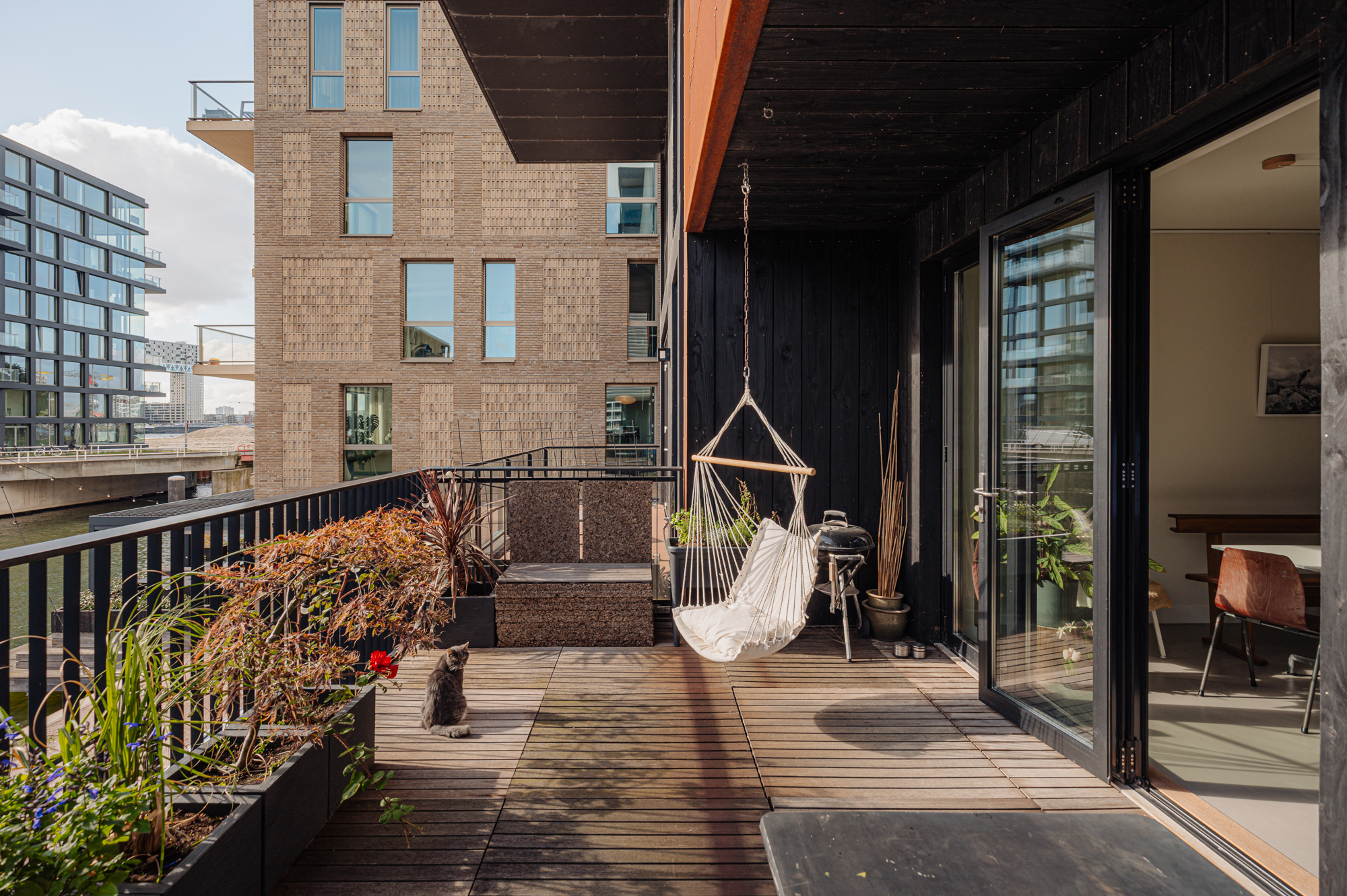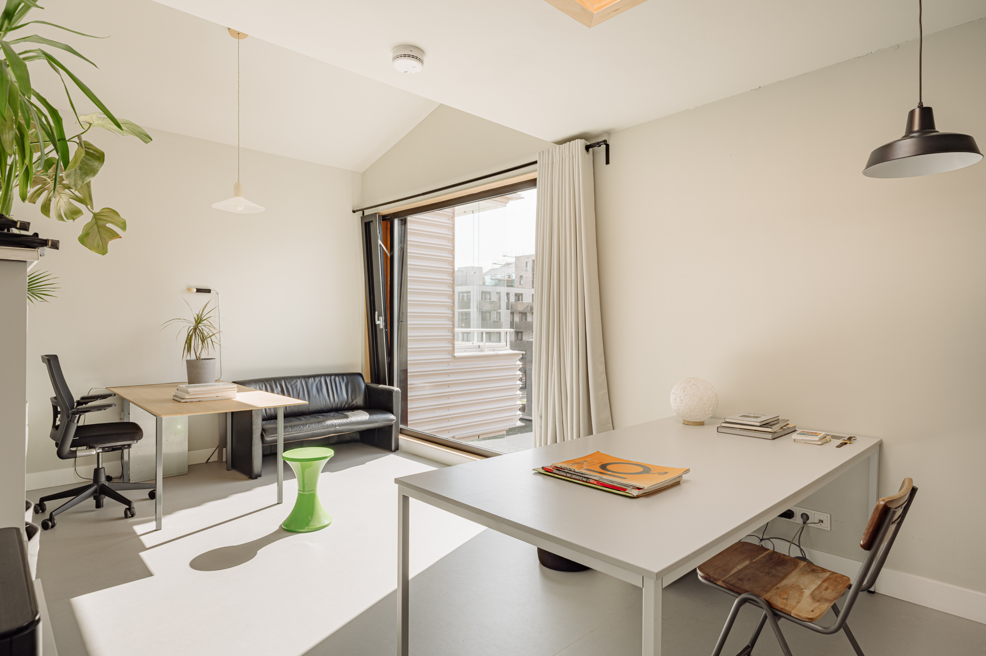 Modern city home on the Tolhuiskanaal offering 265 m² with 5 to 6 bedrooms, multiple terraces, a self-contained studio, and private parking space, situated on a low-traffic street.