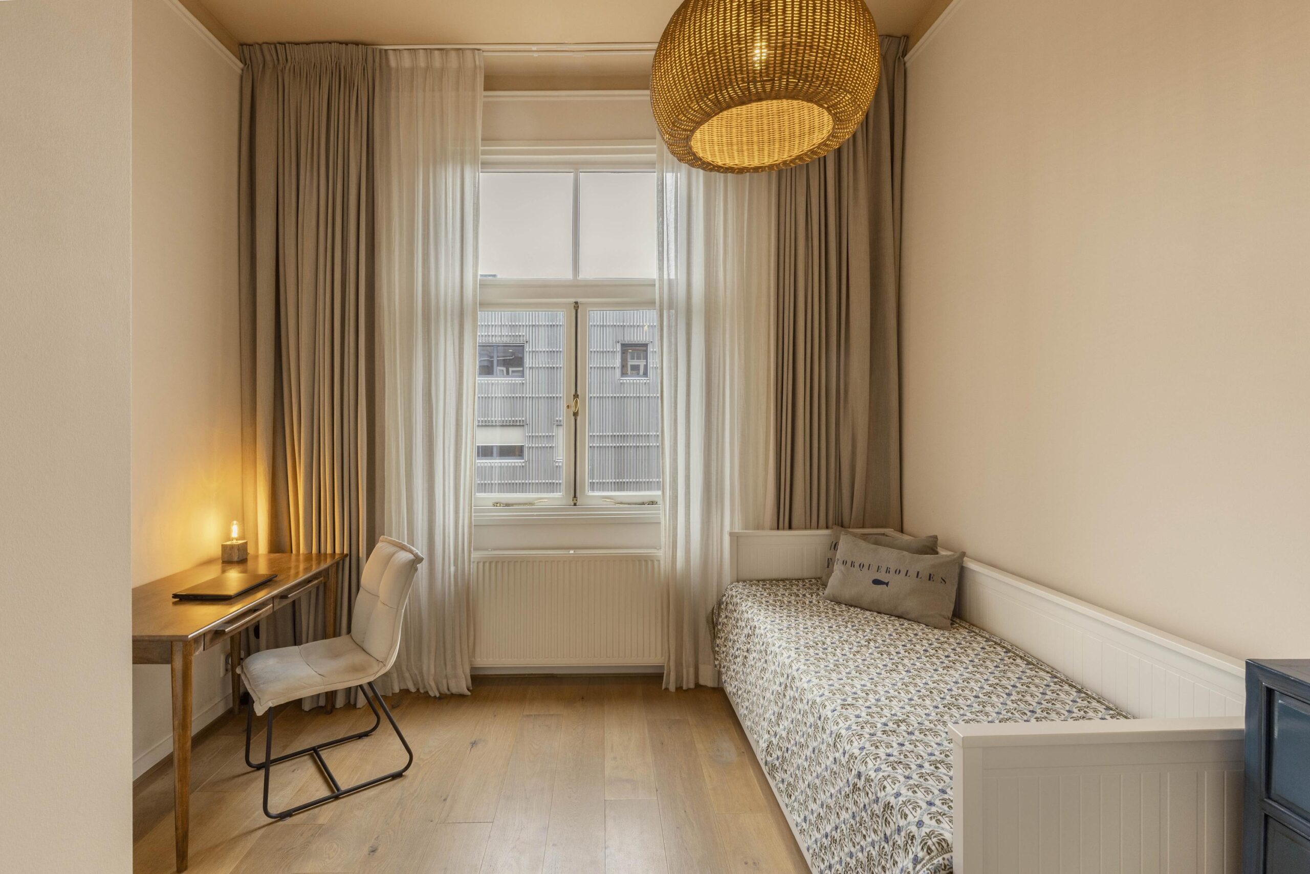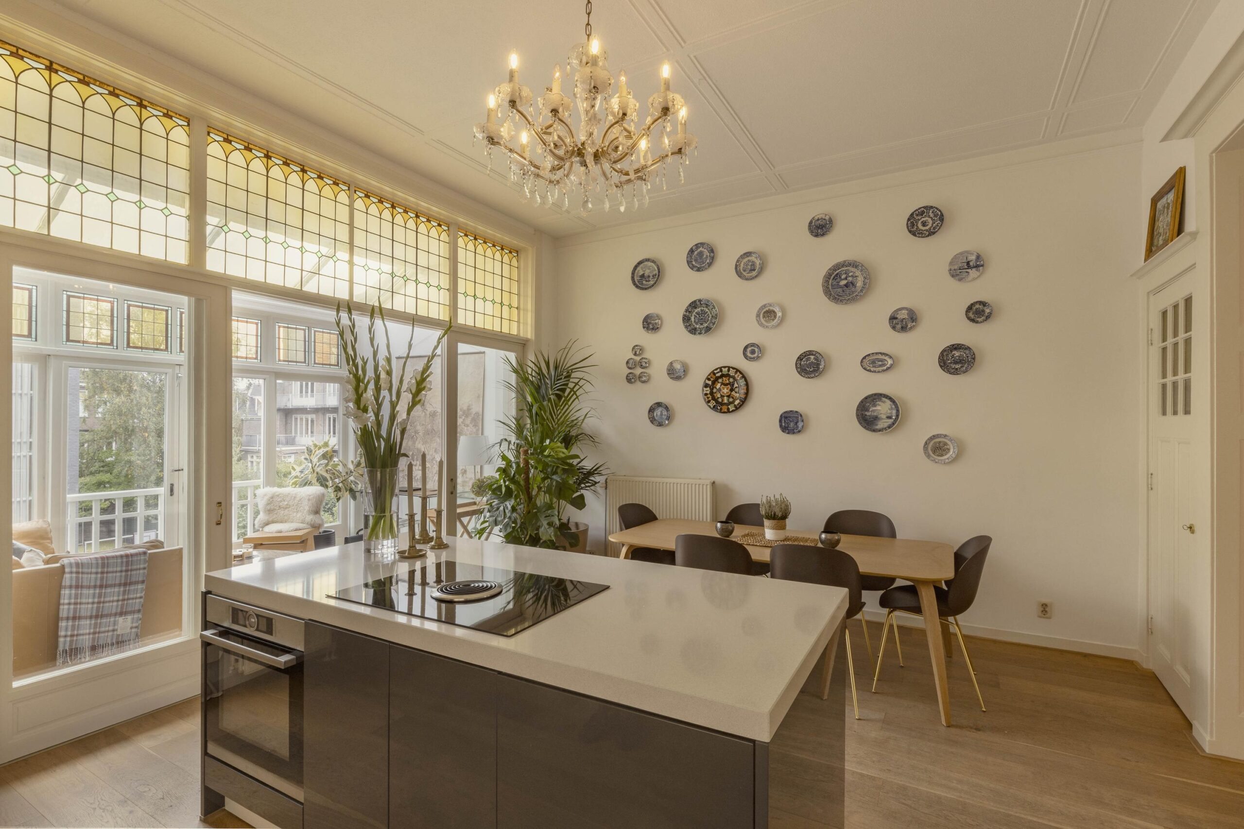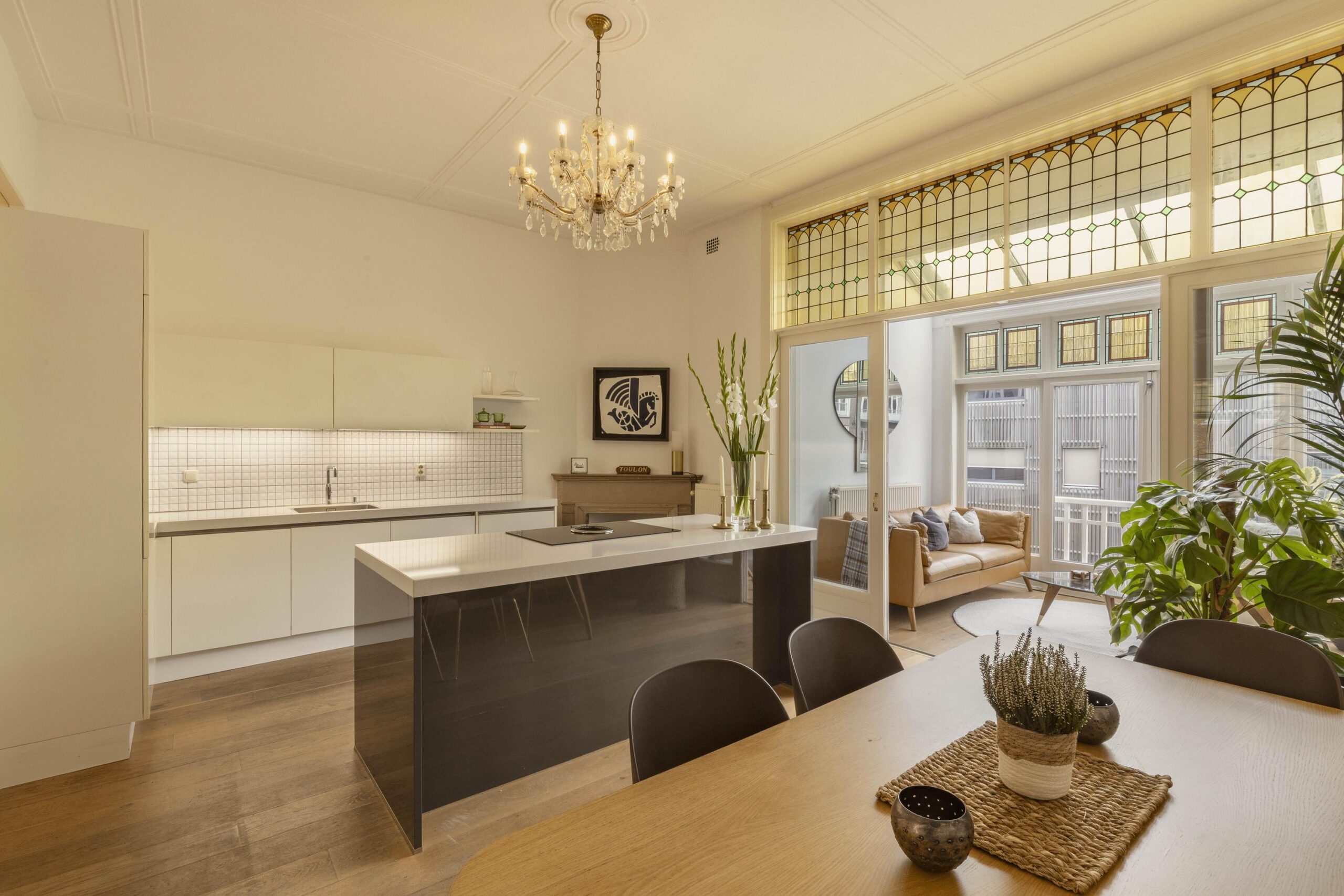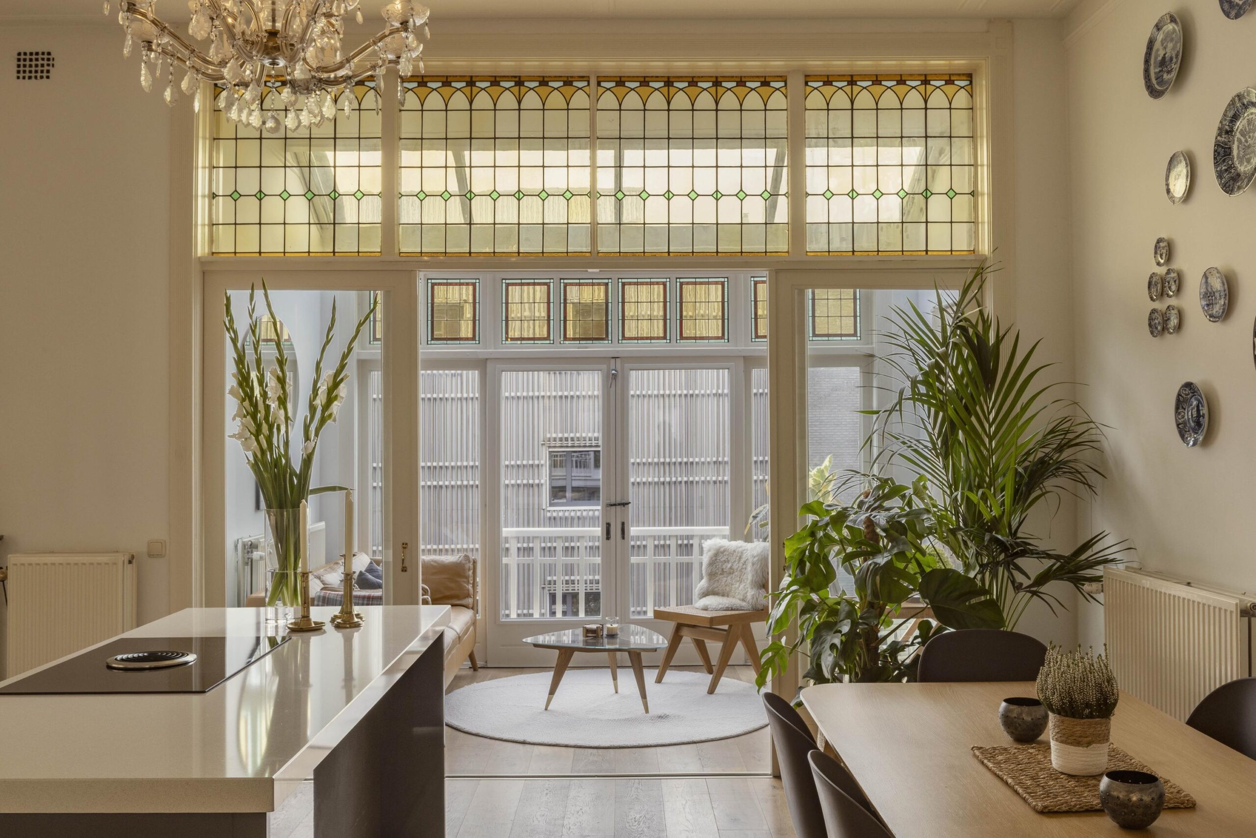 Elegant two-bedroom apartment of approx. 112 m² with original details, large windows and a conservatory, located in the sought-after Museum Quarter. The single-level layout, combined with original stained-glass windows and ornamental ceilings, creates a timeless interior in a calm and refined part of Amsterdam South.