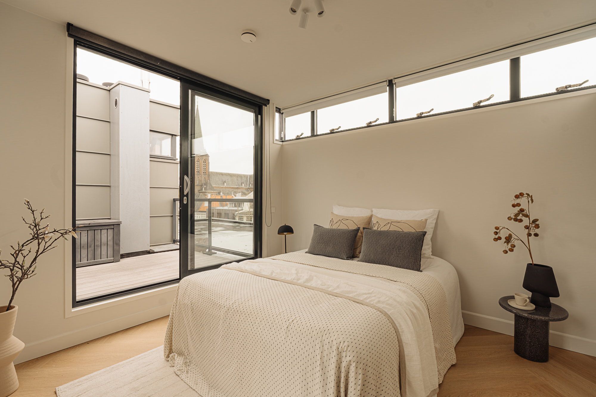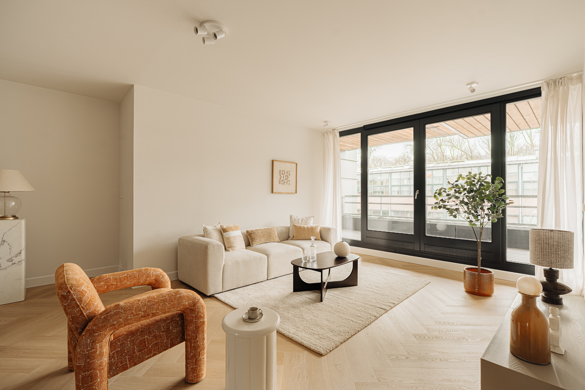 This apartment of approximately 136 m² has an open layout with plenty of natural light thanks to large windows at both the front and rear. It also features a roof extension with large windows and sliding doors to the roof terrace, making this space suitable as an independent bedroom or study.