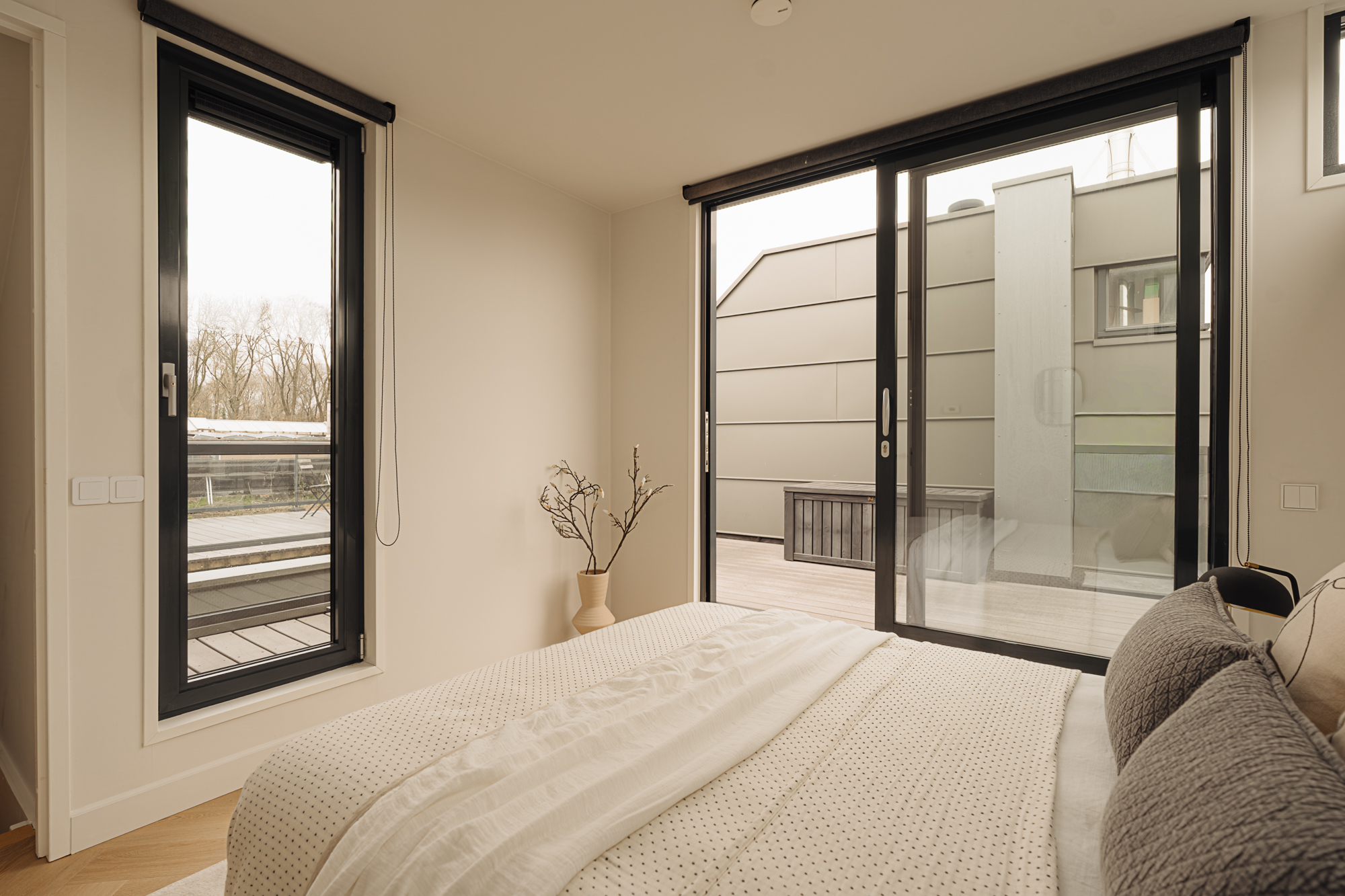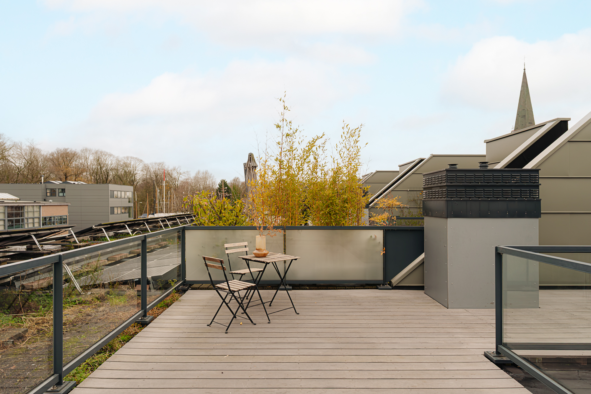 Modern upper-level residence by the water with two spacious living areas, three (bed)rooms and three outdoor spaces, including a generous roof terrace of approximately 42 m². The property was newly built in 2017 and includes a private parking space on the adjacent grounds.
