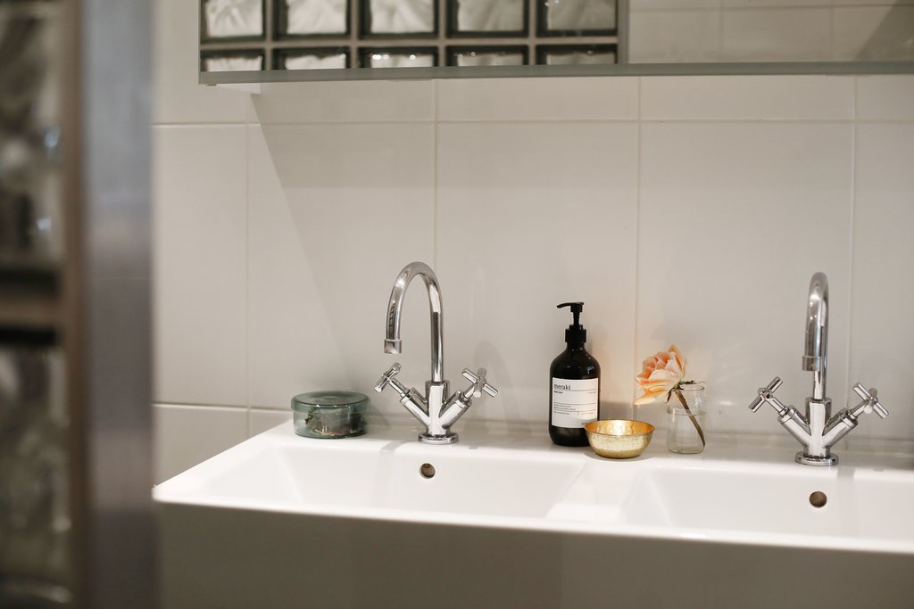 The master-bedroom with built-in wardrobe is situated at the garden-side. Centrally is a spacious bathroom double sink vanity unit, walk-in shower and toilet. Through the second (bed)room with custom-made cupboards, one enters both third (bed)room and an indoor storage with washer and dryer.