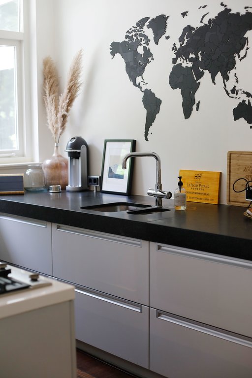 Private entrance at the street, stunning hallway with separate toilet. Spacious living with at the front a cozy fireplace. Luxury open plan kitchen at the rear side with cooking island. The kitchen with cooking island is equipped with all needed appliances such as a 5-burners gas cooker, combi microwave/oven, dishwasher, fridge with freezer and a separate wine fridge.