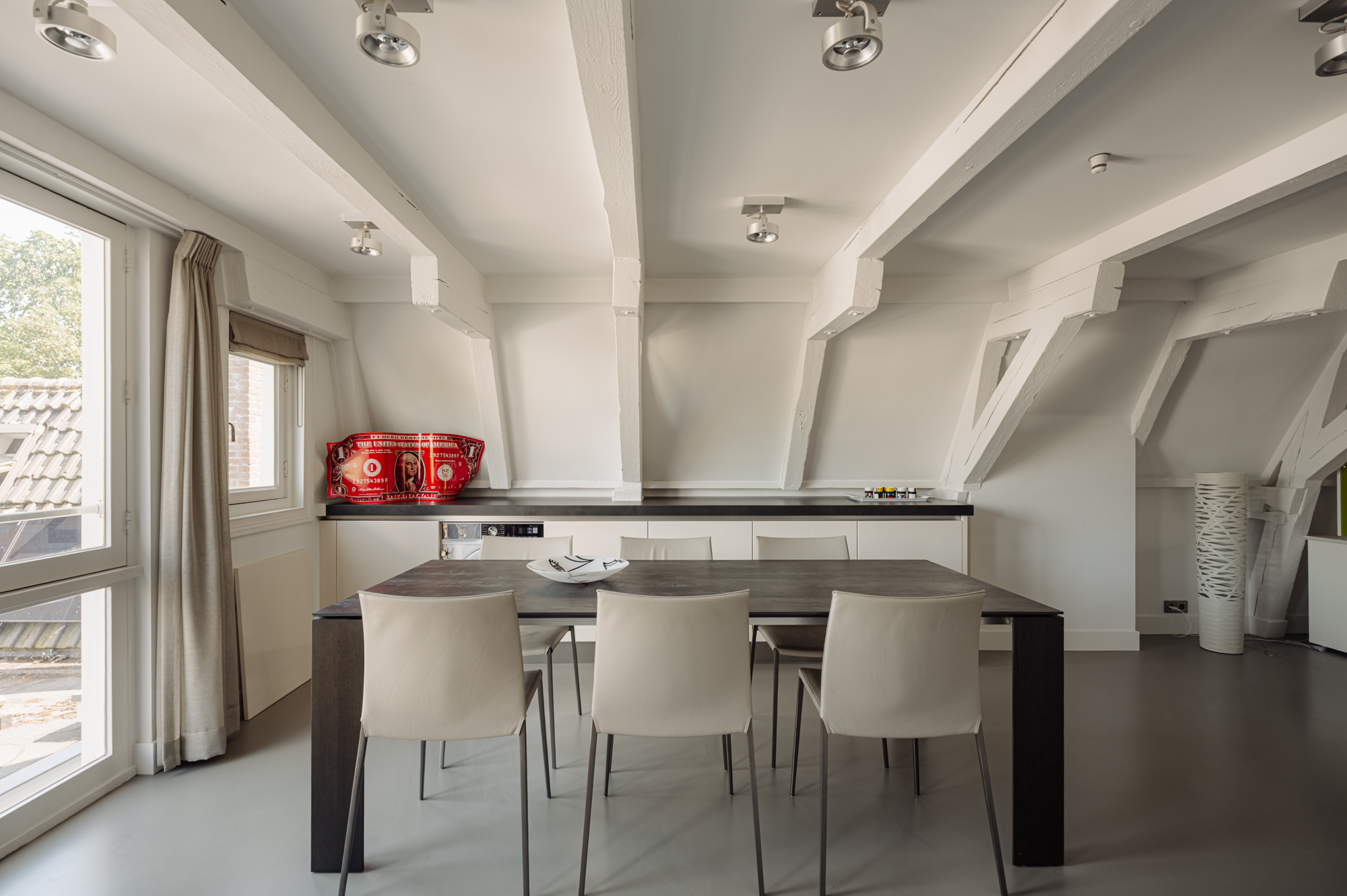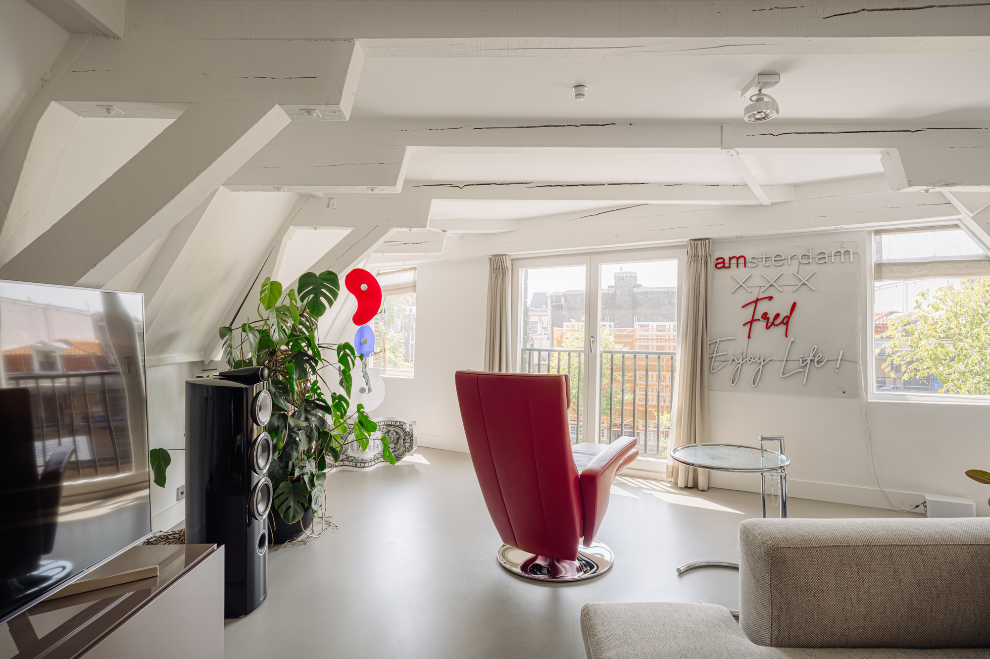 •Large windows with canal views;