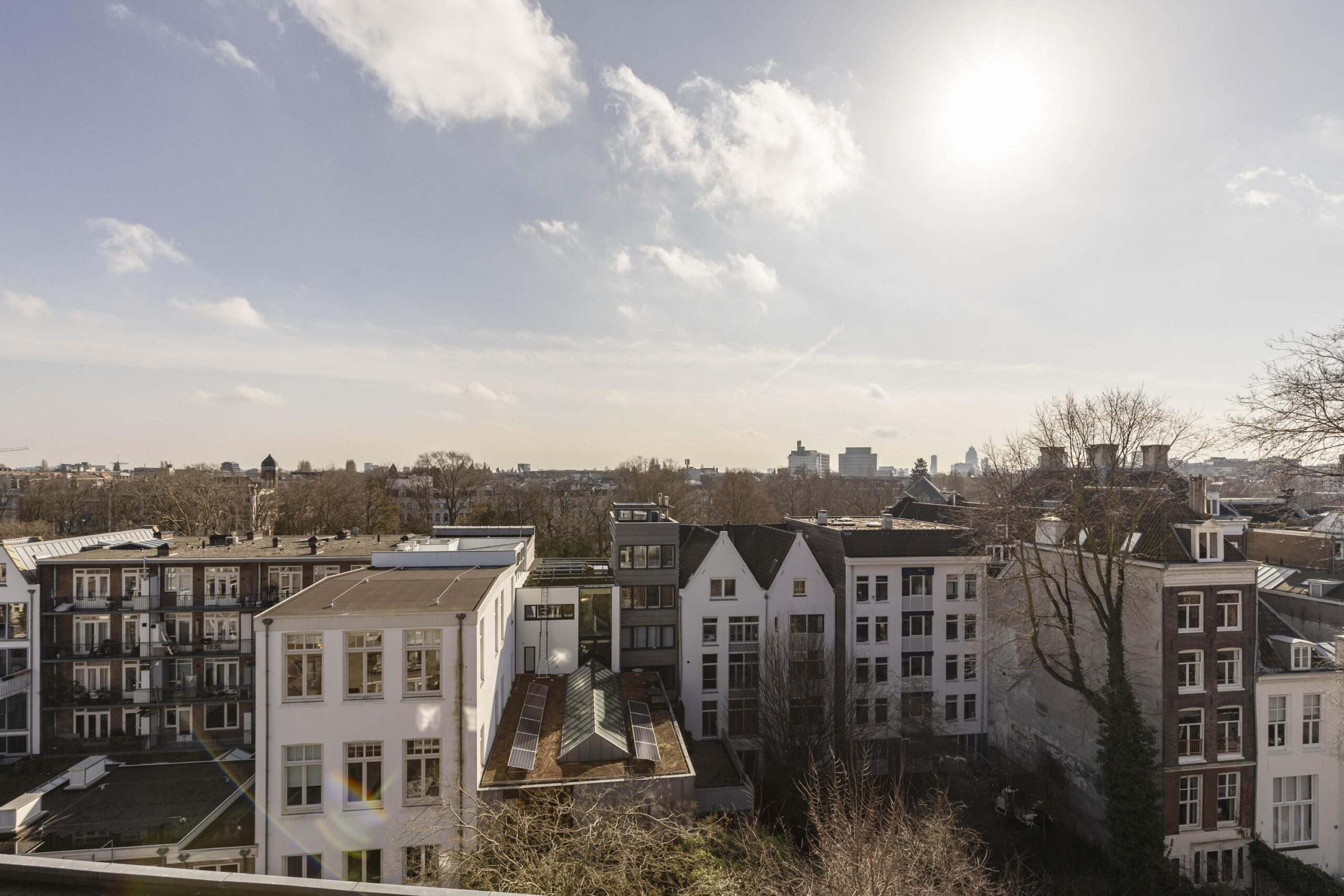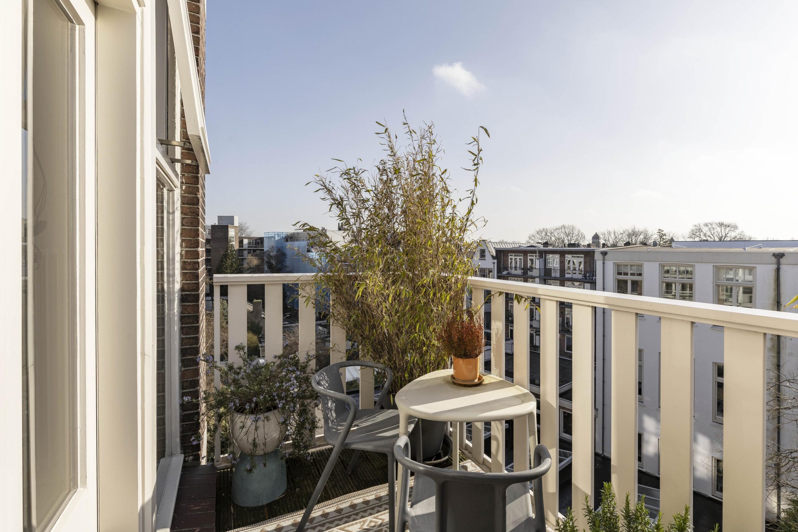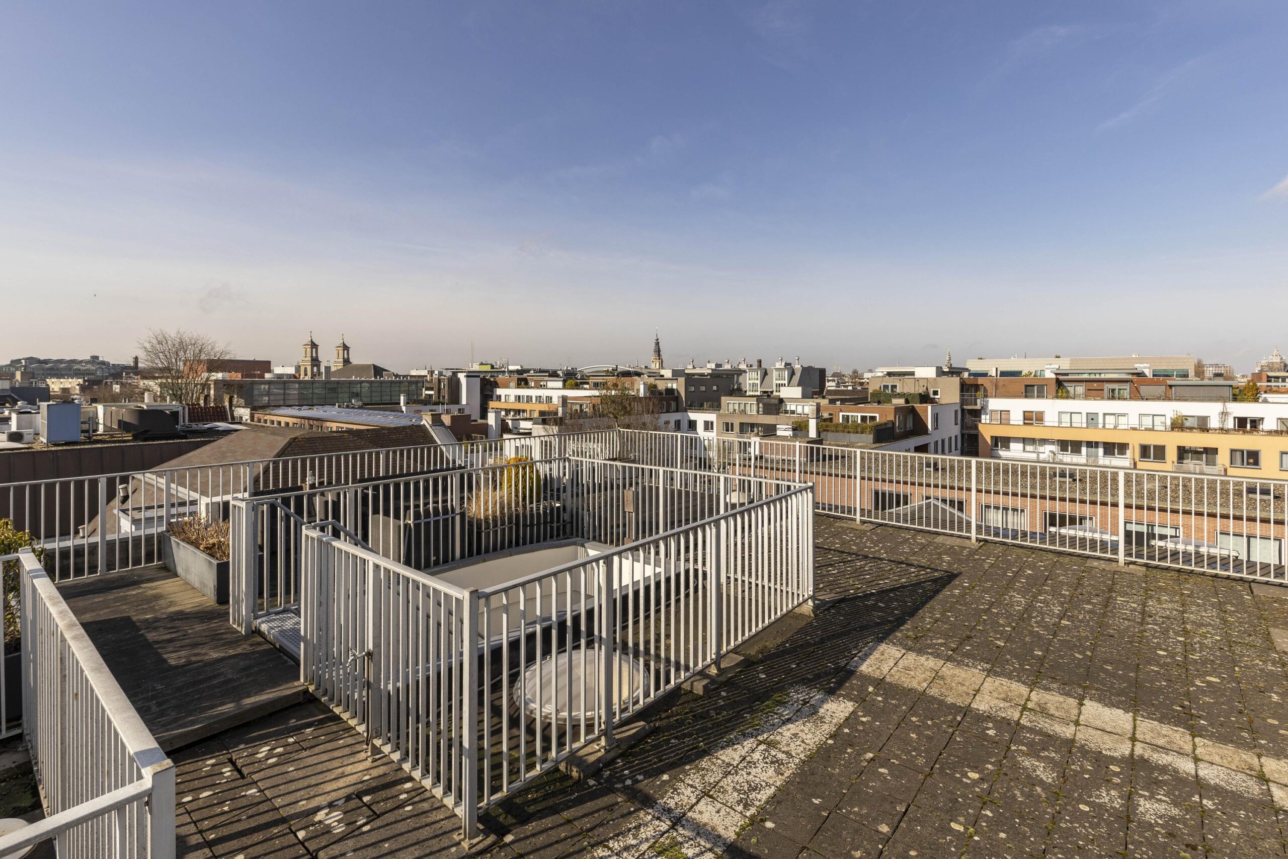 Above the apartment is a large roof terrace divided into four sections, with each resident having their own private part. A pleasant place to enjoy the sun and views over the city.