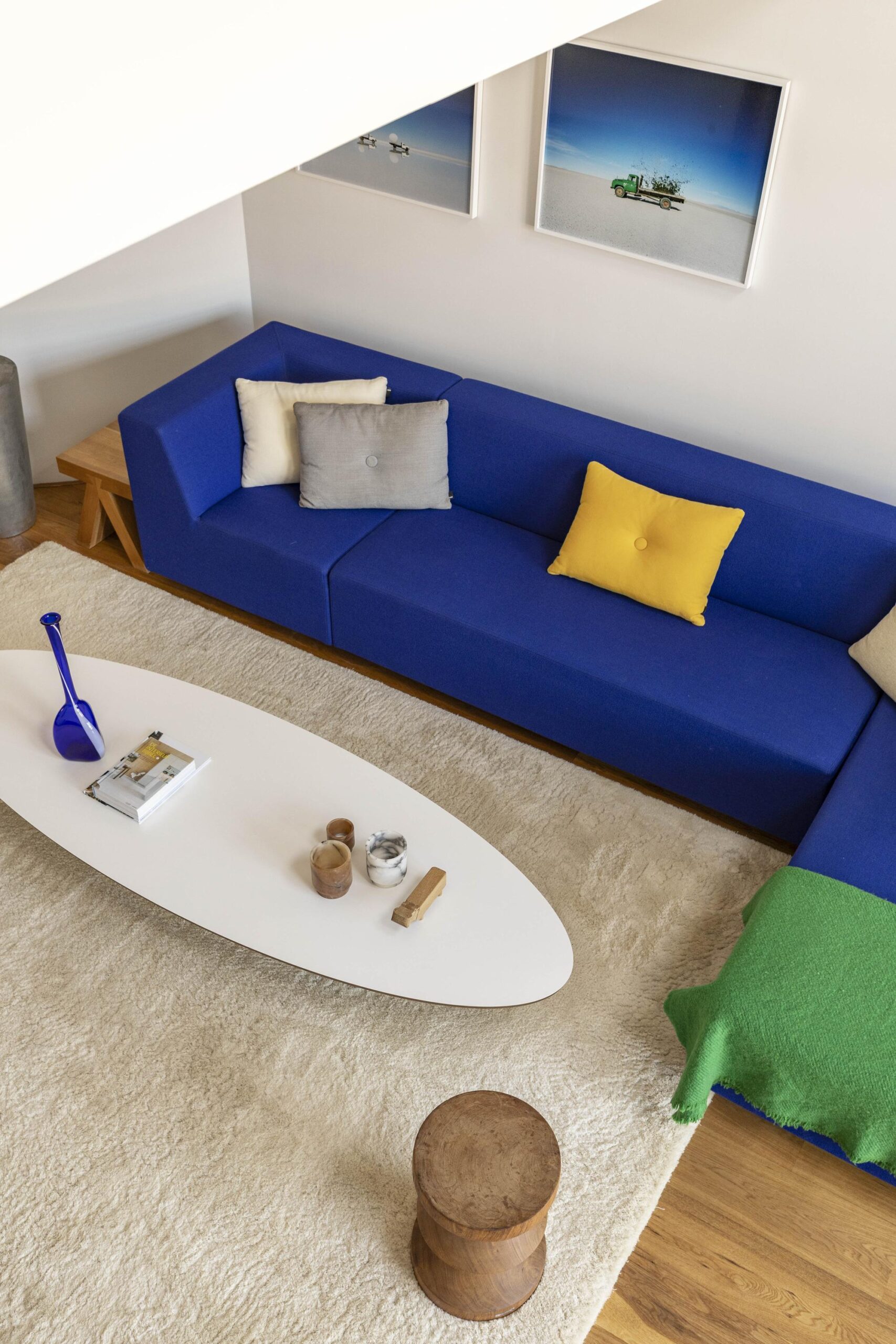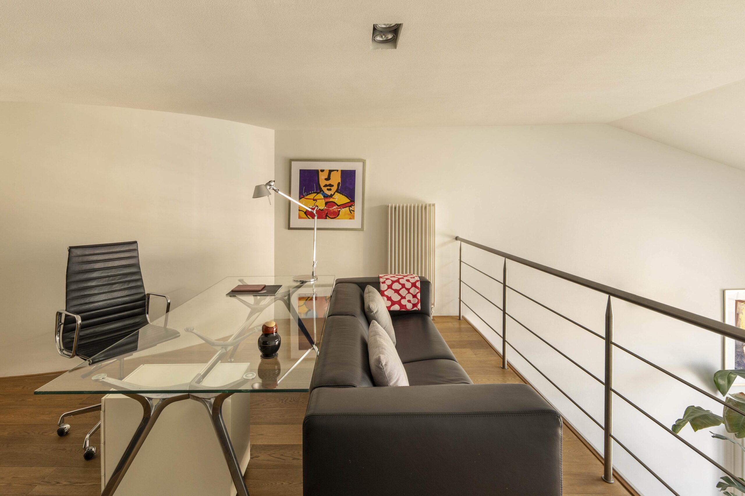 •Loft apartment spread across two floors;