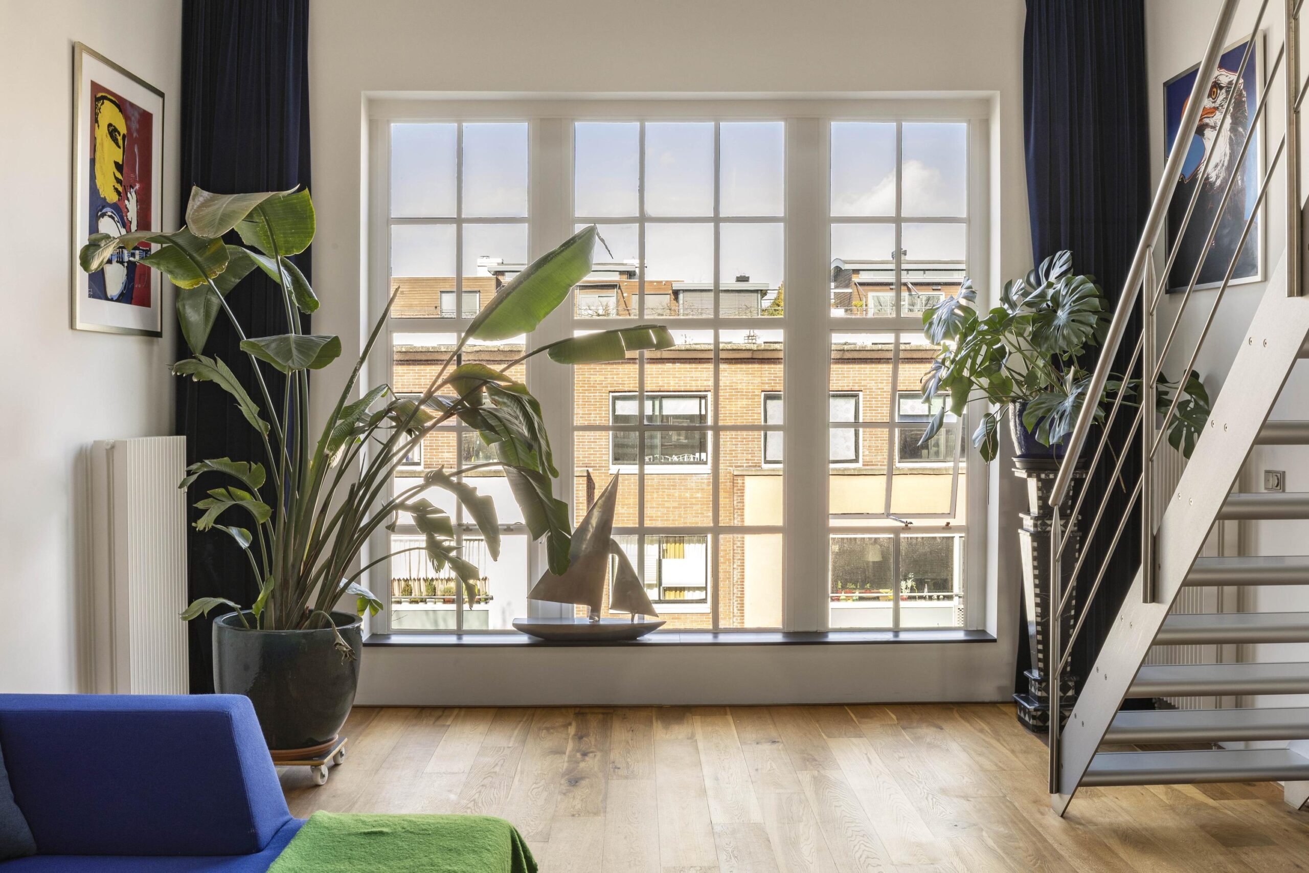 Modern loft of over 143 m², spread across two floors, featuring high ceilings and large windows, set within a distinctive historic building on Rapenburgerstraat. The property is within walking distance of Artis, the Hortus Botanicus and Waterlooplein.
