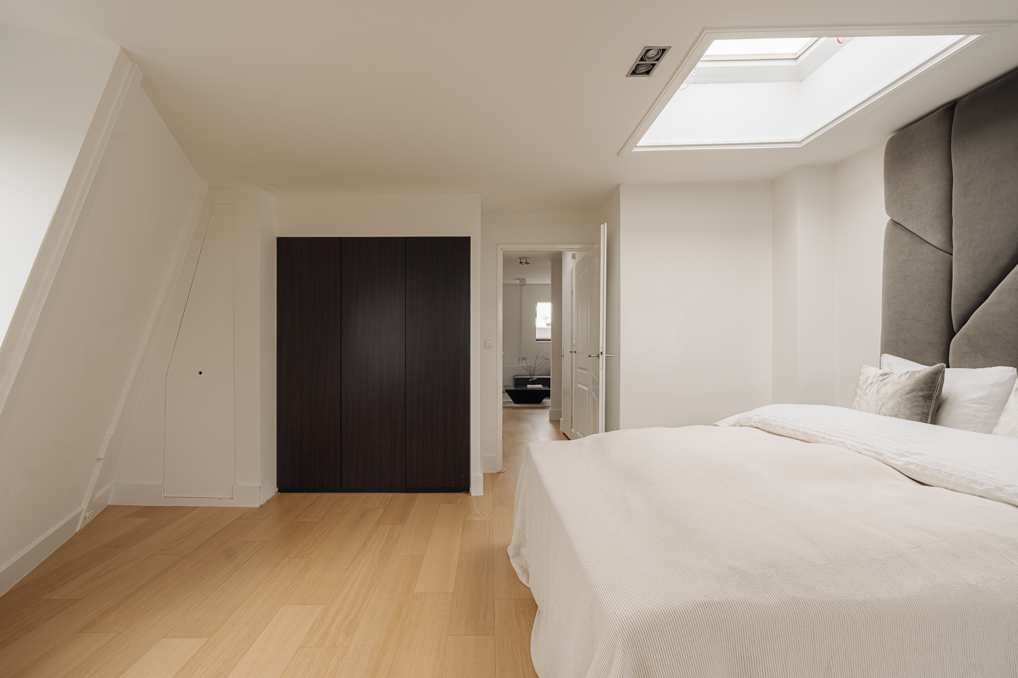 This recently renovated upper-floor apartment of approximately 67 m², situated on freehold land, features a bright living floor with an open kitchen, one spacious bedroom and the possibility to create a second bedroom. The property has been renovated with care and high-quality materials, including an oak parquet floor and natural stone accents.