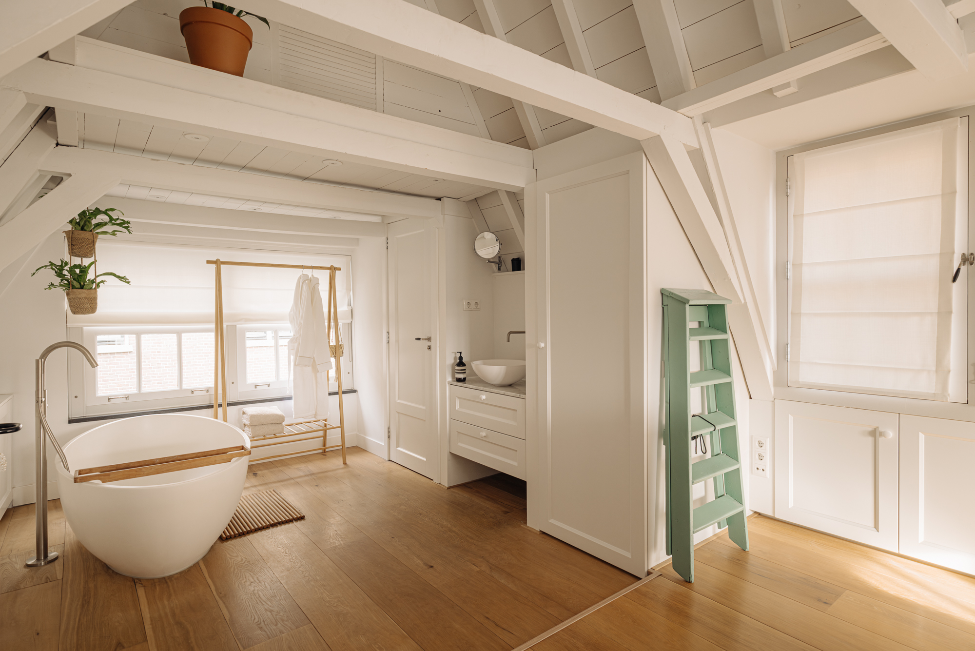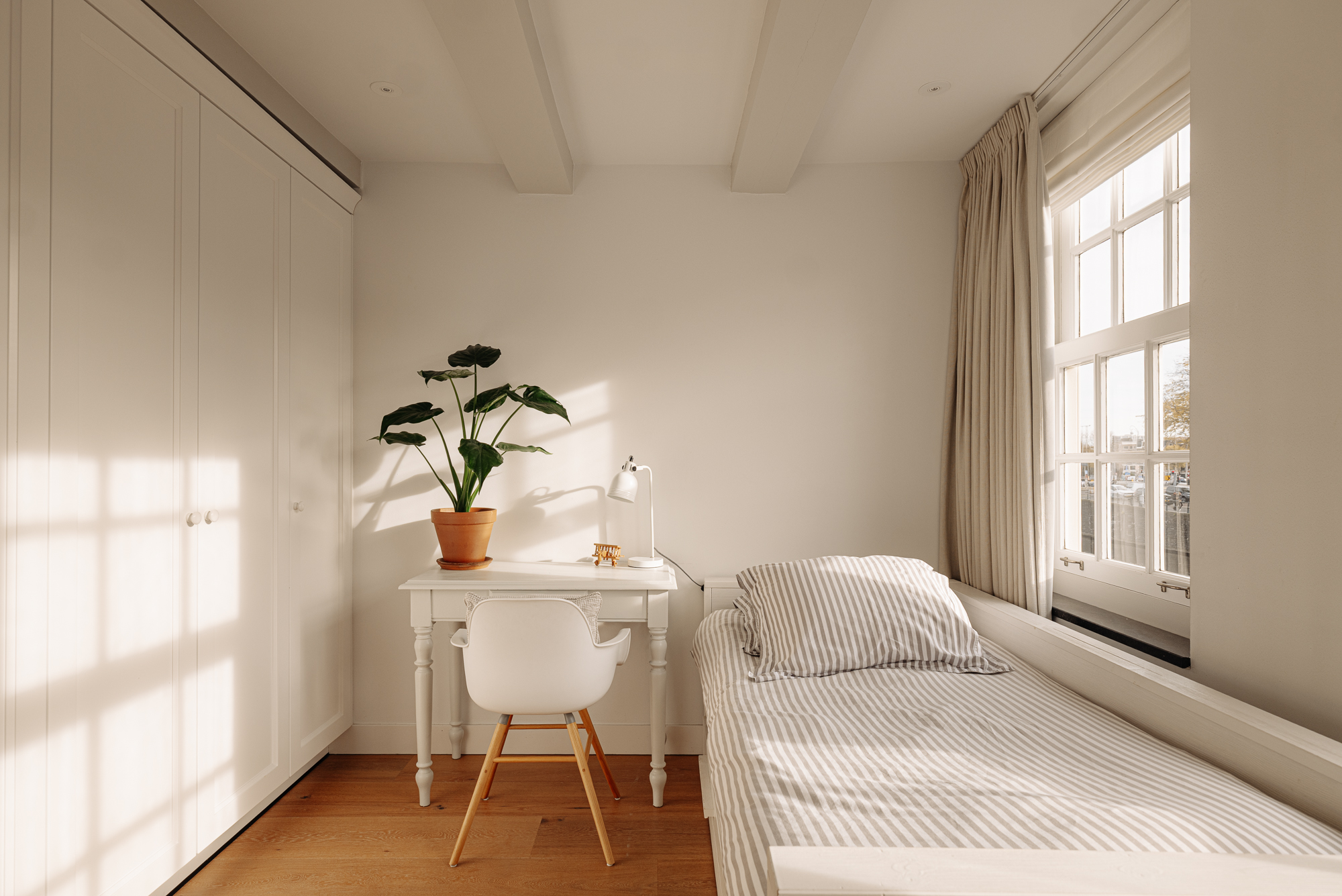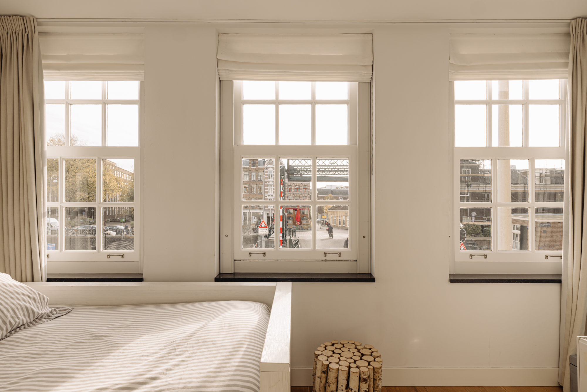 Known as the gem of the street, it features charming historical details, a modern finish, and unobstructed views over the Scharrebiersluis, the Entrepotdok, and the National Maritime Museum.