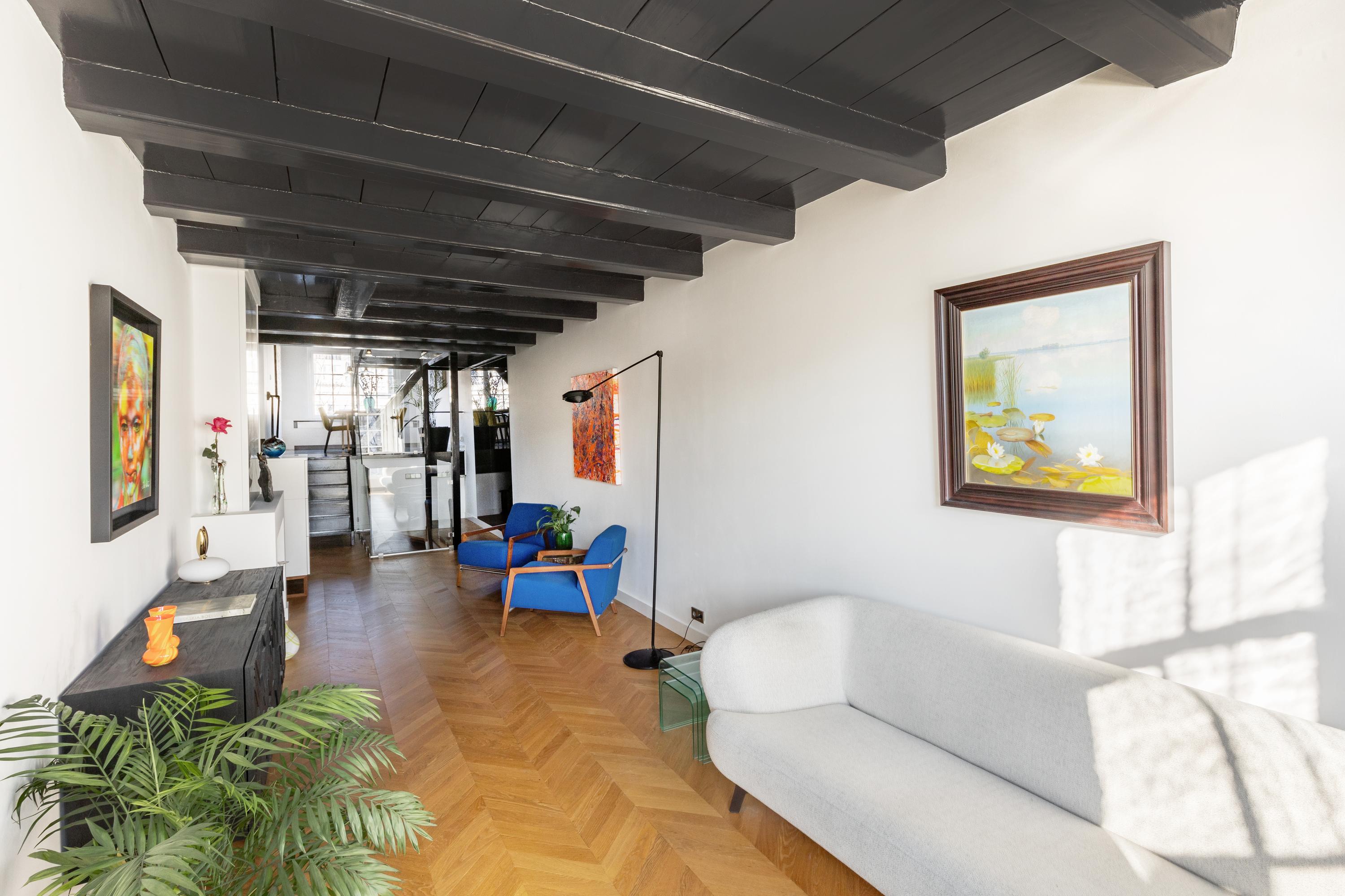 The home is situated in a peaceful and charming section of the canal belt, within walking distance of the Negen Straatjes, Haarlemmerdijk, Westerstraat, and Noordermarkt, all offering a diverse selection of shops, restaurants, and cafés. The Westerpark is less than a 10-minute bike ride away, as is Central Station. Thanks to its location at the beginning of the canal, the A10 ring road is also easily accessible.