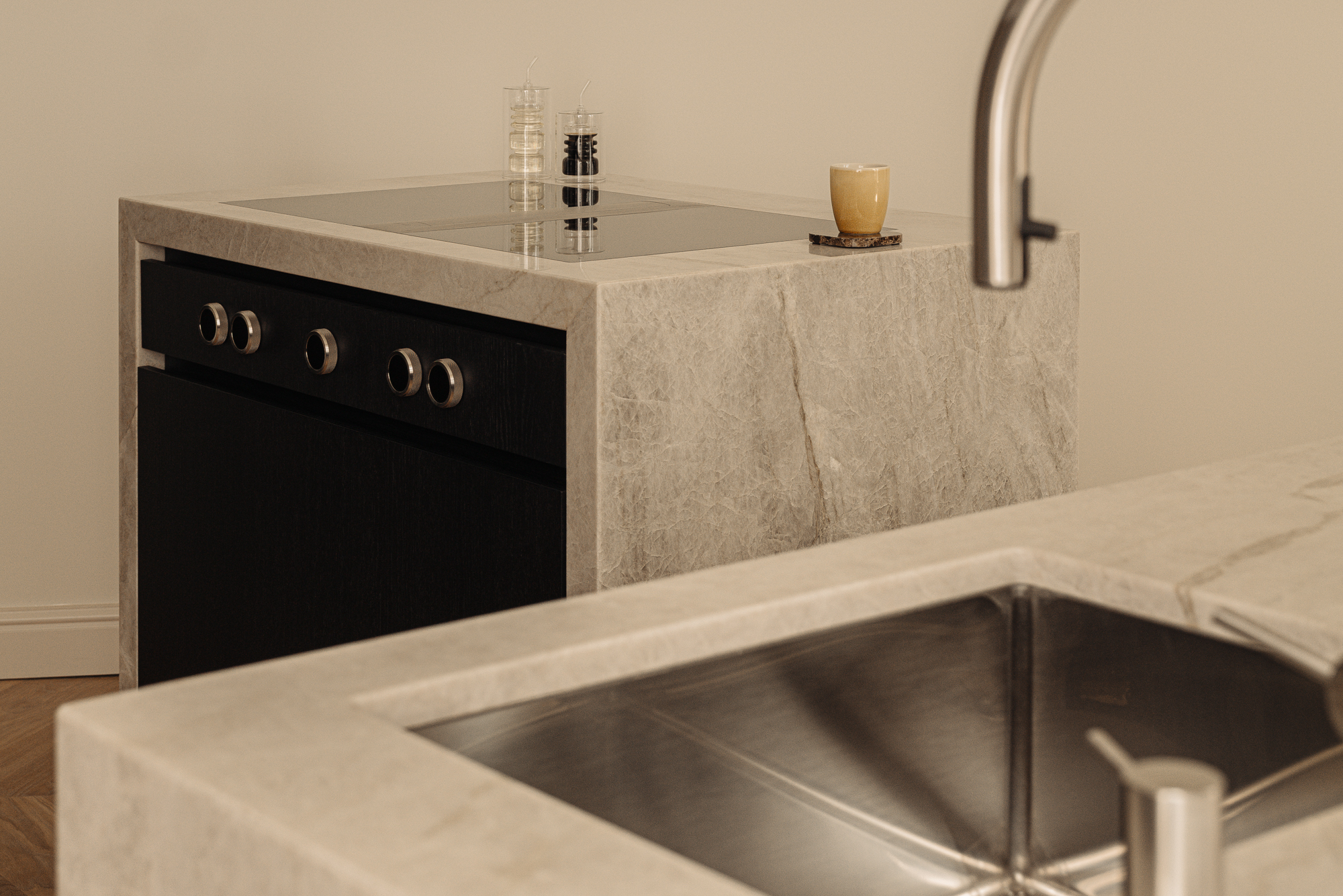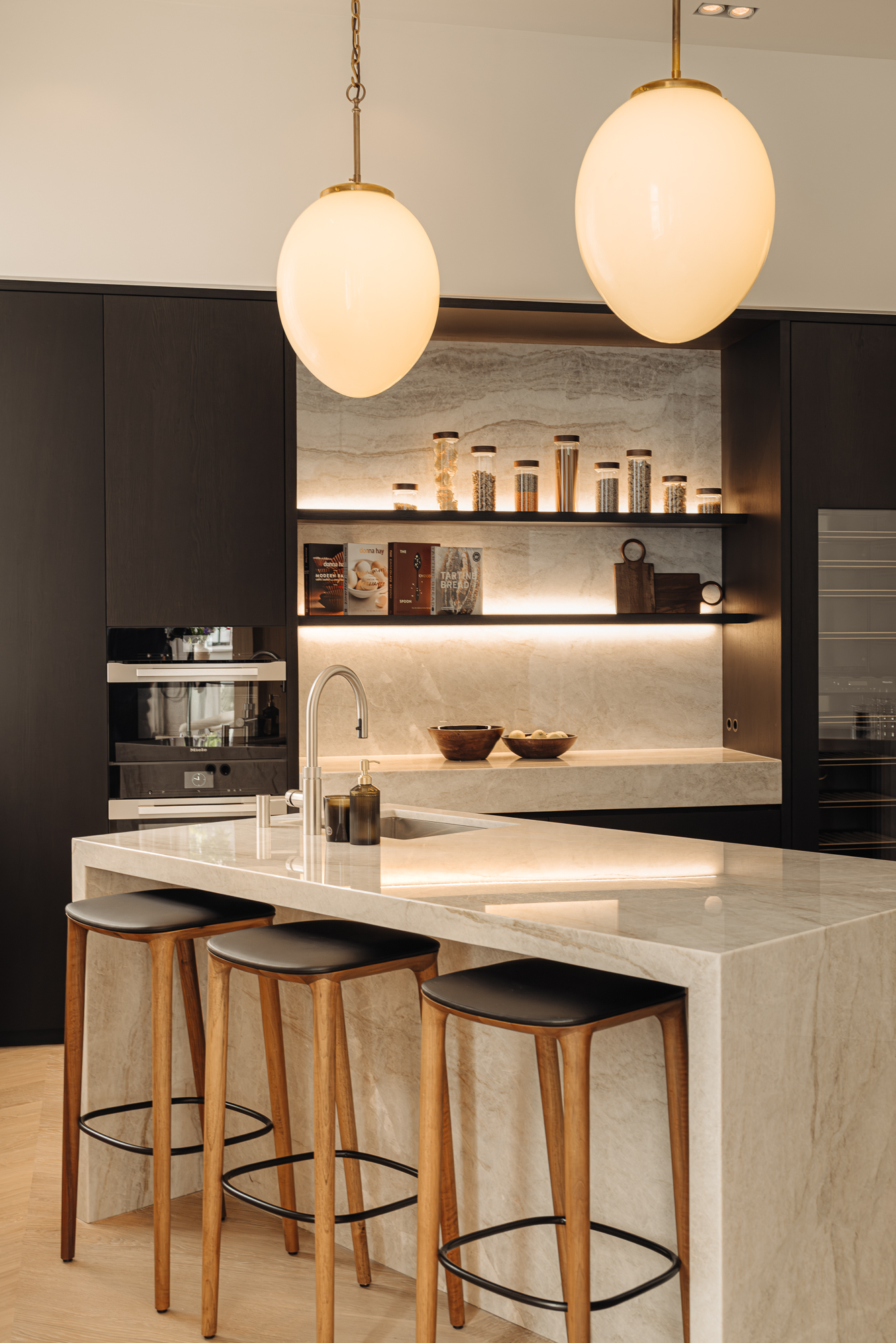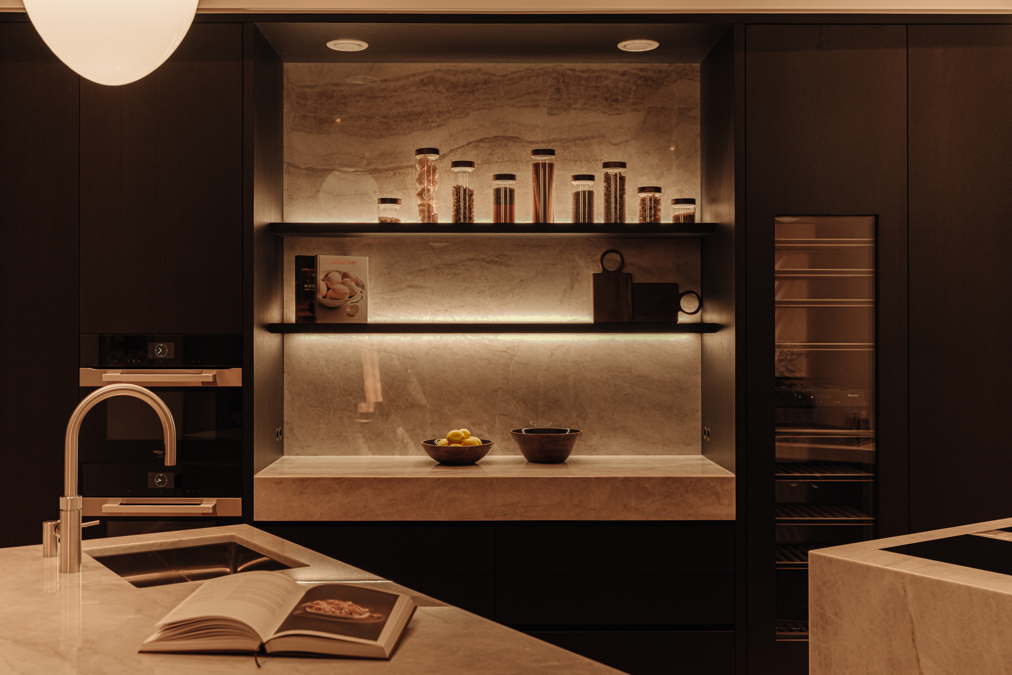 •Built-in appliances from Miele (including wine climate cabinet, double oven, microwave, plate warmer, refrigerator, and freezer), Bora (including induction hob), and the most comprehensive Quooker model;