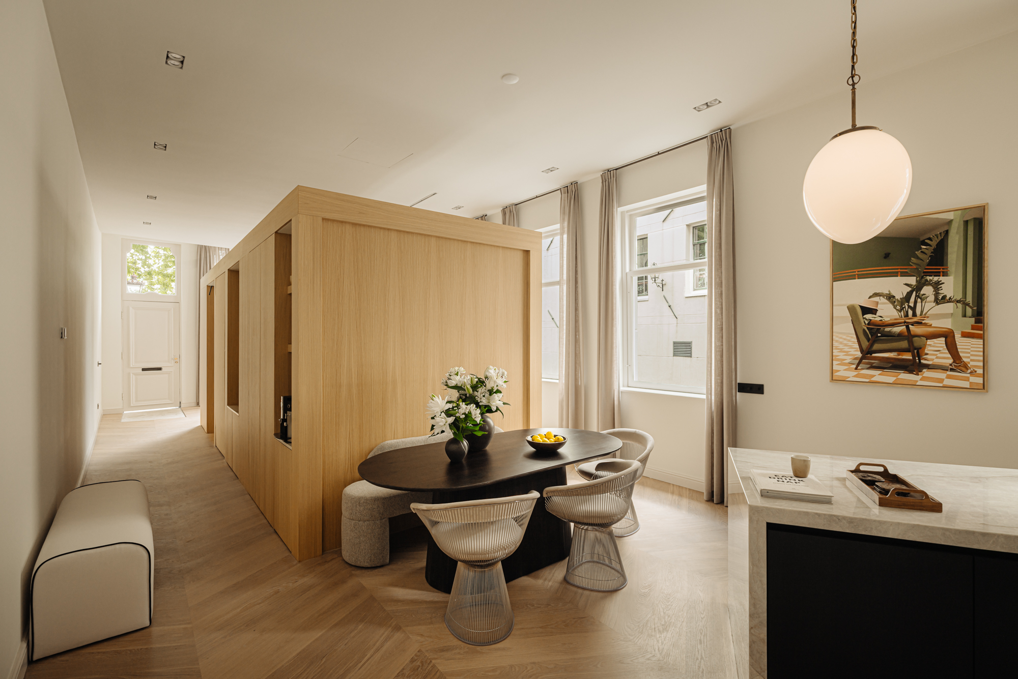 With over 21 meters of canal frontage and expansive windows, it offers a rare sense of connection with the water —an experience of living both by and along the canal.