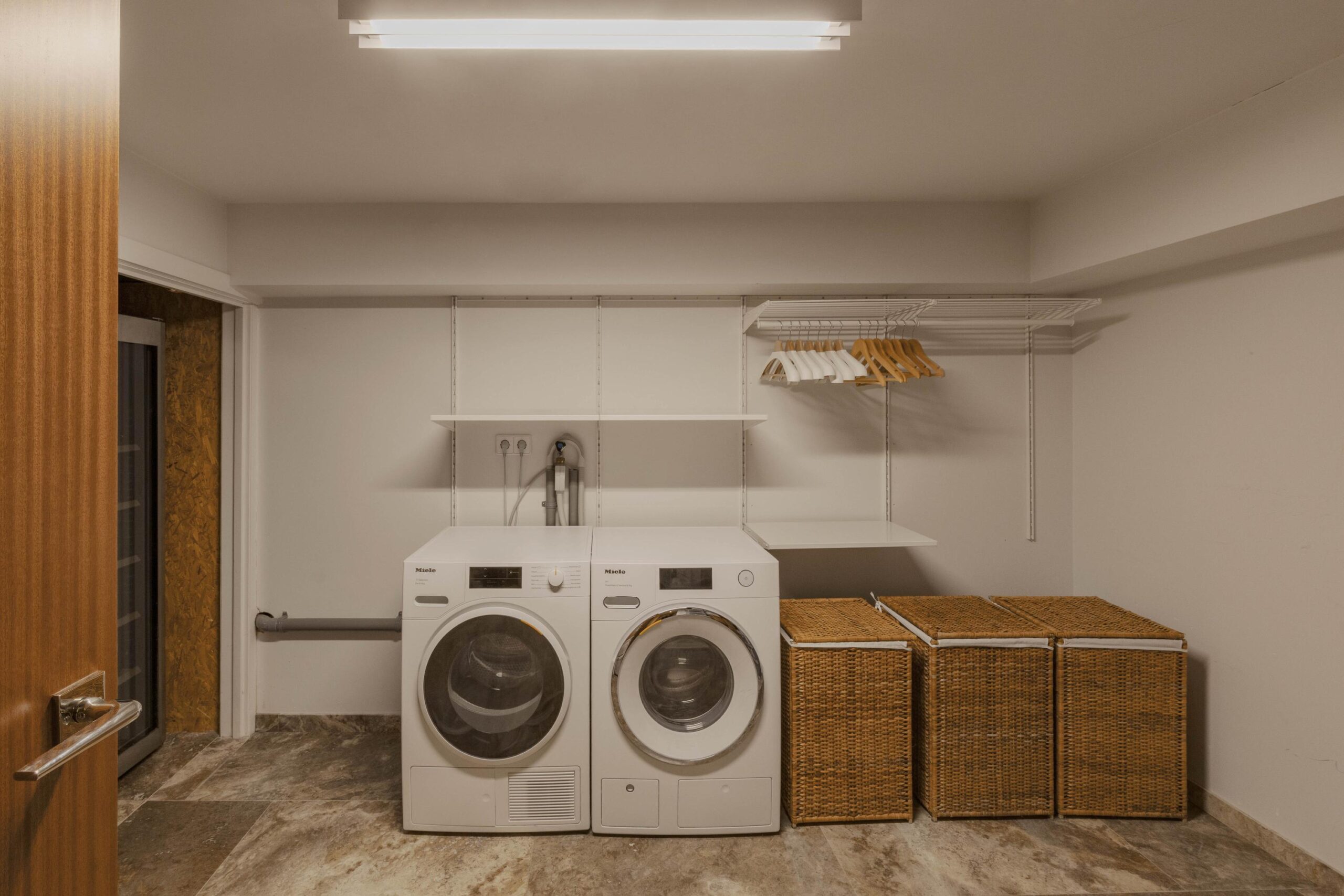 The basement is fully finished and can be used in multiple ways. There is a large space set up as a gym or bedroom (including bathroom with shower and toilet), a separate laundry room, and a technical room. Thanks to the high-end finish, this level is just as comfortable and presentable as the upper floors.