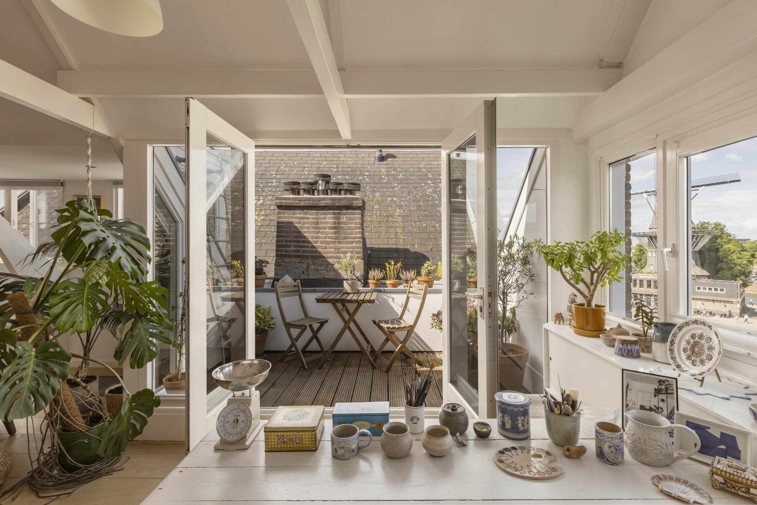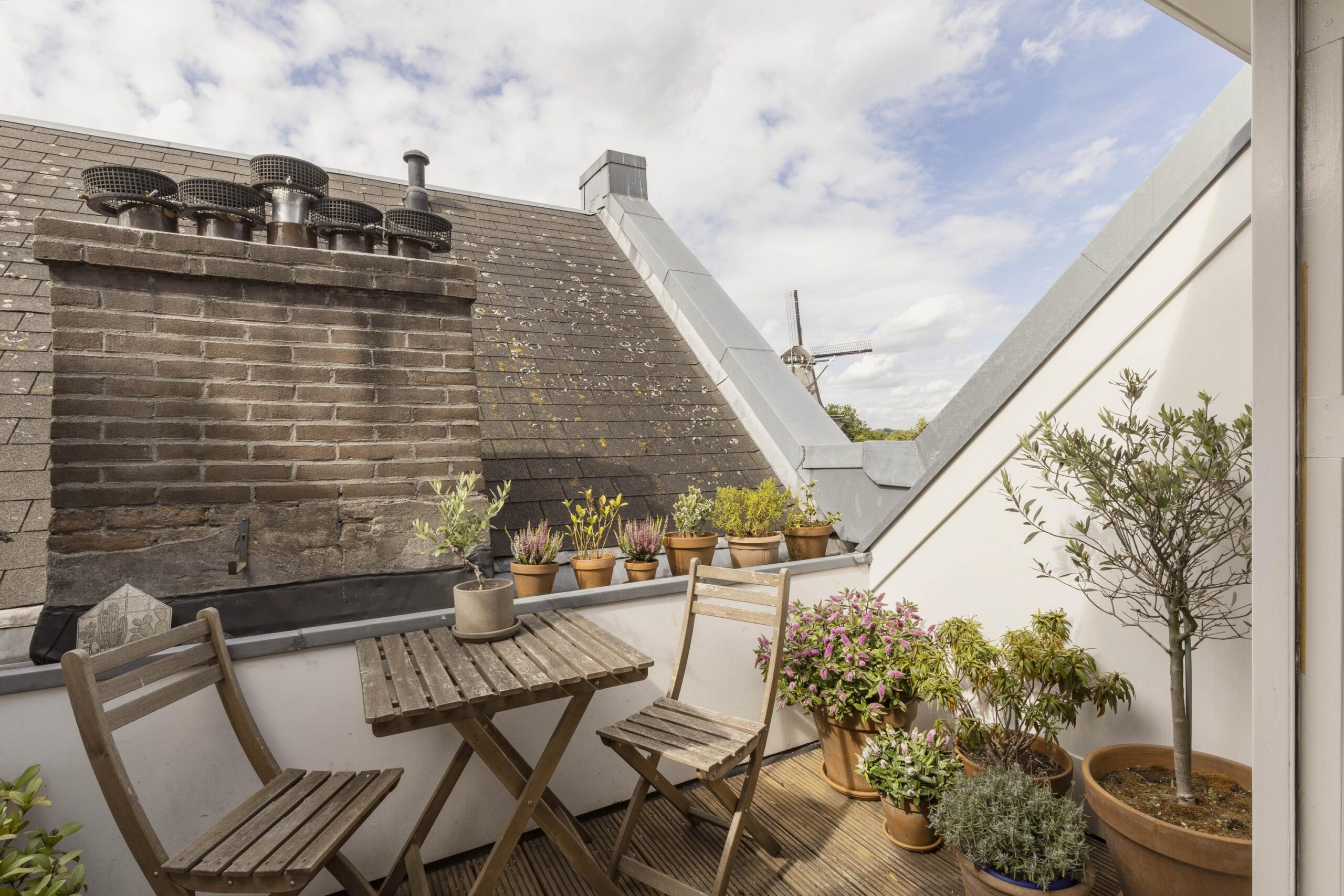 – Sunny roof terrace with open views over the water and windmill ‘De Gooyer’;